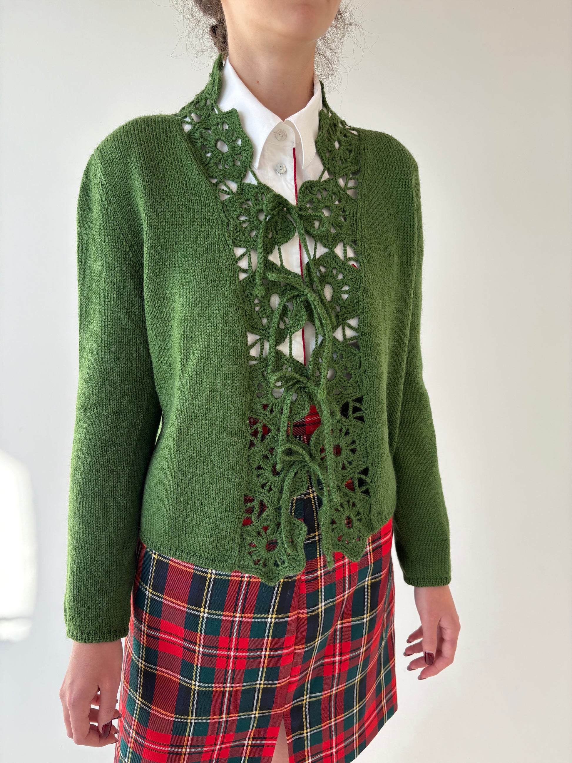 Cardigan vintage lucrat manual din lana extrafina de gramaj mare ușor reglabil