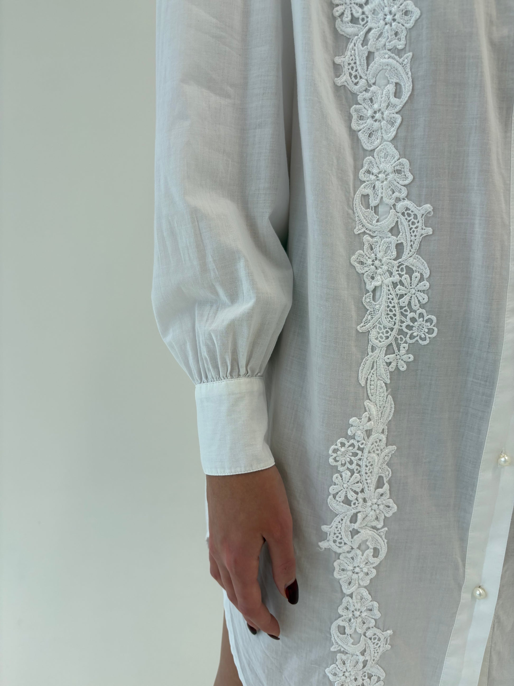 Cămașa/ Rochie vintage în croi lejer cu aplicații de dantelă