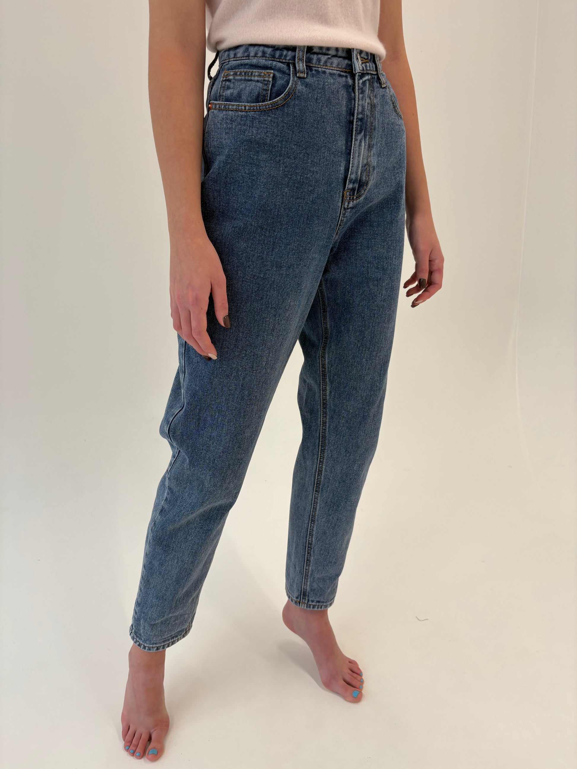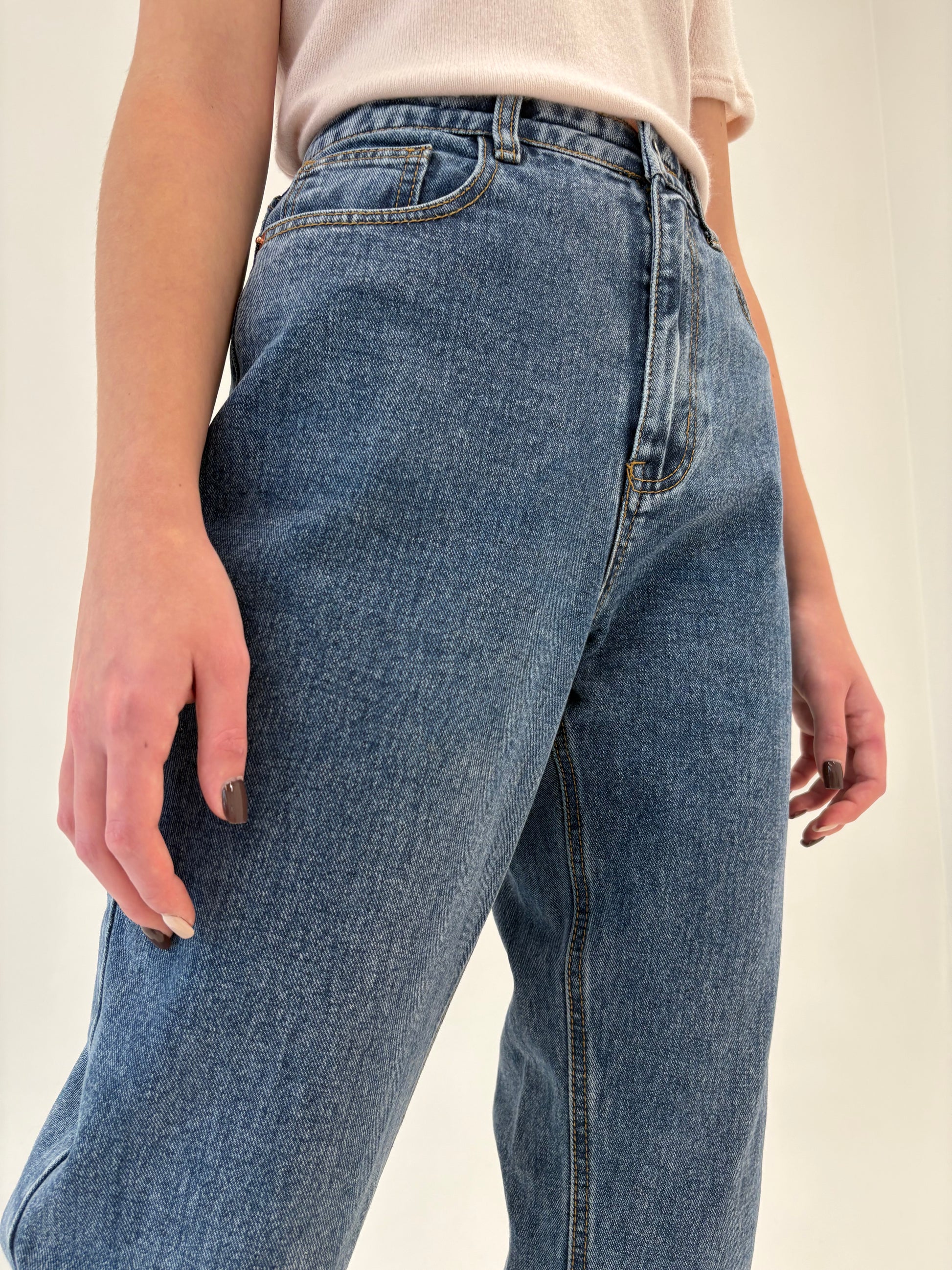 Jeans premium mom fit tall cu talie ultra înaltă și solduri generoase