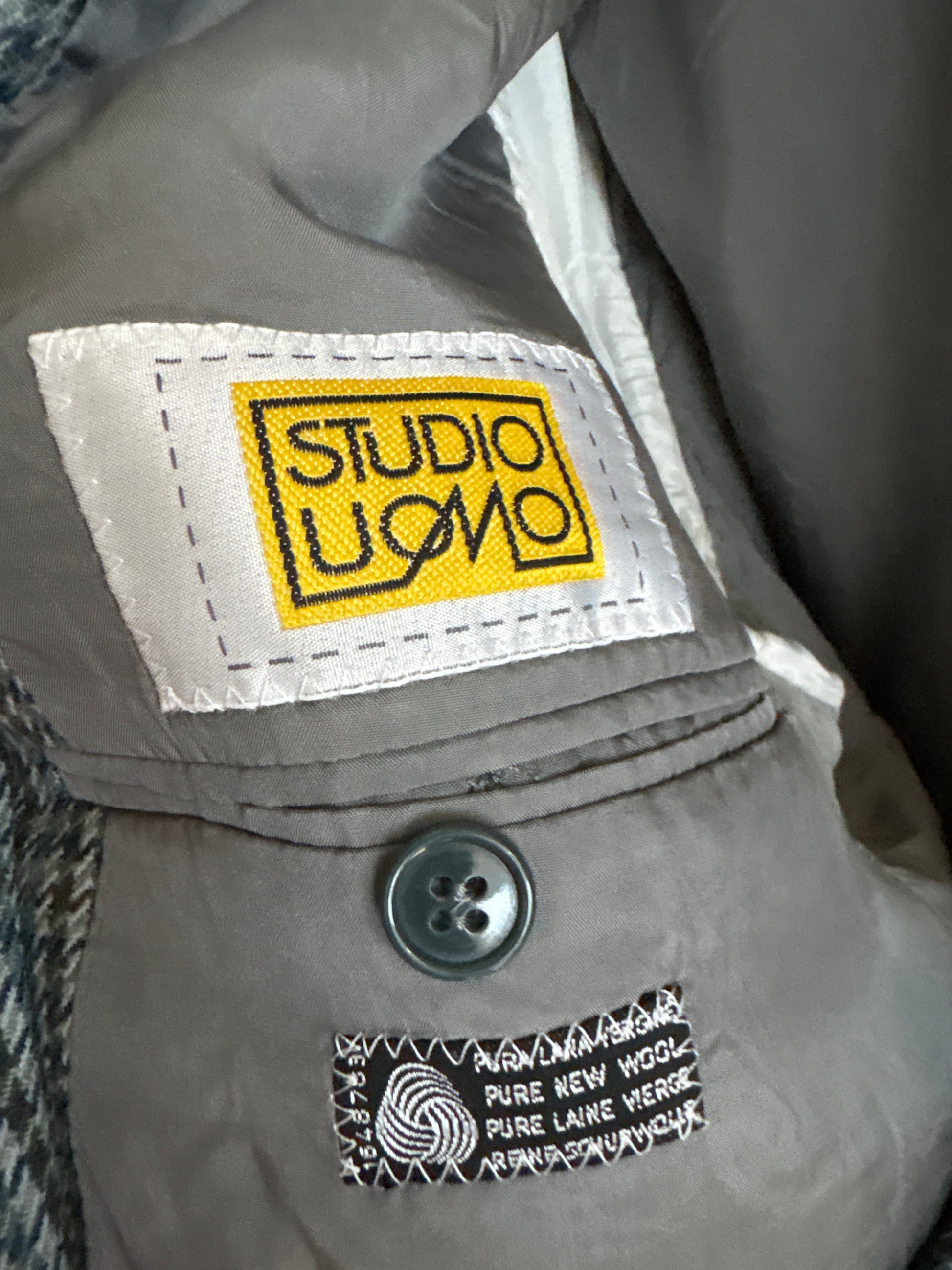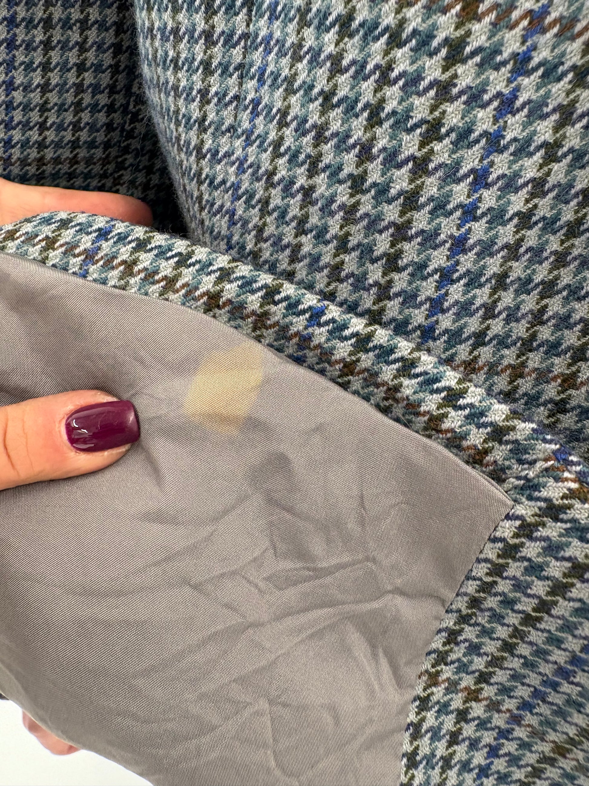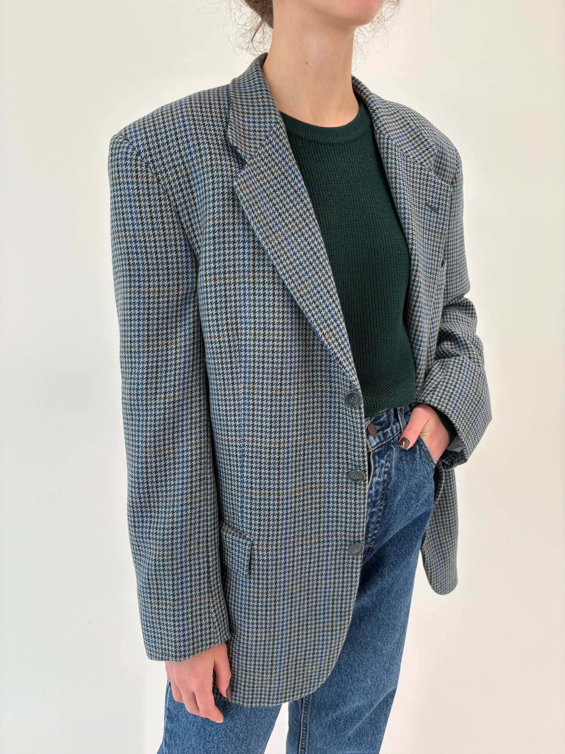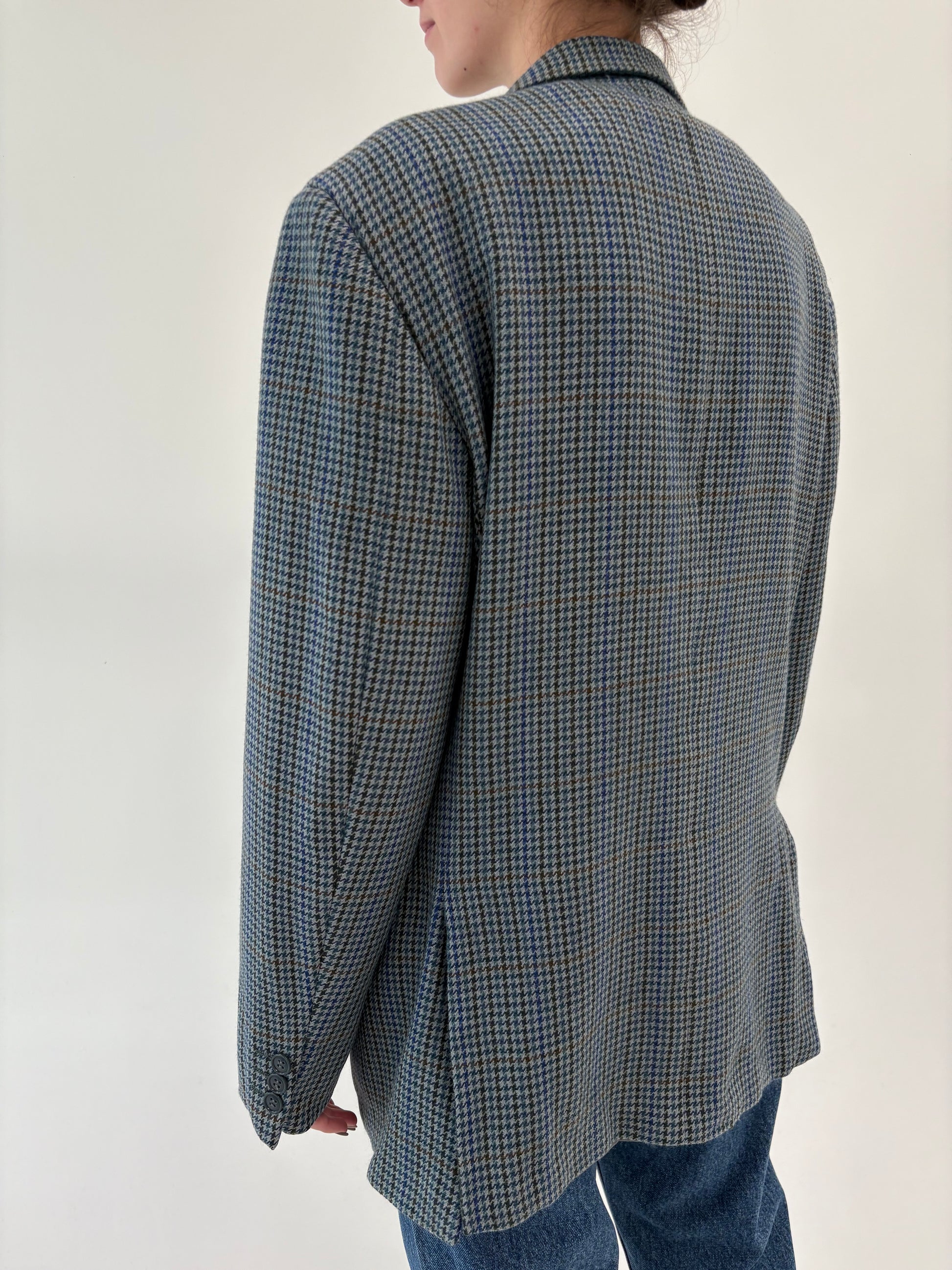 Sacou în carouri pied de coq Jeans blue din tweed moale de lana certificată