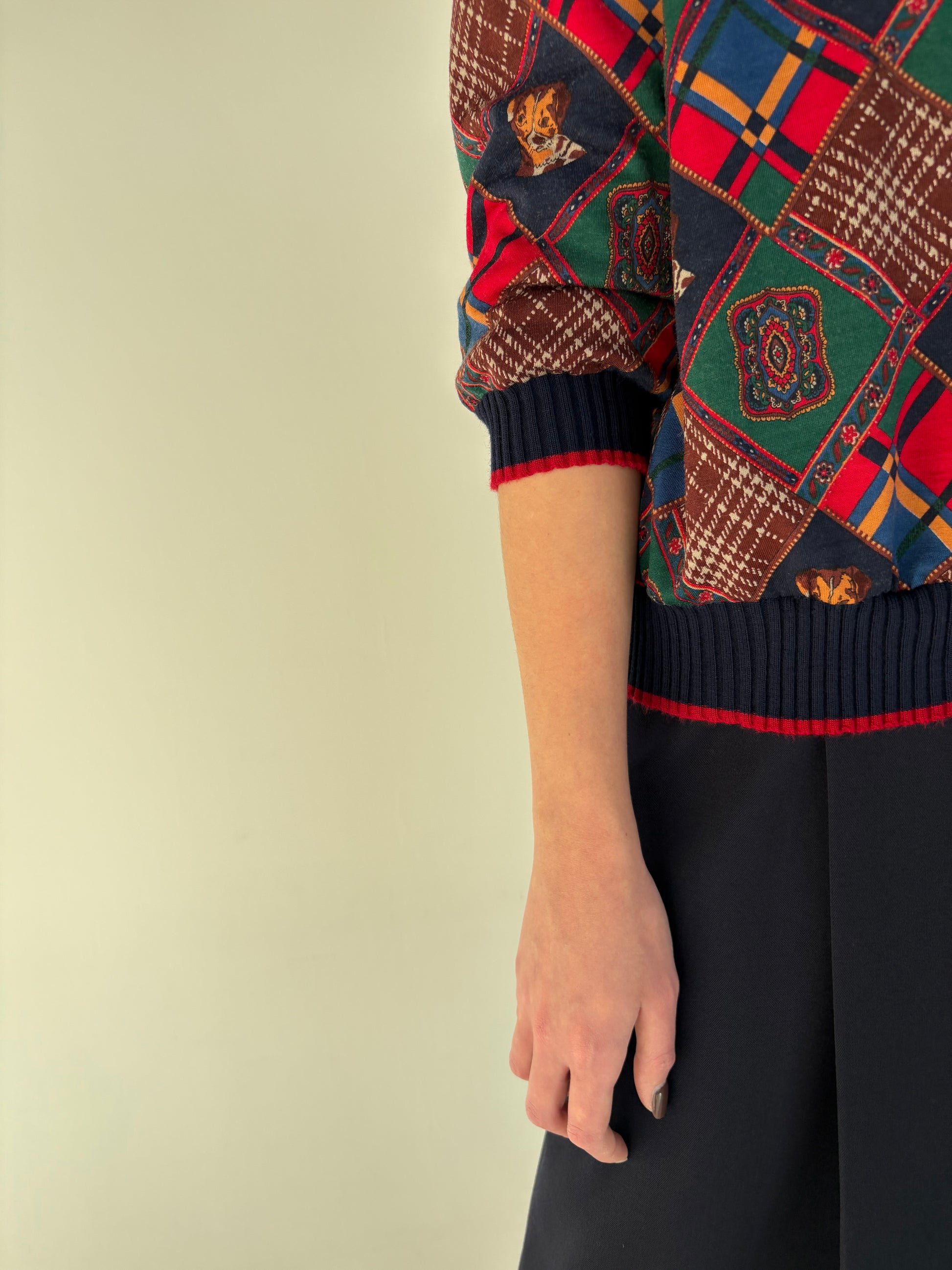 Bluză vintage petite italiană din lana extrafina cu print