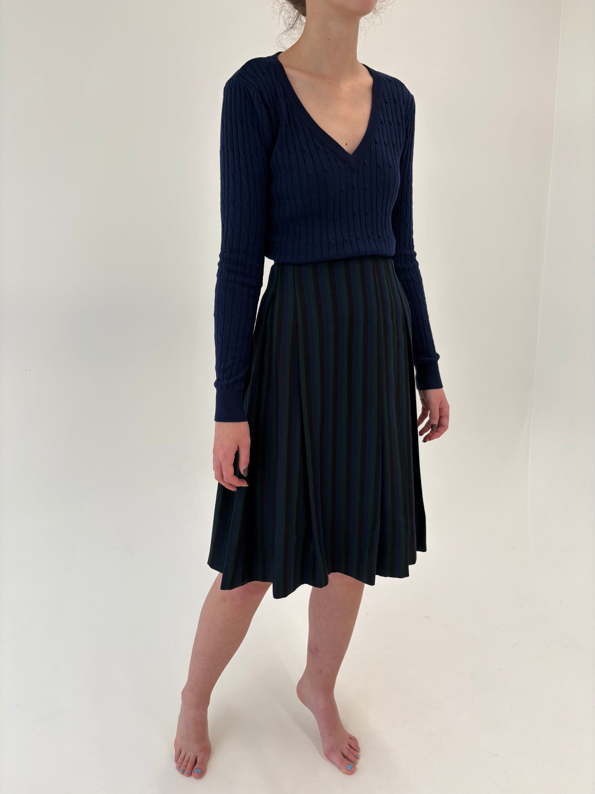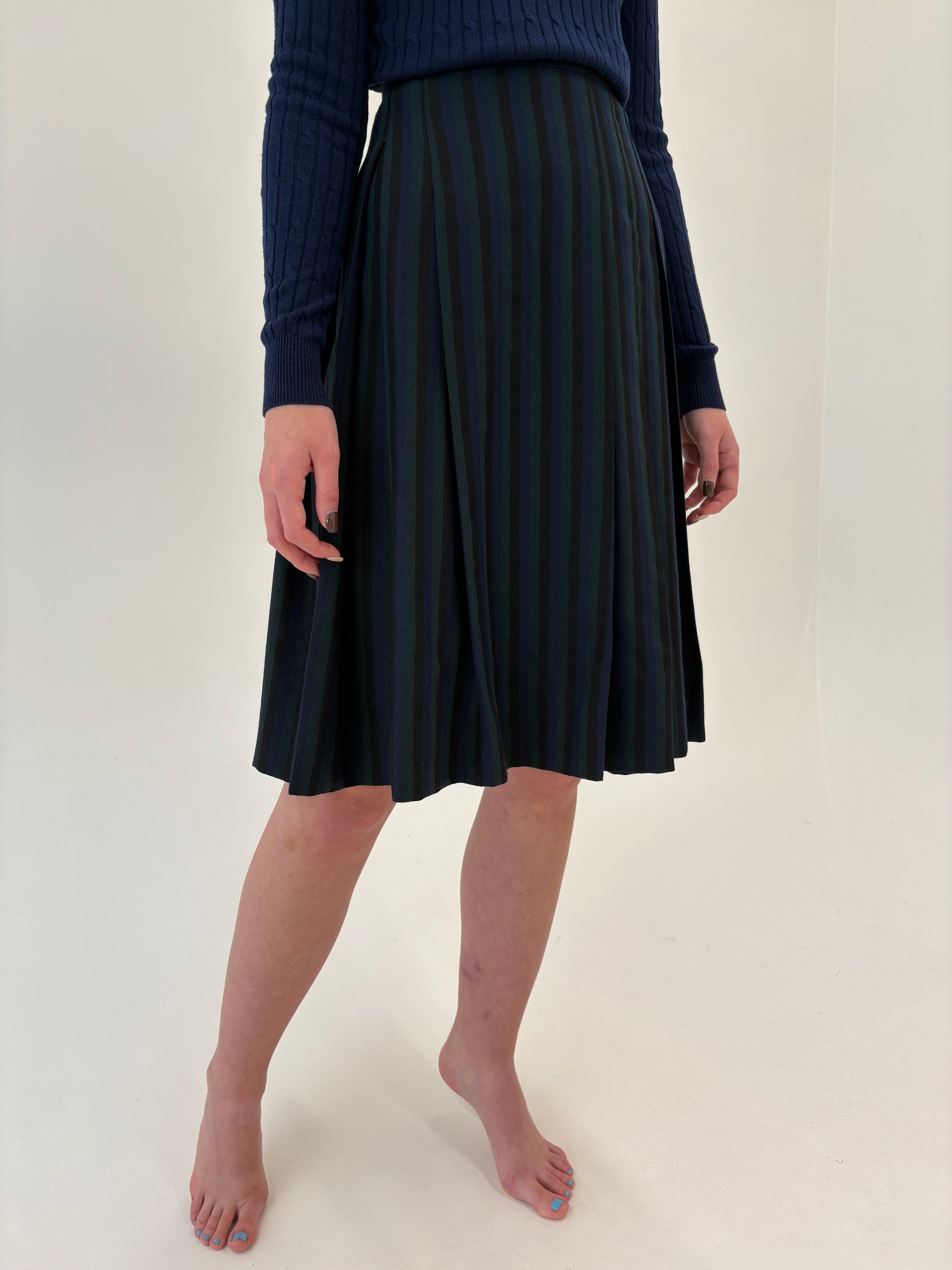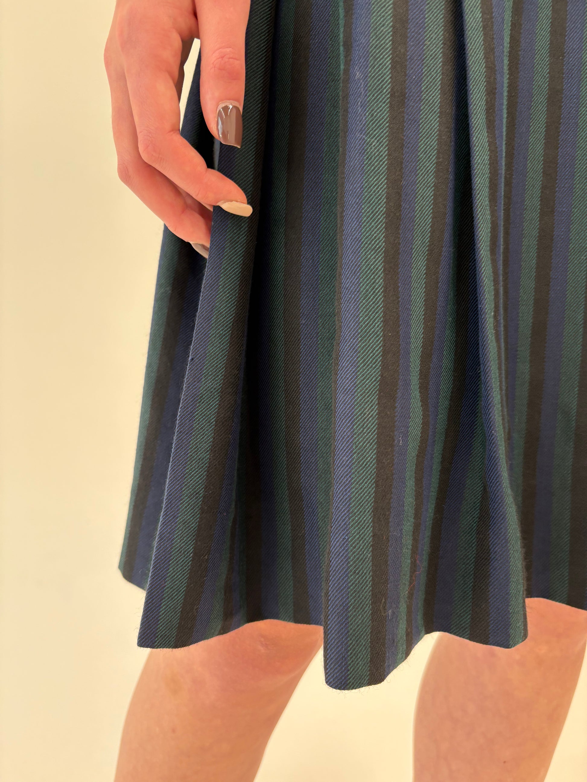 Fustă vintage plisată din lana groasă în dungi verticale și culori superbe