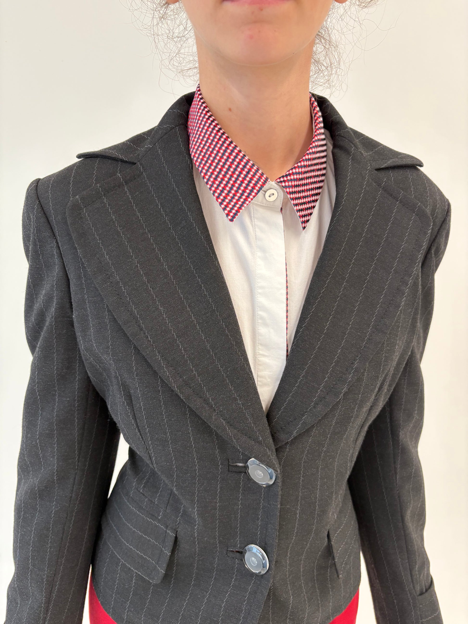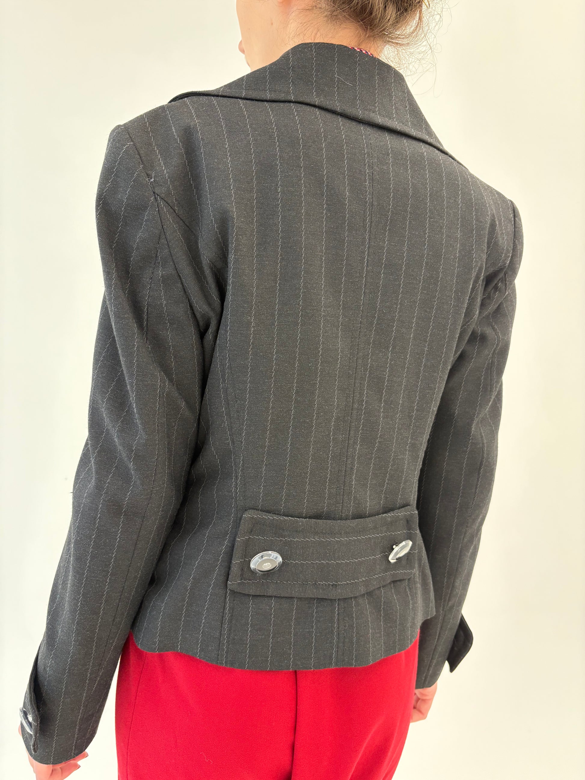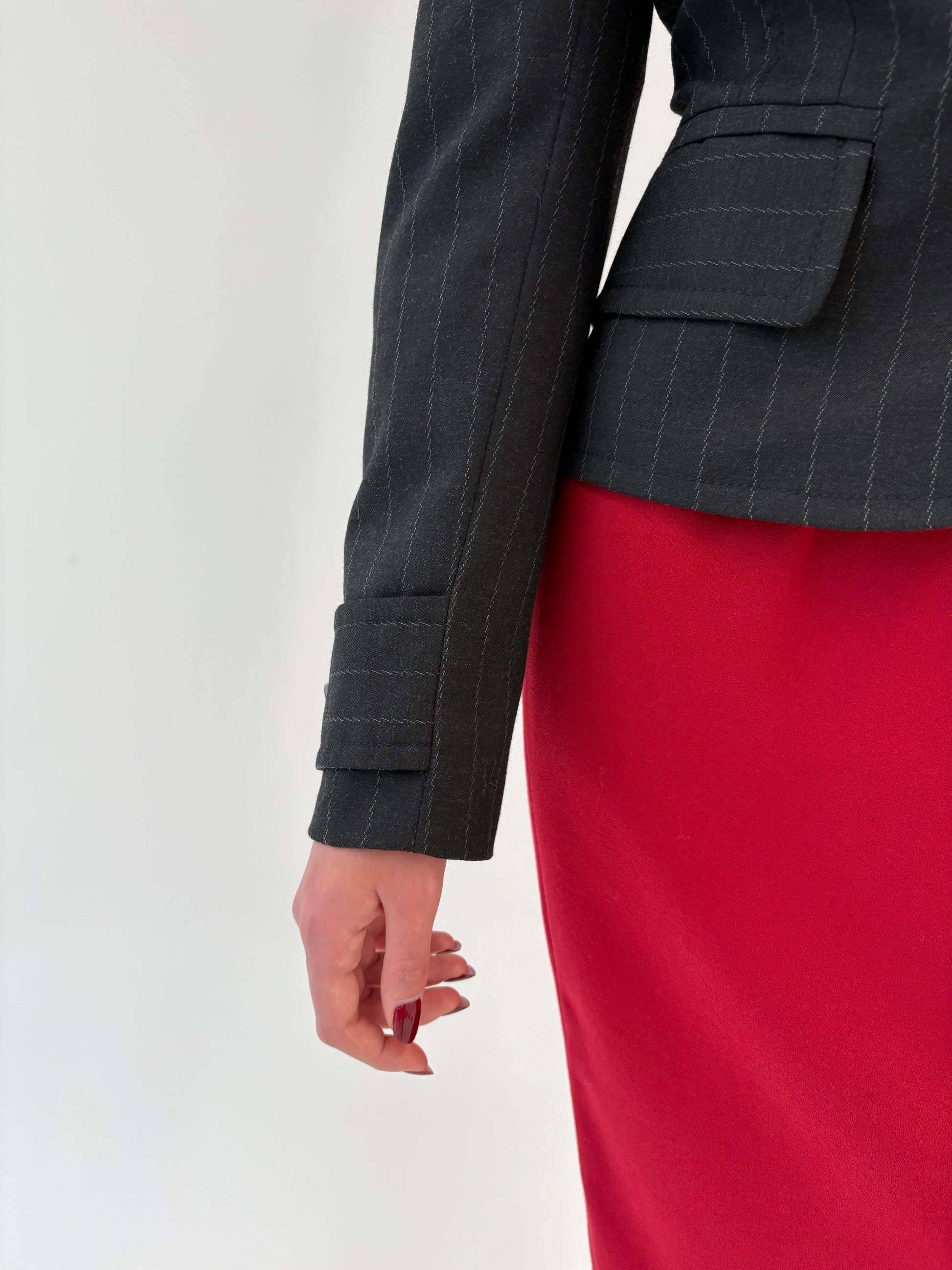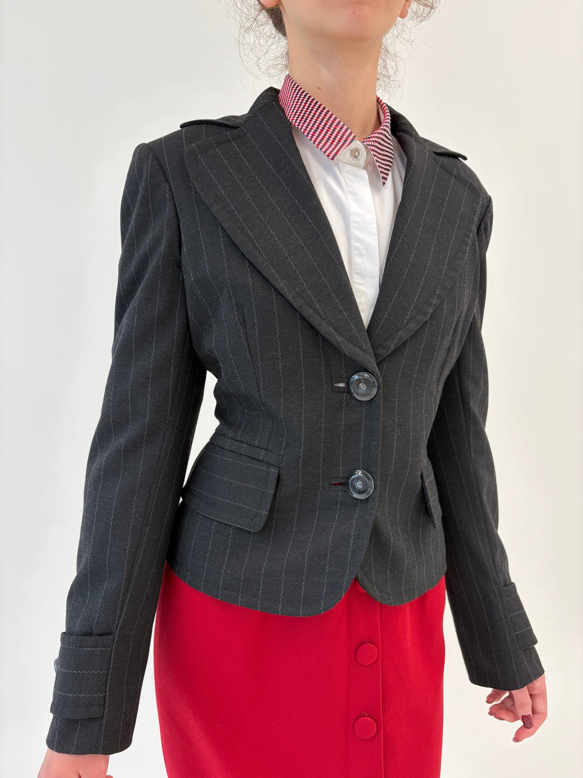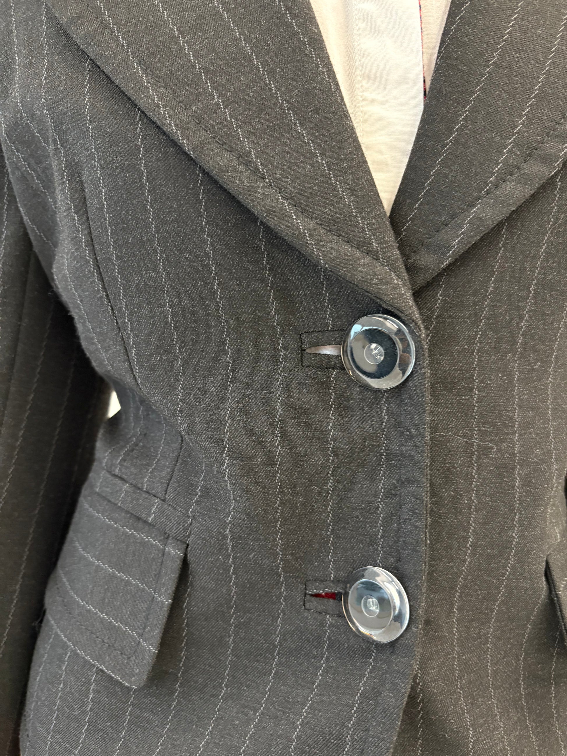 Sacou cambrat din lana extrafina cu nasturi supradimensionați și dungi fine verticale