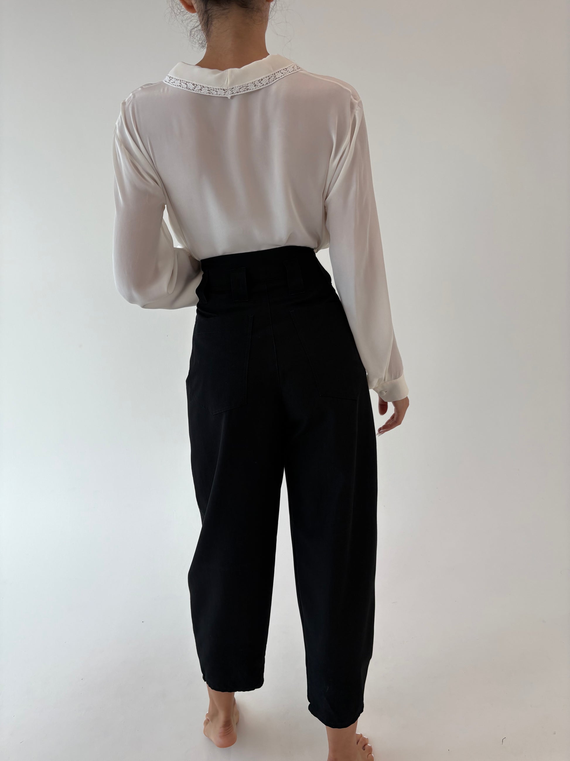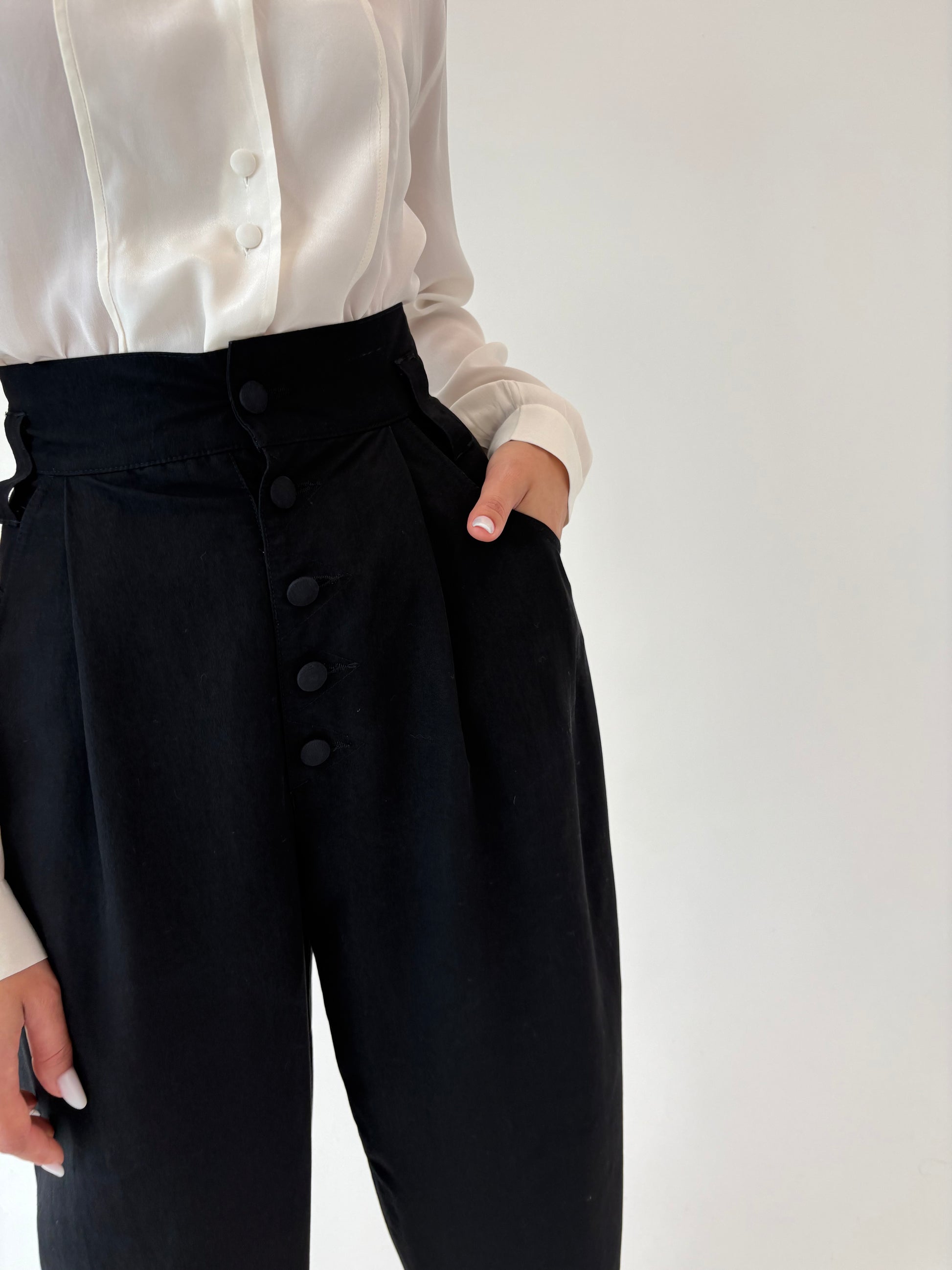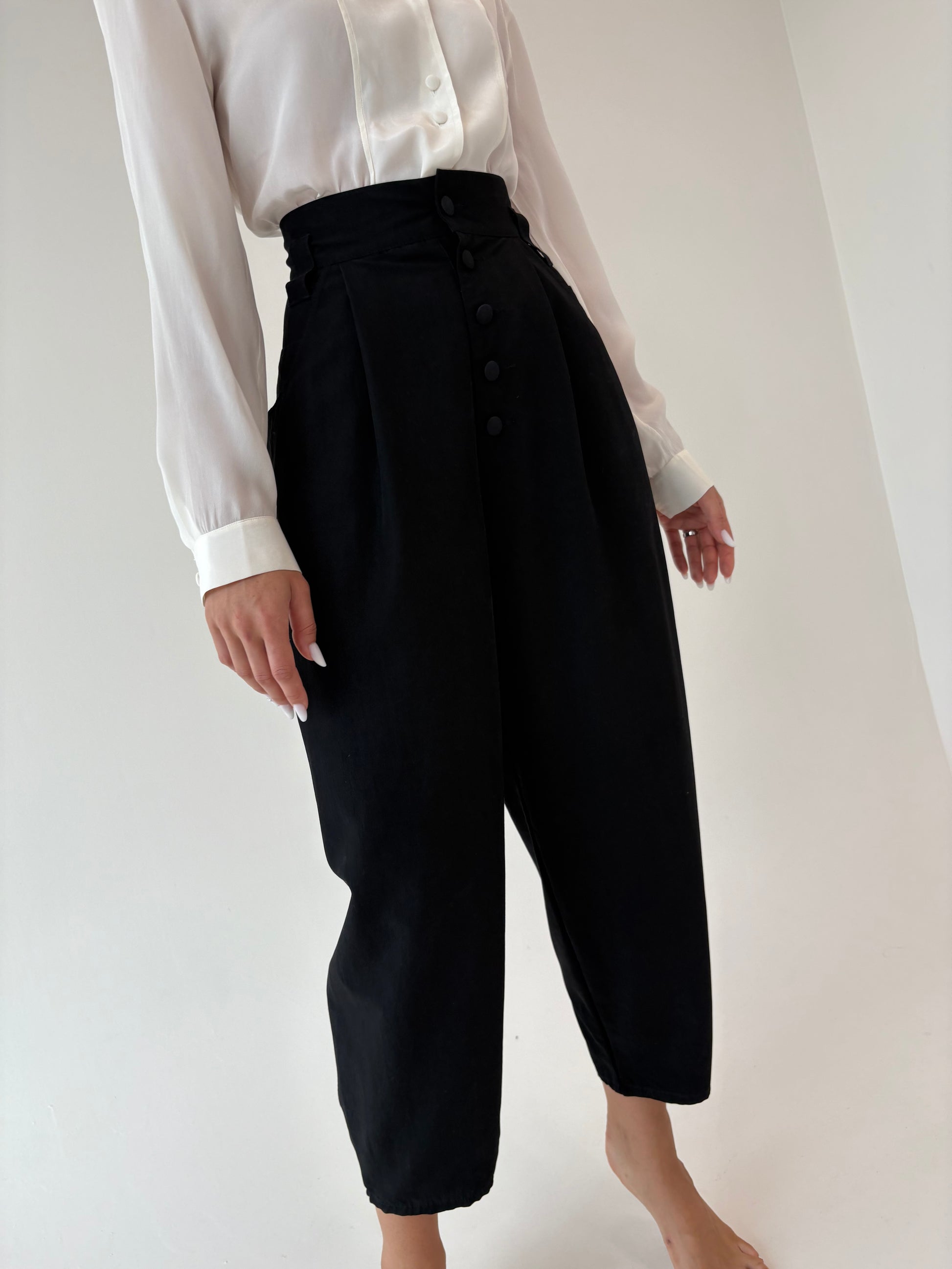 Pantaloni baloon vintage negri cu talie ultra înaltă și pense din stofita
