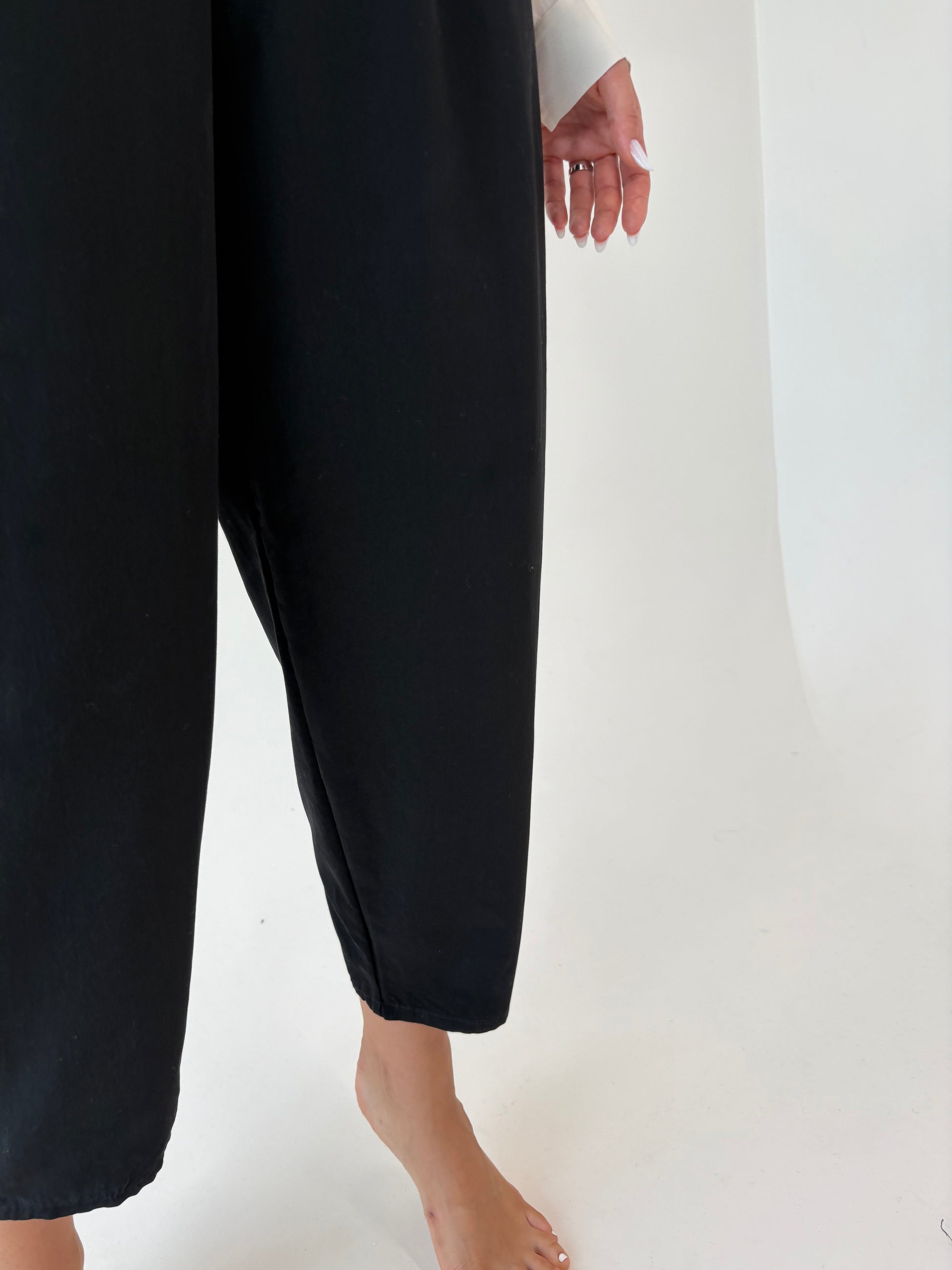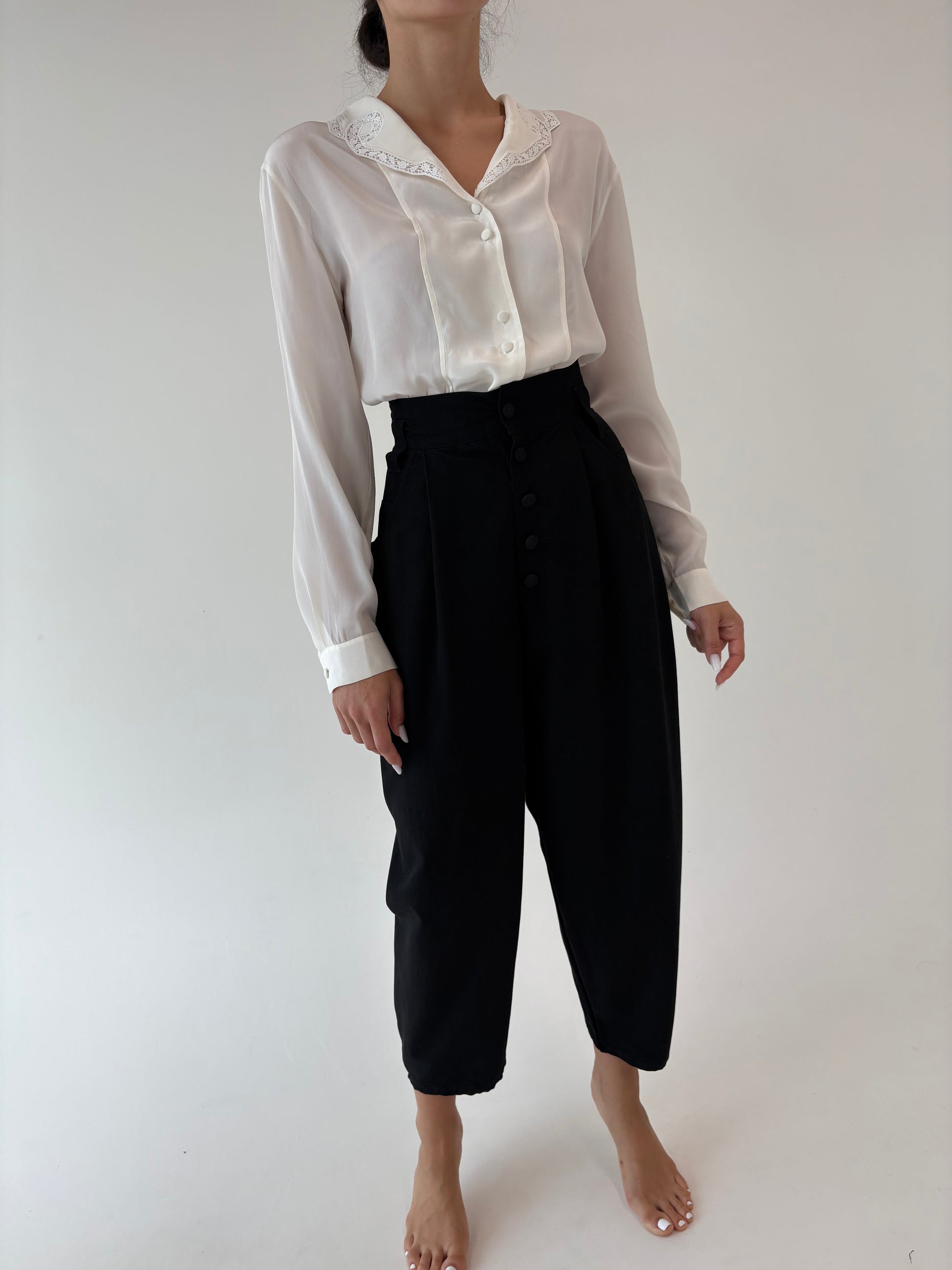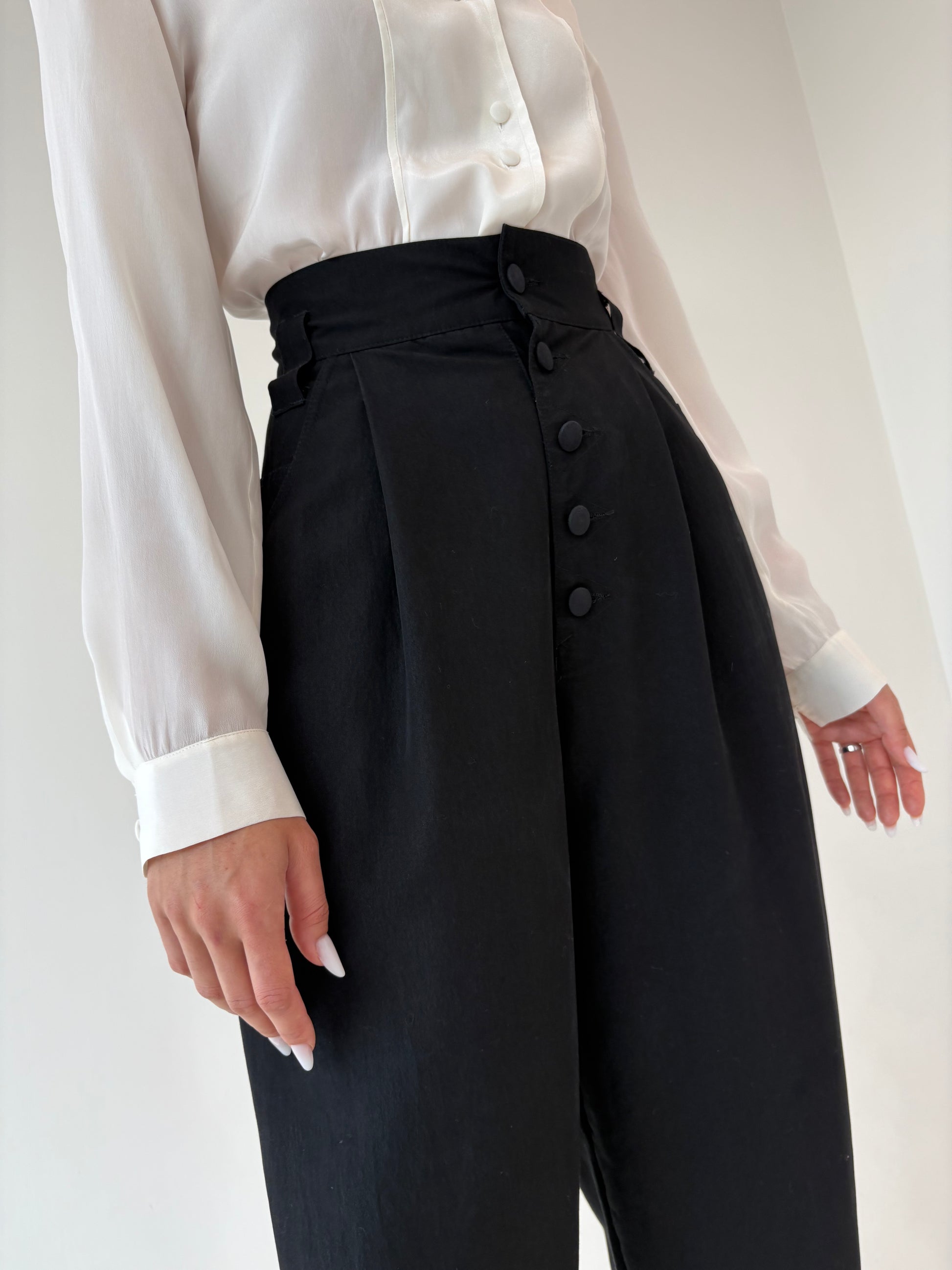 Pantaloni baloon vintage negri cu talie ultra înaltă și pense din stofita