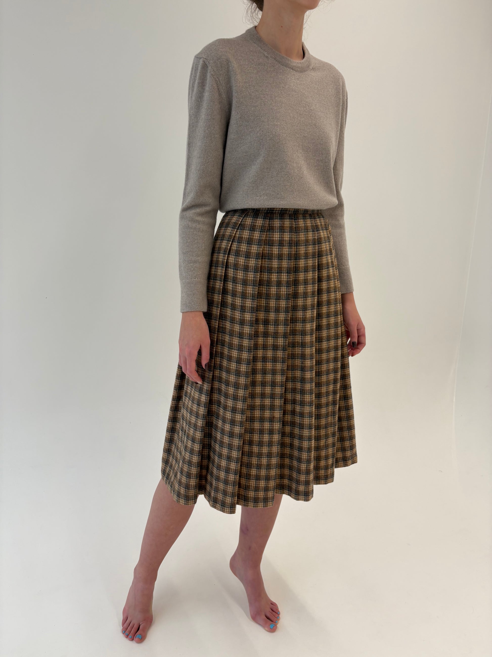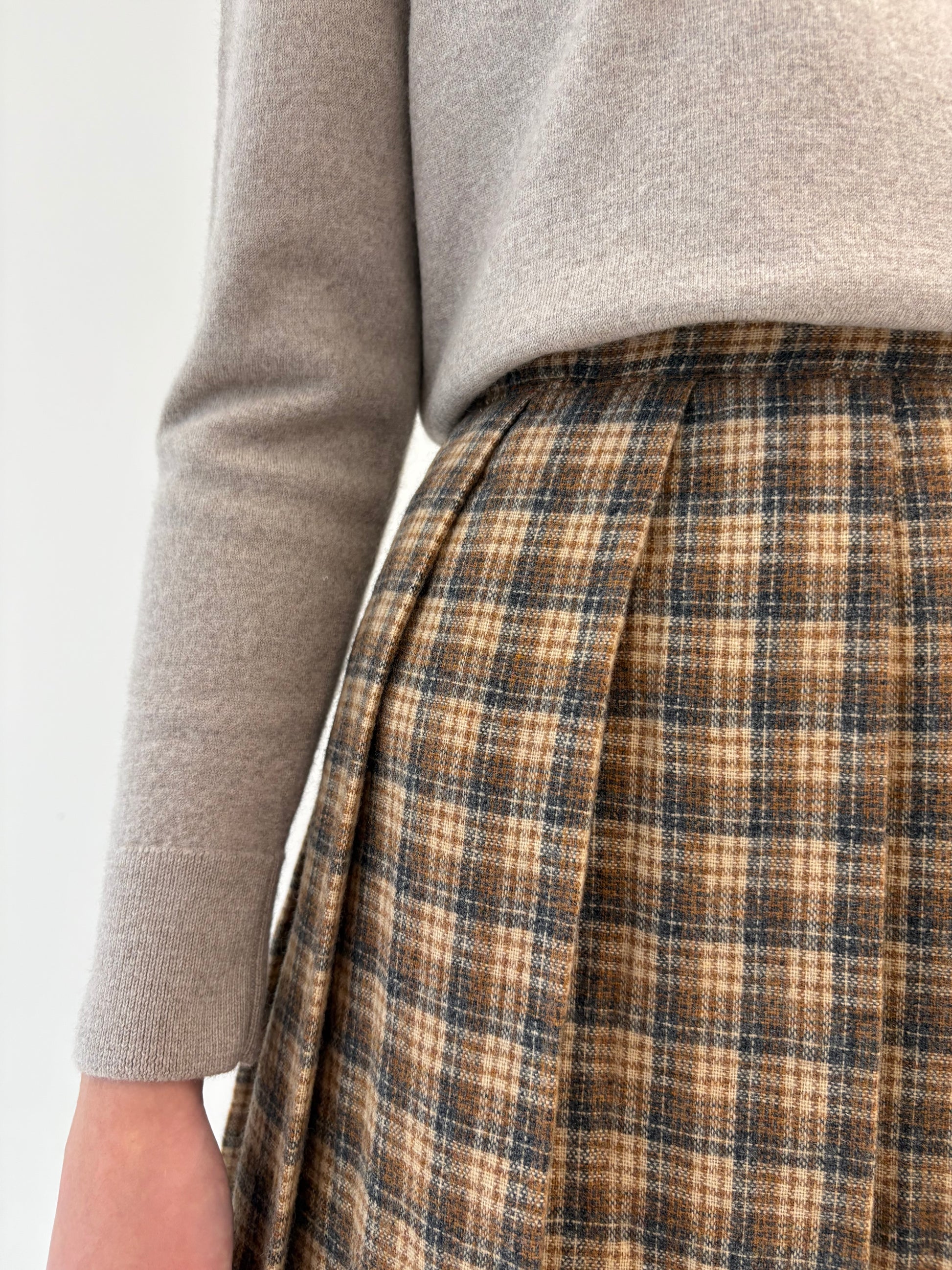 Fustă camel plisată din Tartan de lana cu talie ultra înaltă marcată