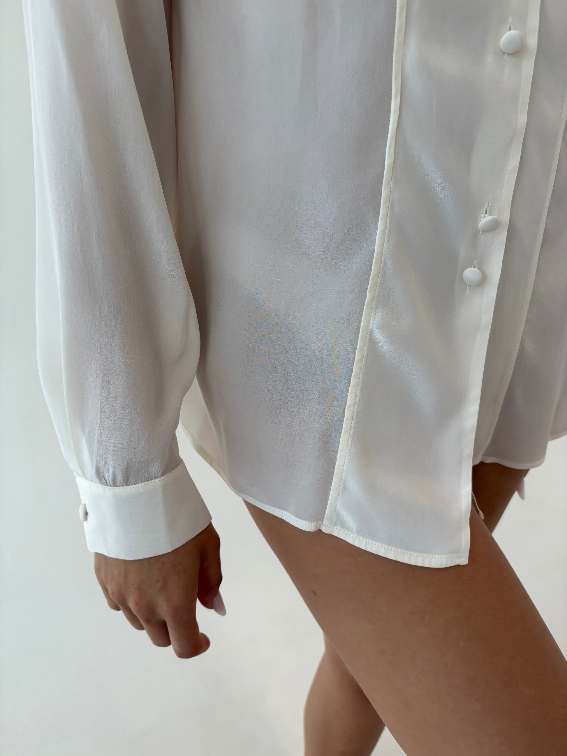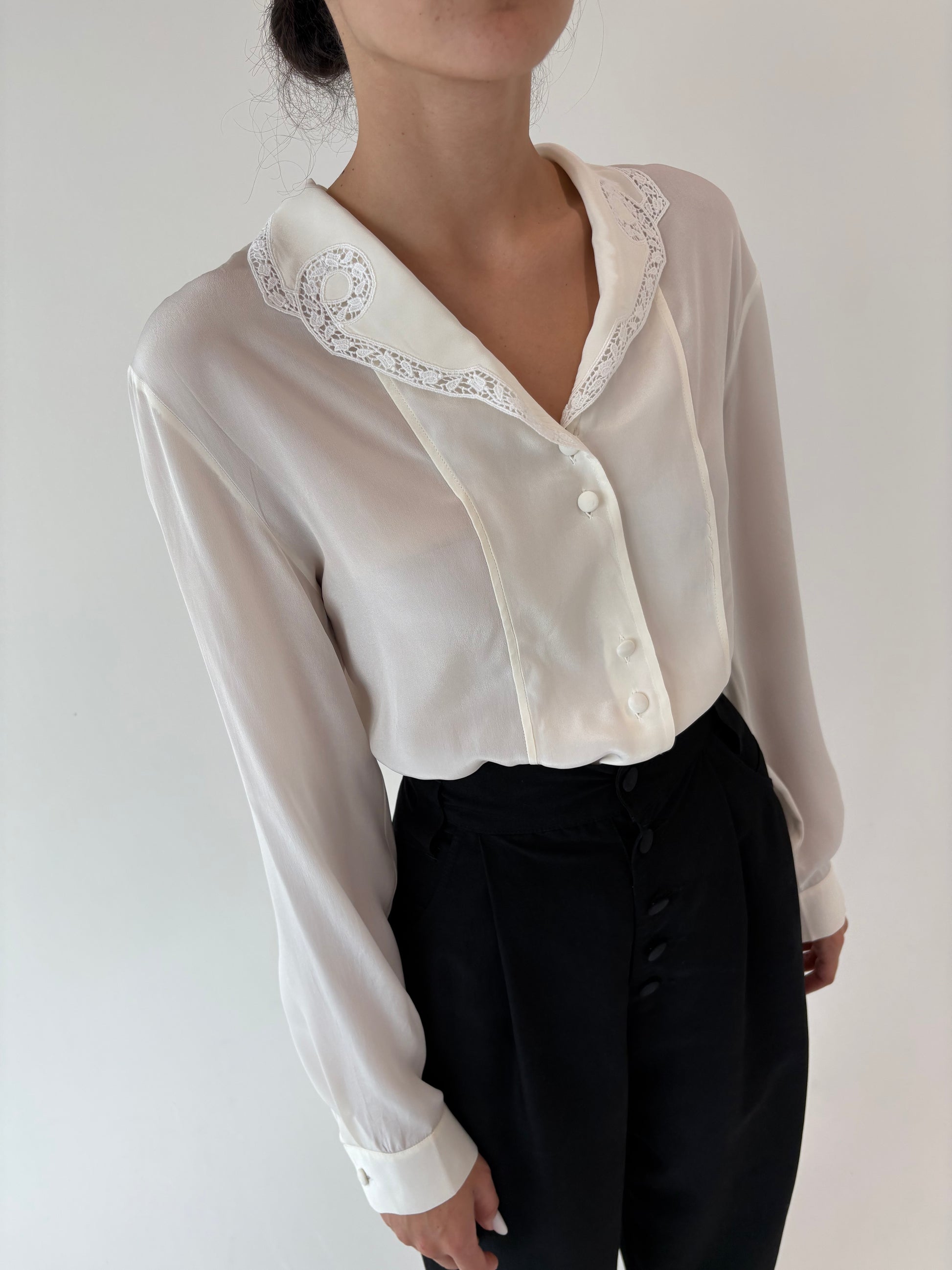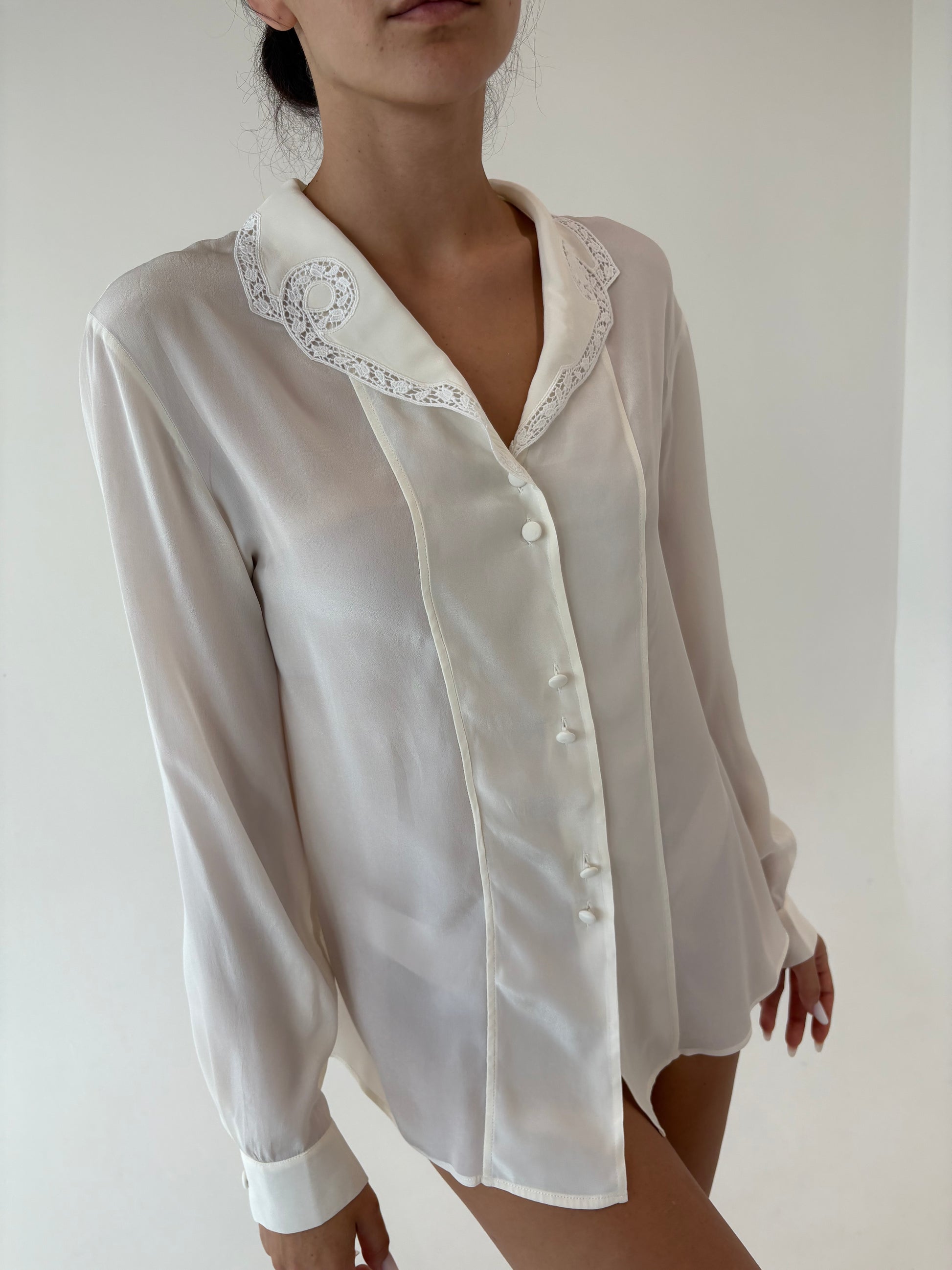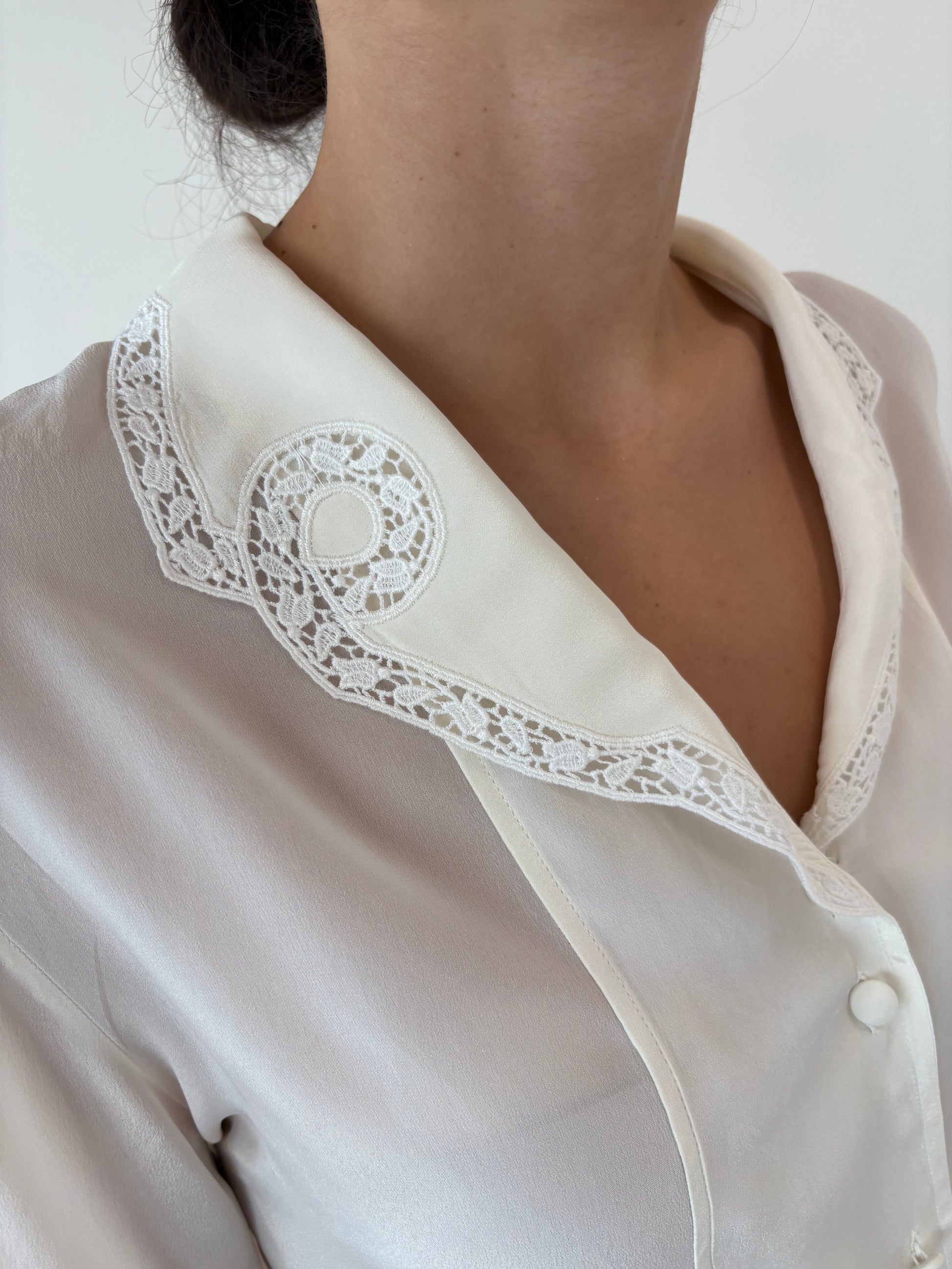 Cămașa butter white italiană din mix de mătase naturală cu inserții de dantelă