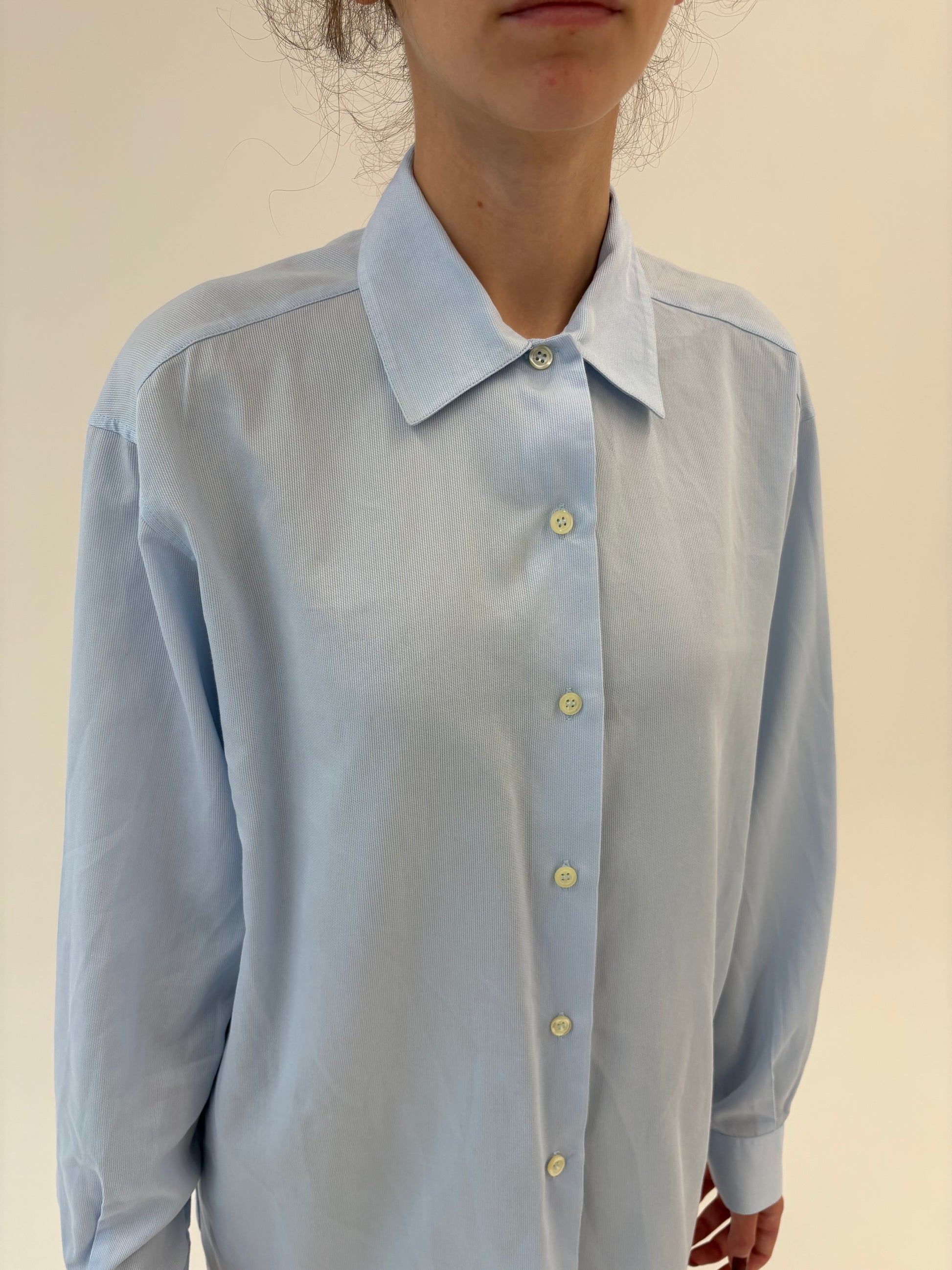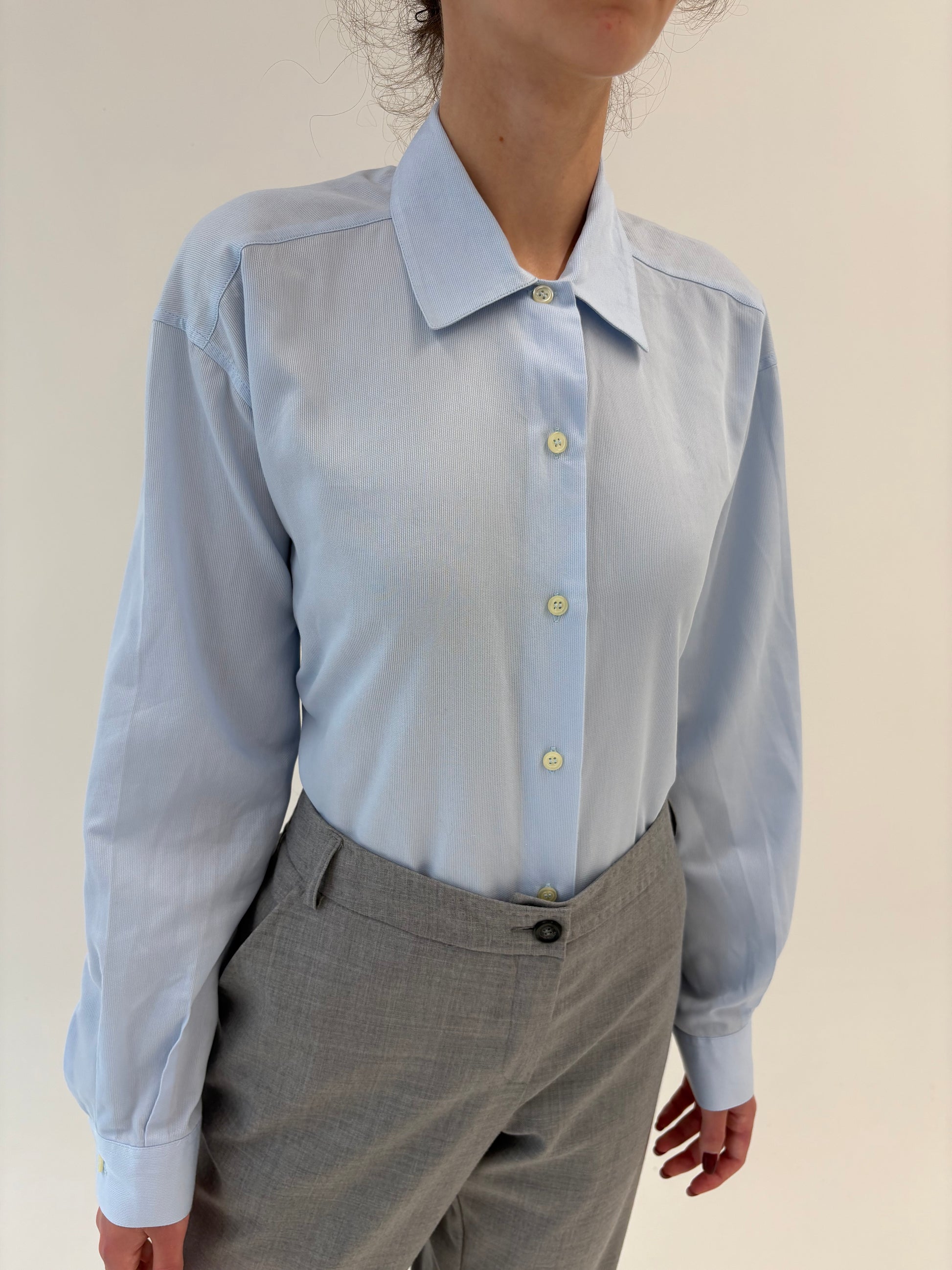 Cămașa premium baby blue Stefanel din poplin excepțional texturat