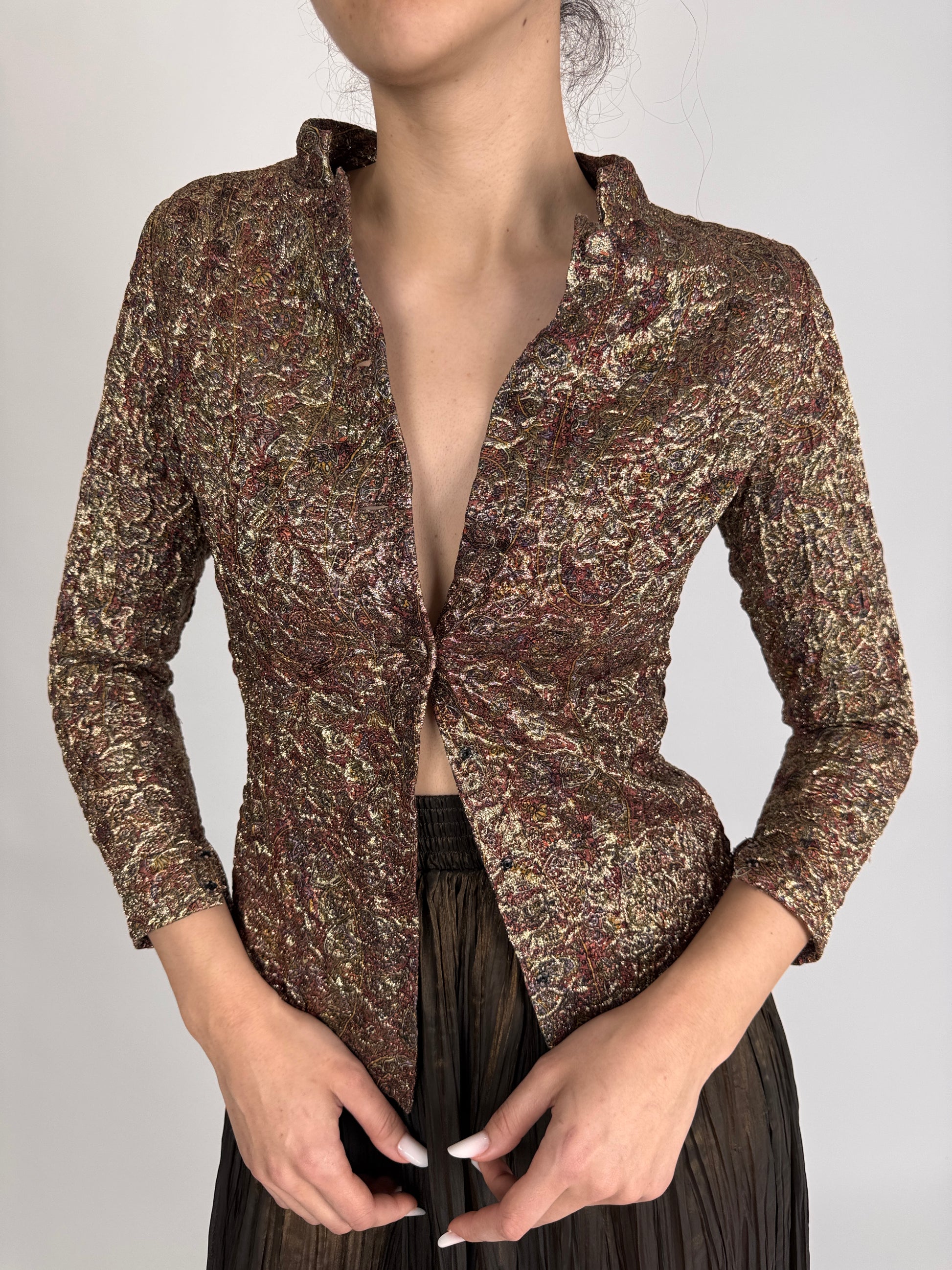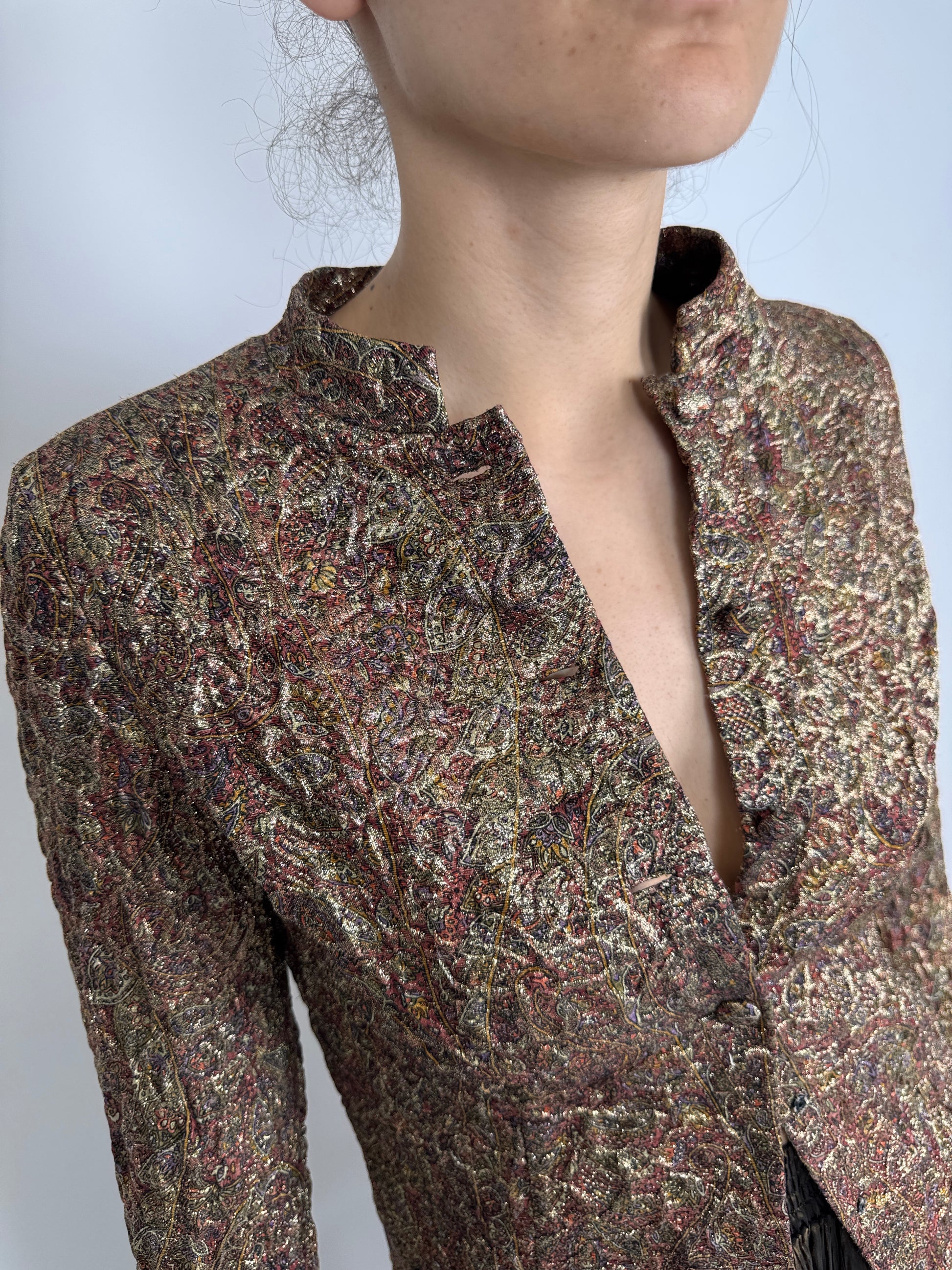 Sacou petite cambrat din brocart prețios din mix de mătase naturală