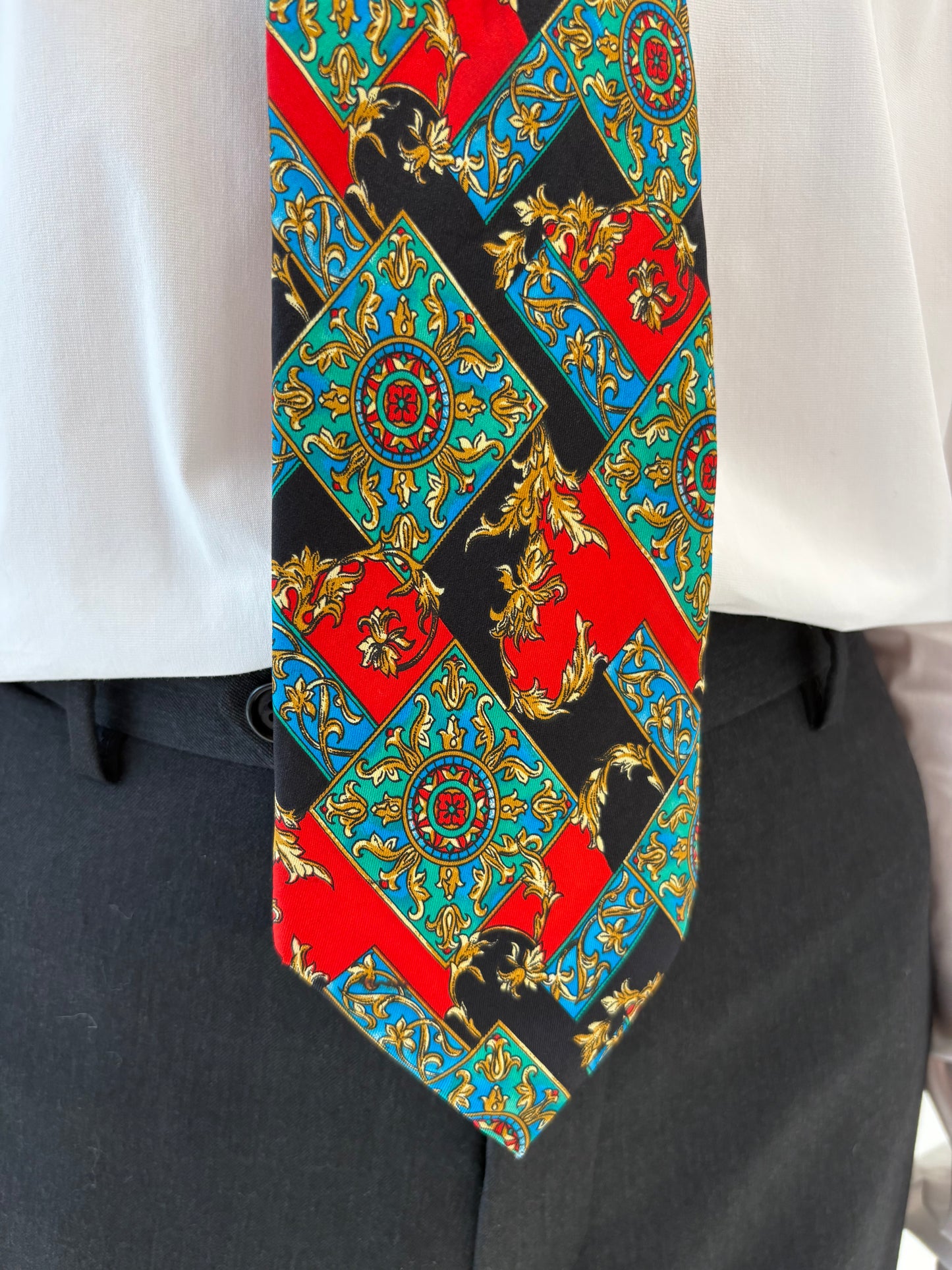 Cravata italiana din mătase naturală cu print baroc
