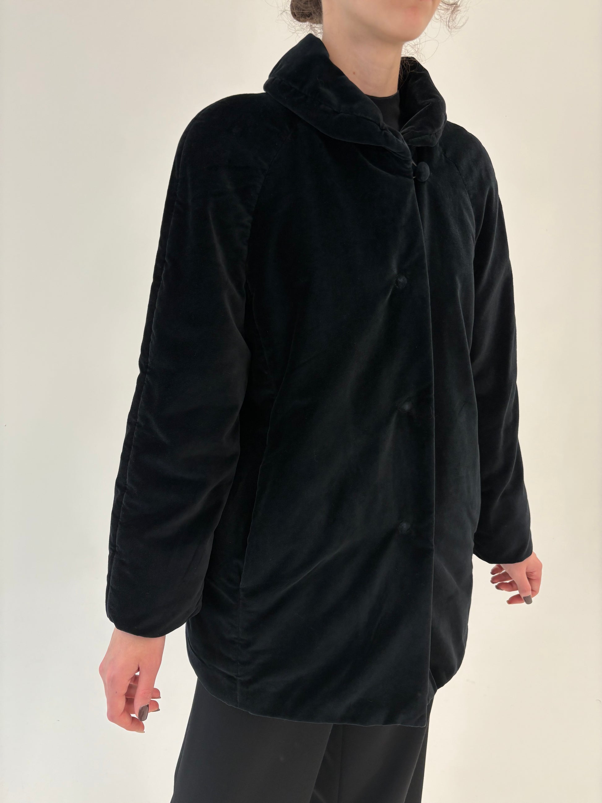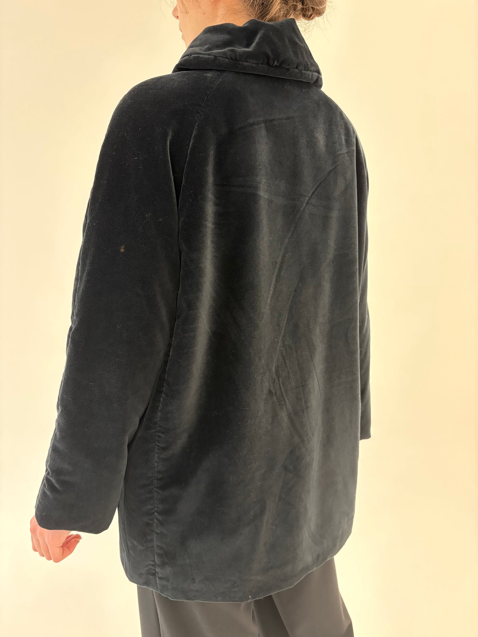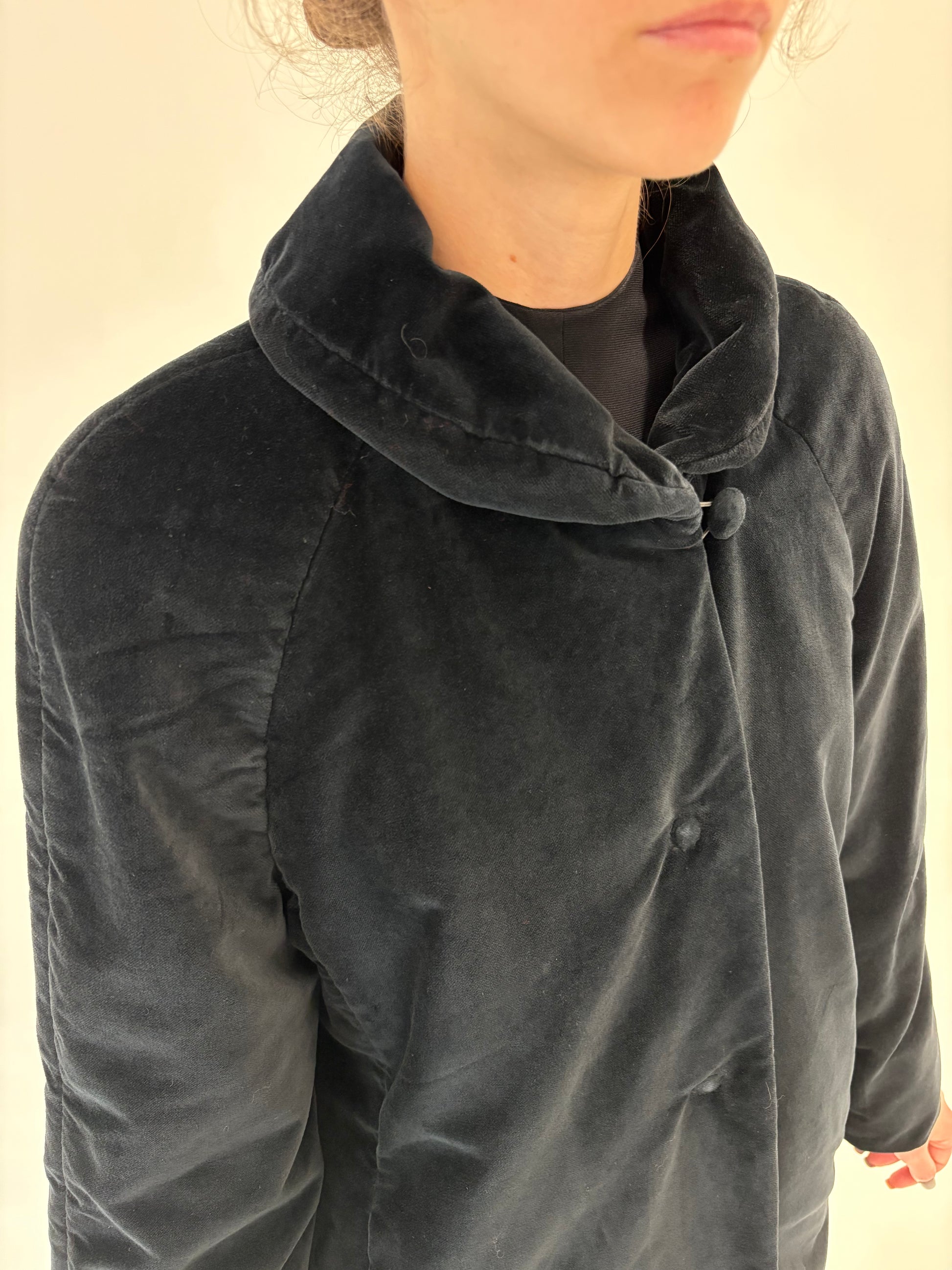 Jacheta matlasata vintage din catifea neagră de la și la seară în croi A-line