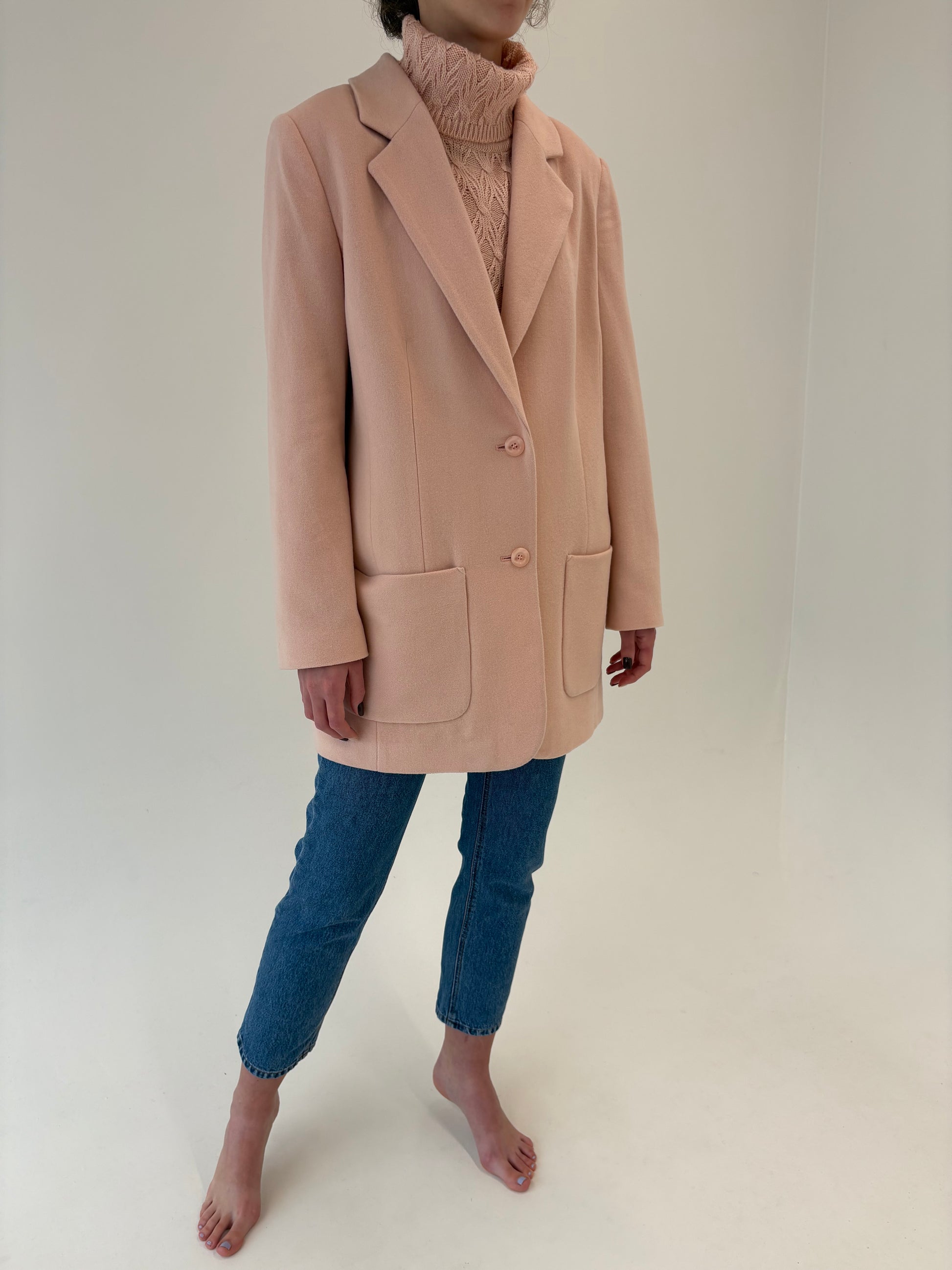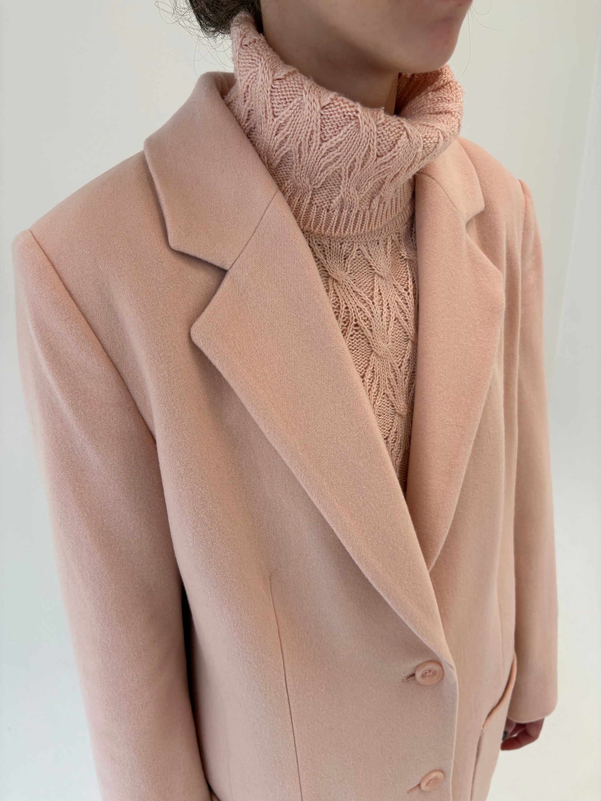 Pardesiu roz pudrat nou din lana extrafina cu cașmir