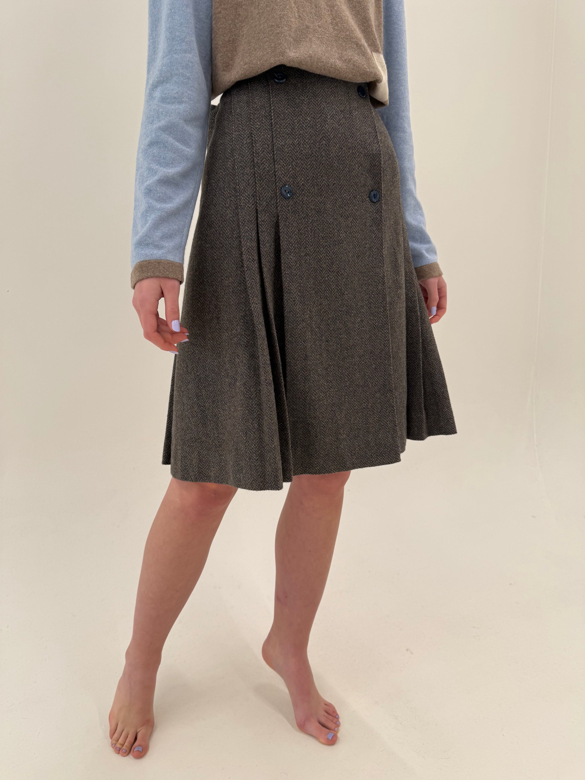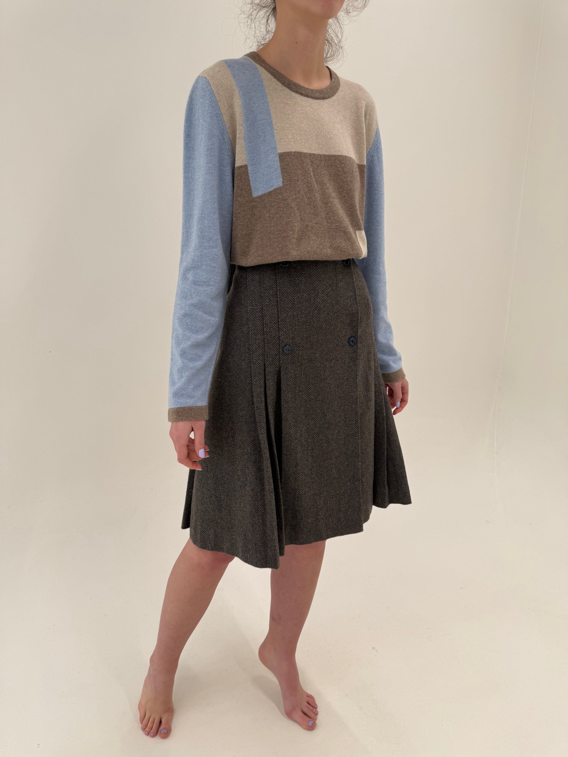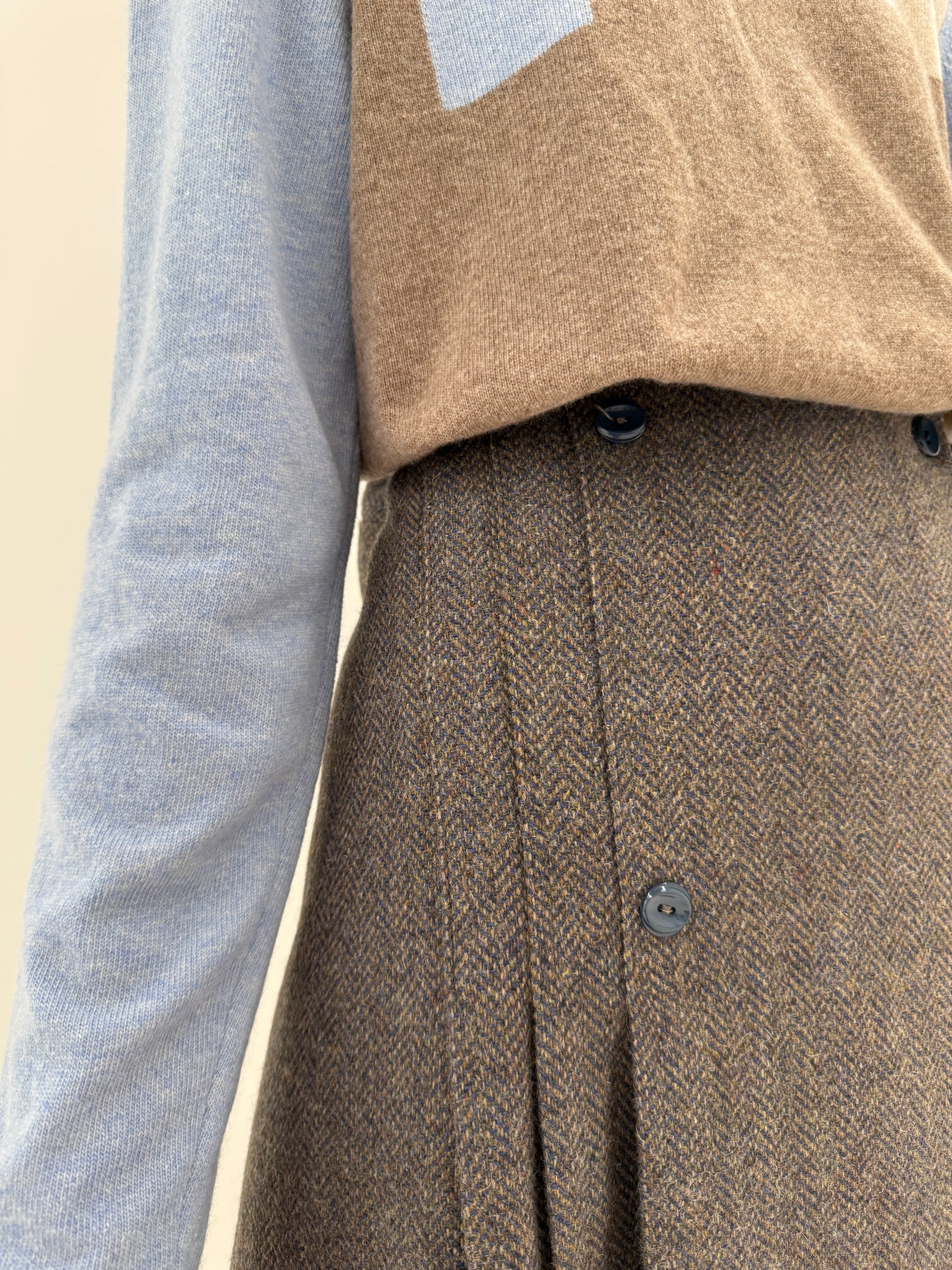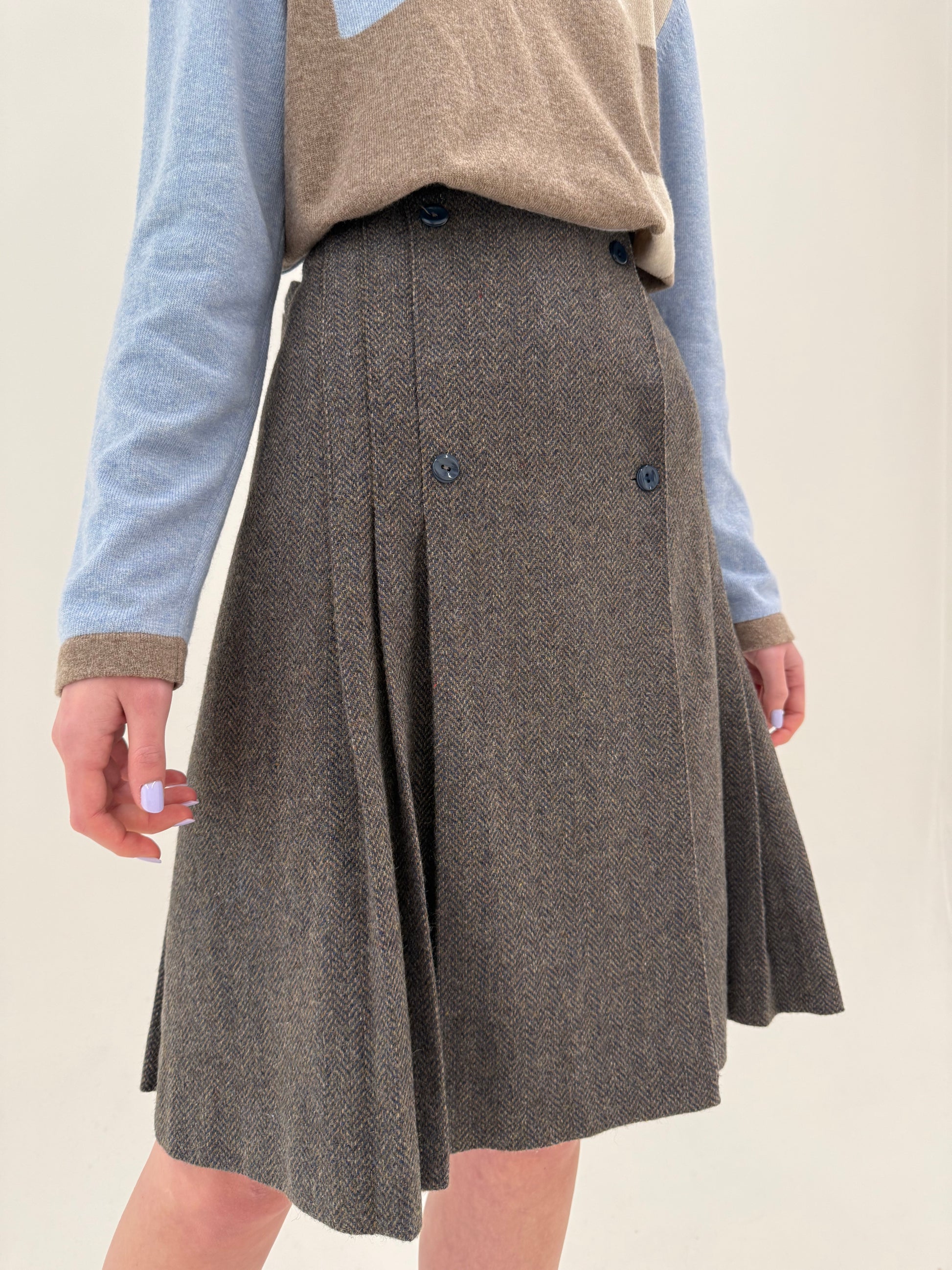 Fustă taupe și teal blue din Tartan de lana groasa cu pliseuri și talie ultra înaltă