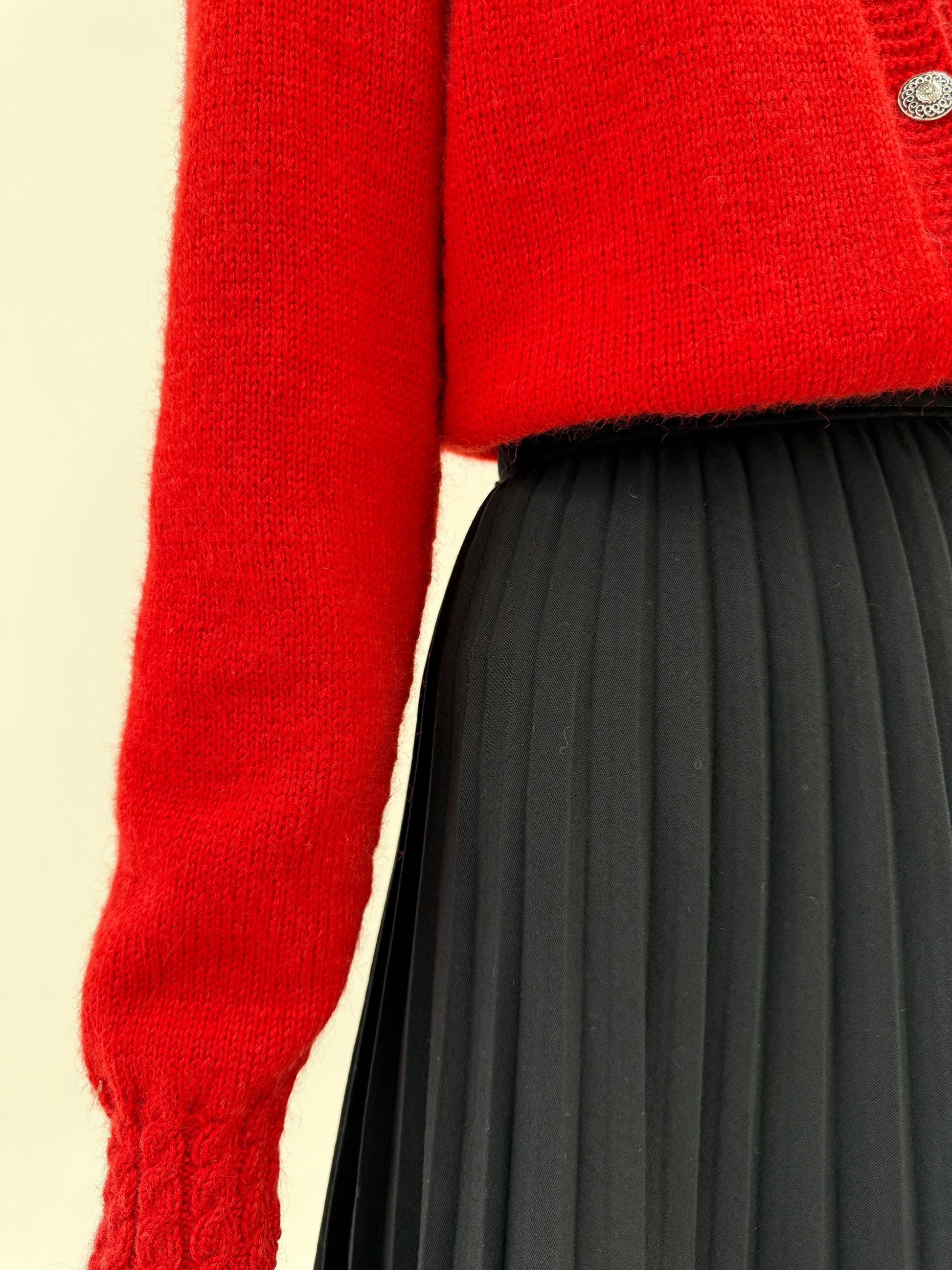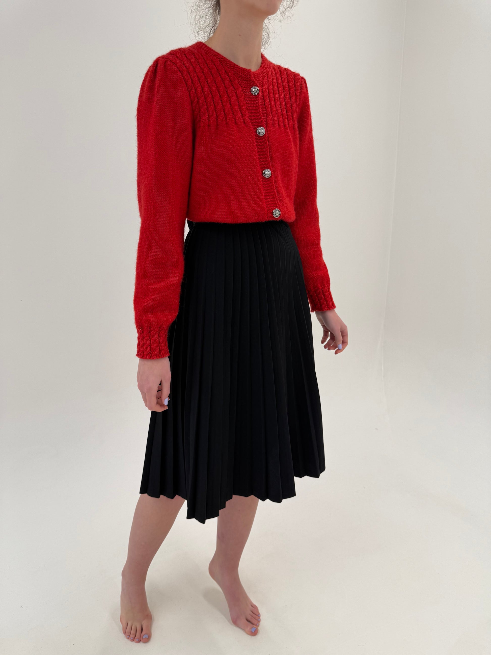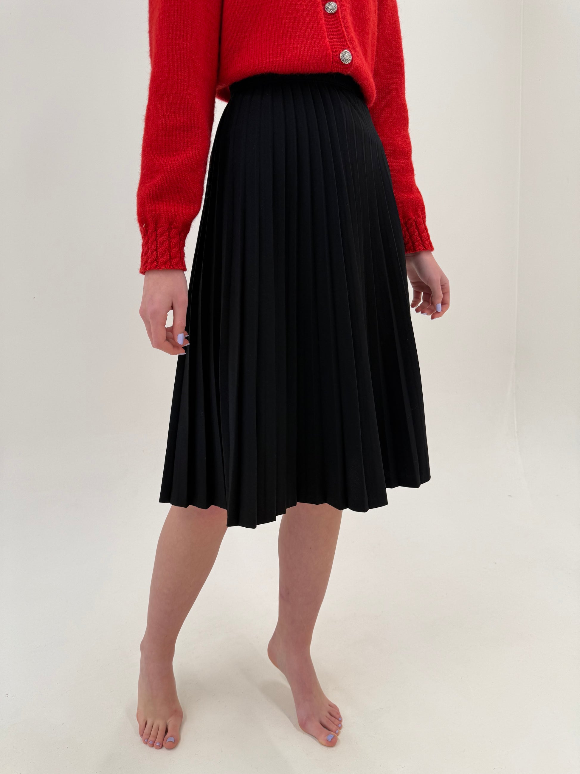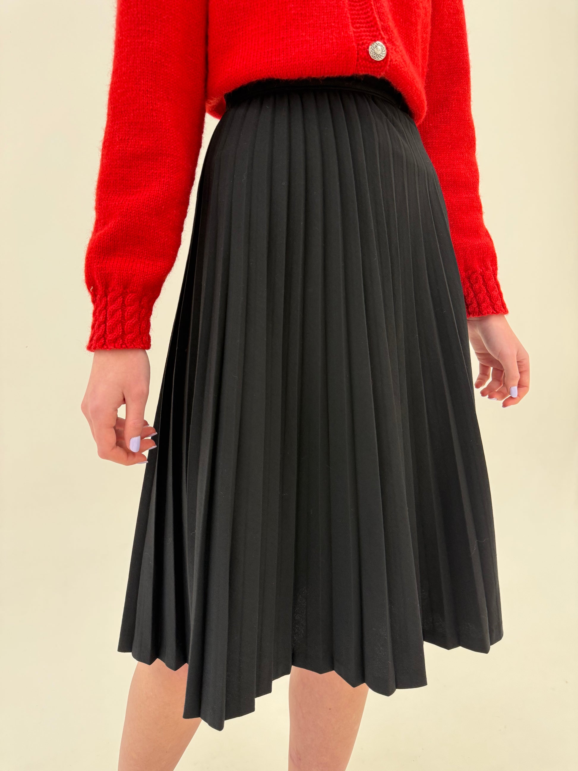 Fustă neagră plisată midi cu taie ultra înaltă de la zi la seară