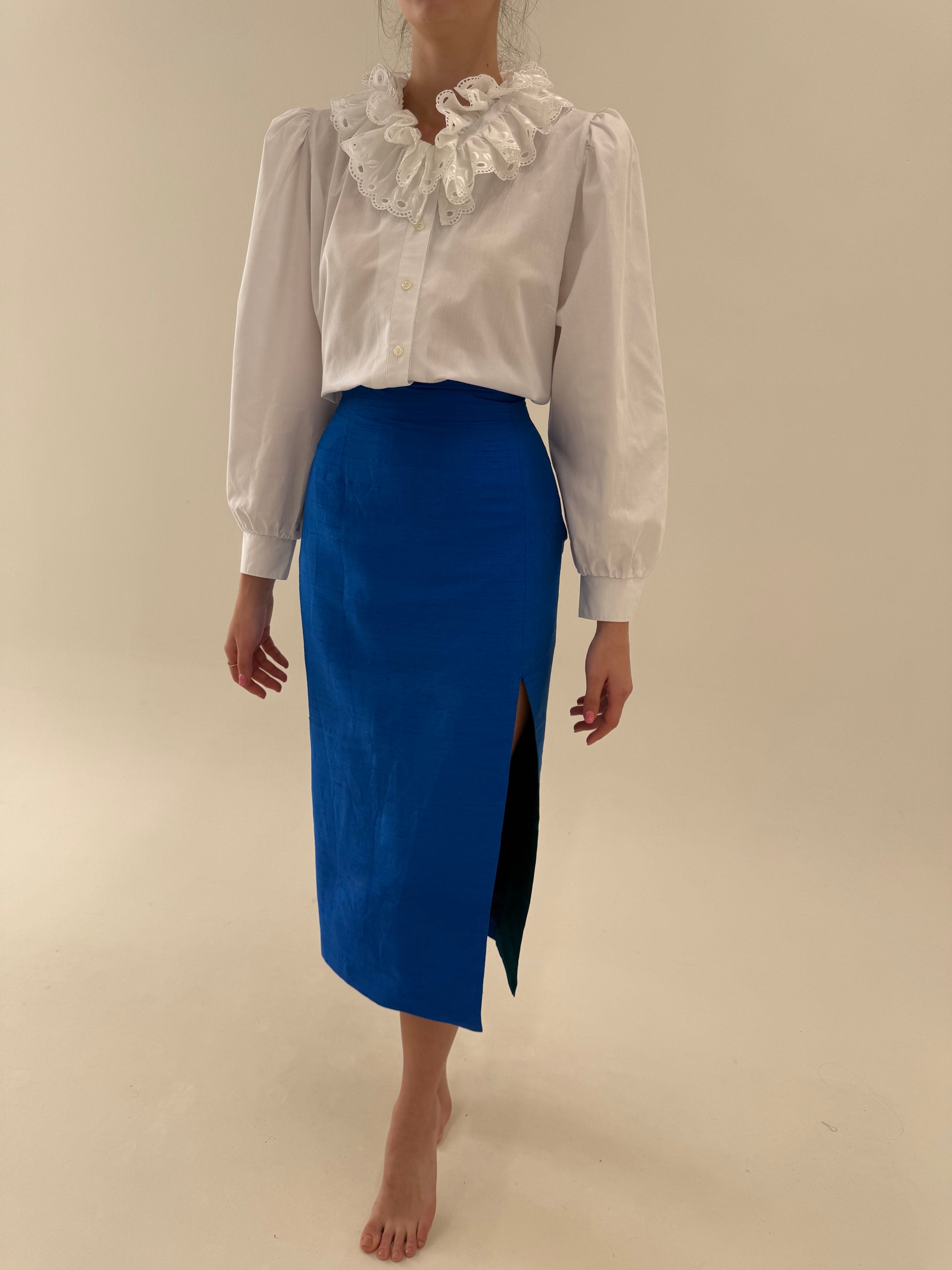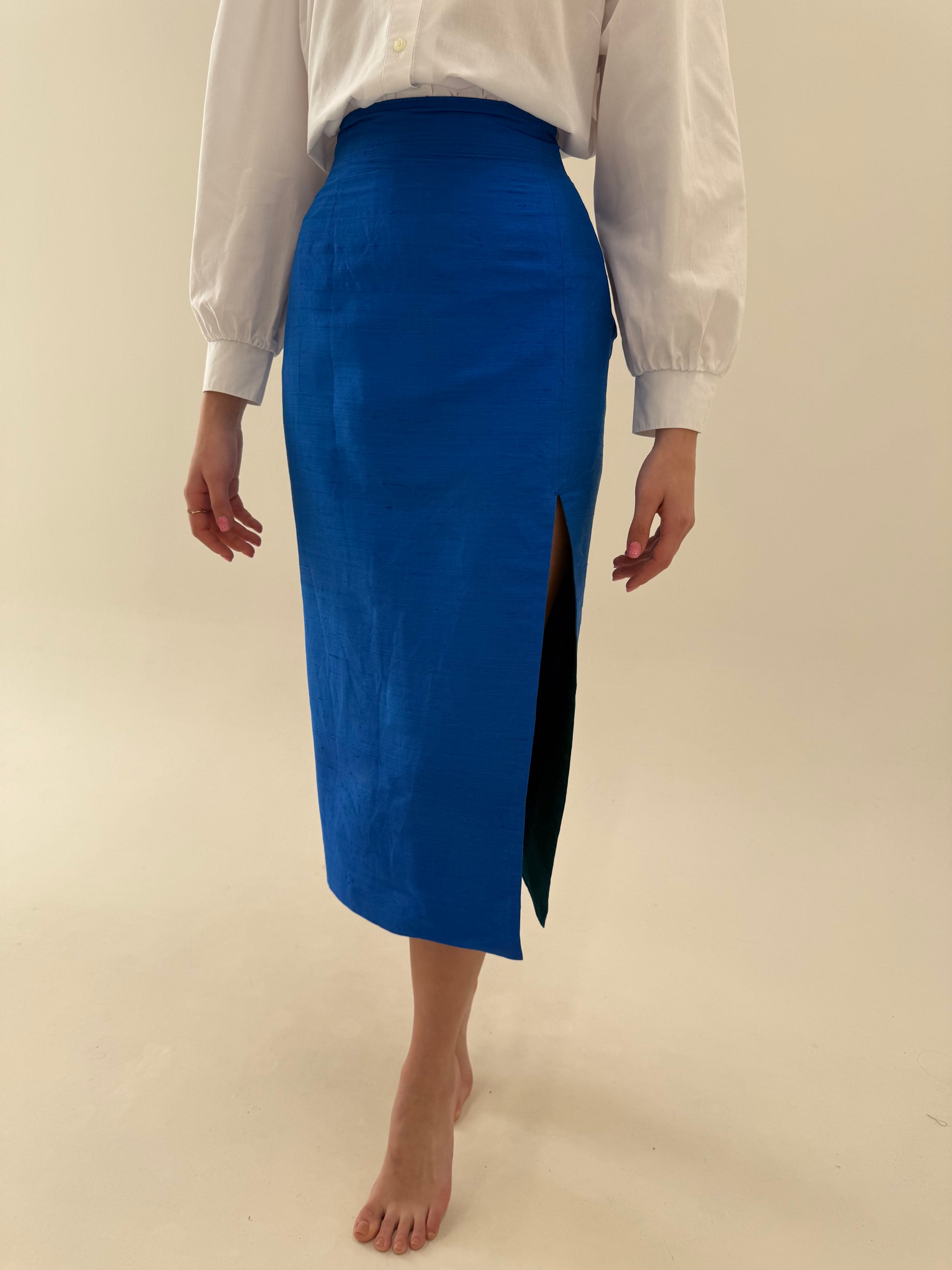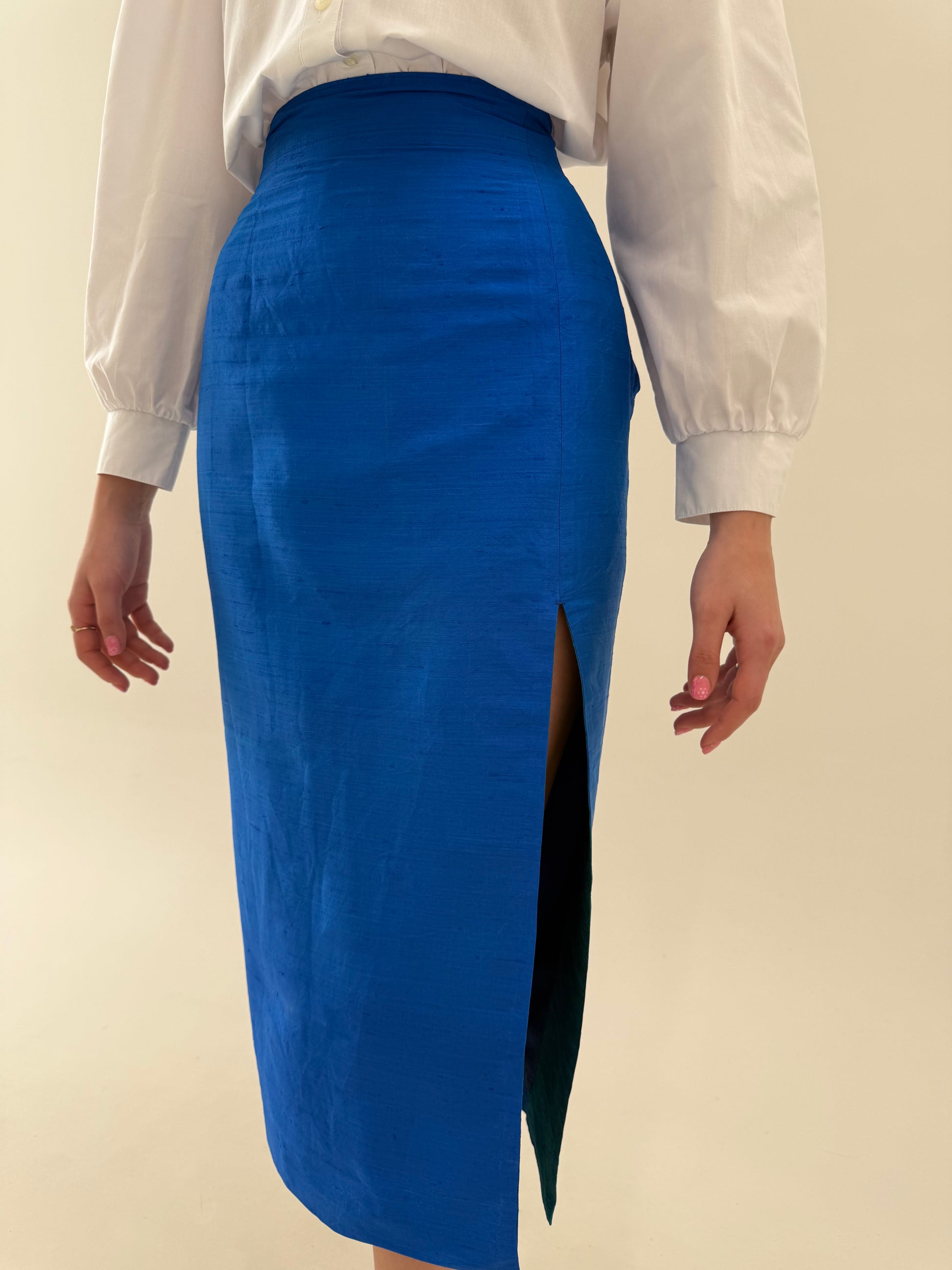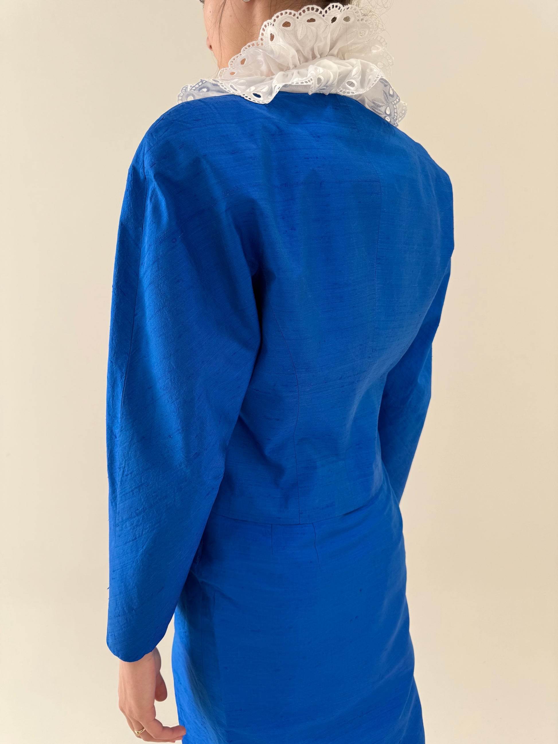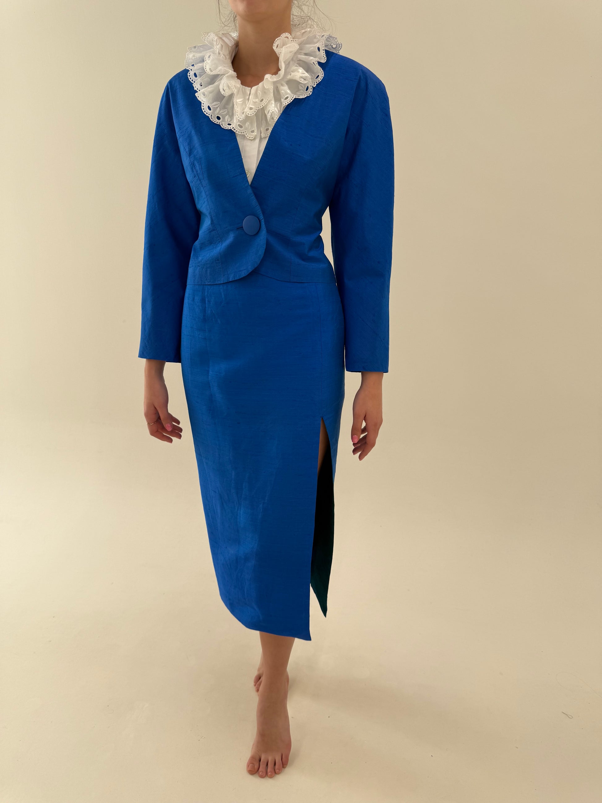 Deux piece din mătase naturală dupioni albastru regal de la zi la seară