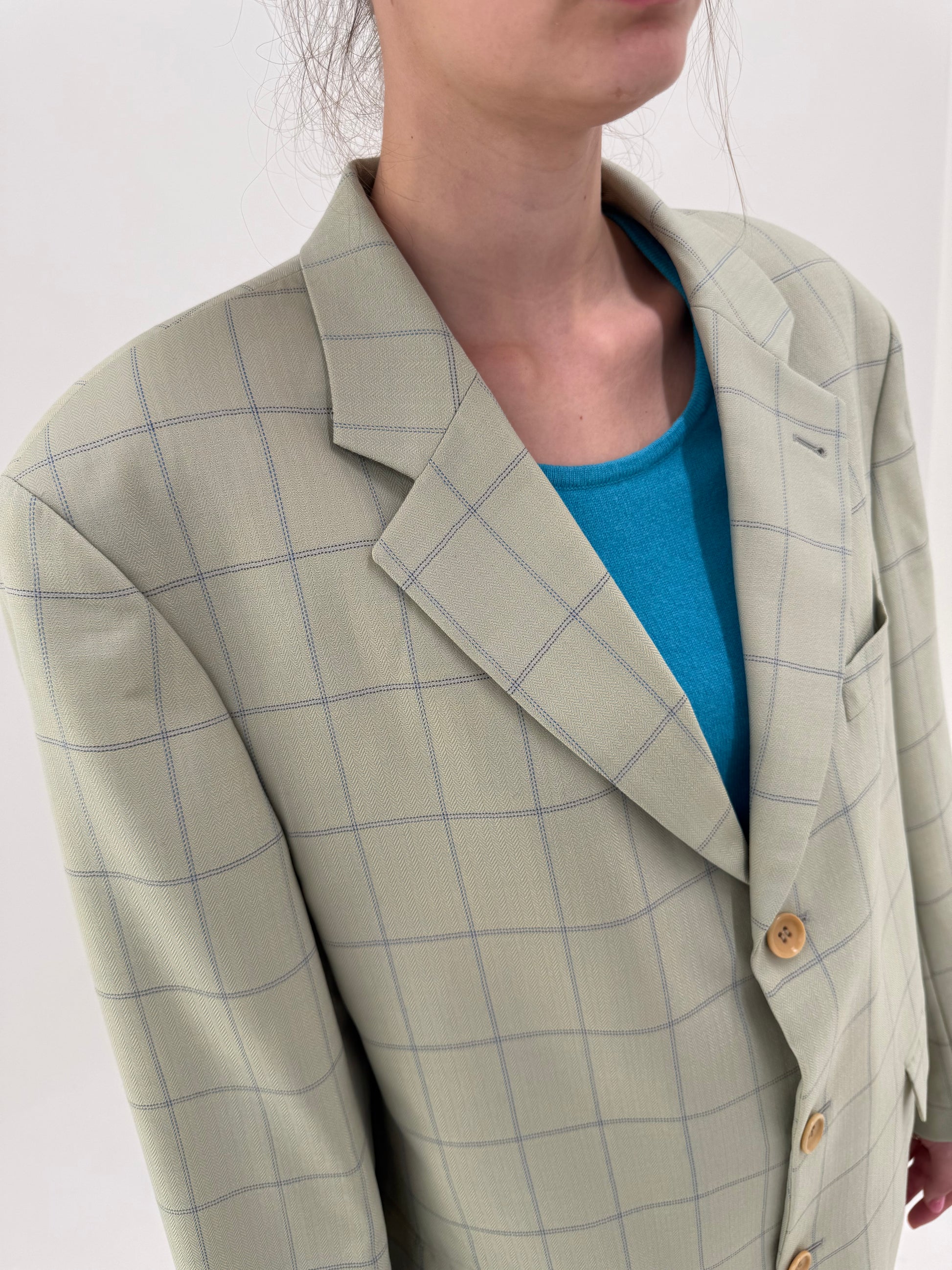 Sacou luxury Guy Laroche light green în carouri fine jeans blue