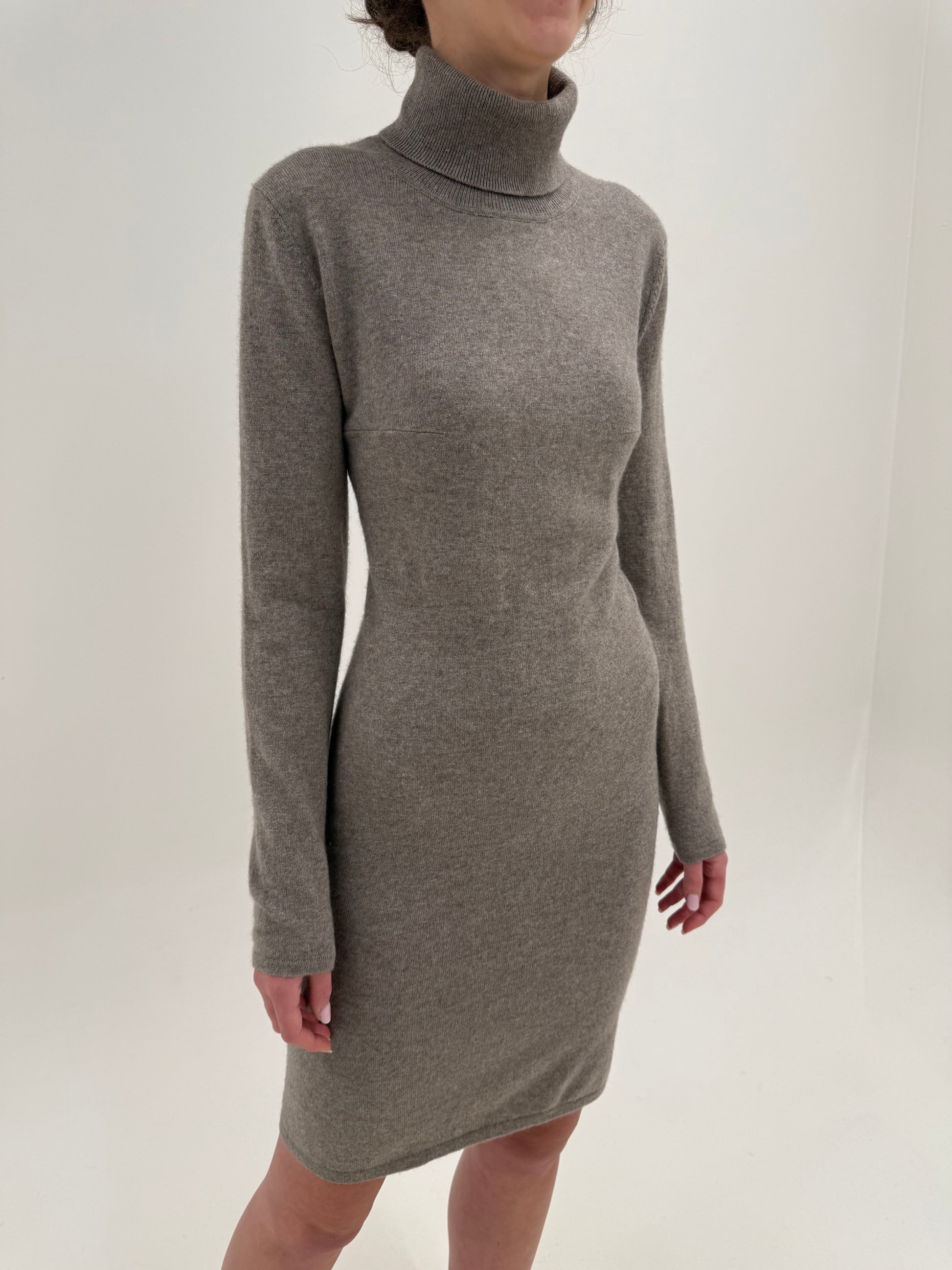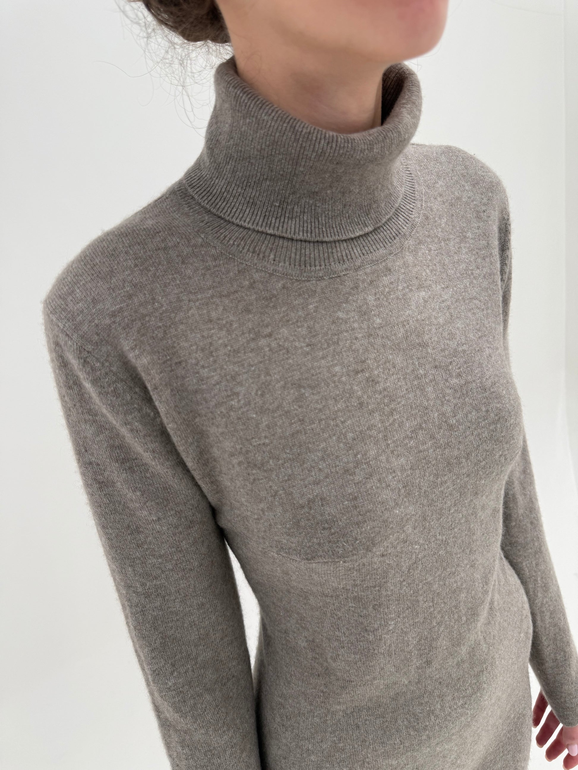 Rochie tip maleta dark nude 50% cașmir și 50% lana merino