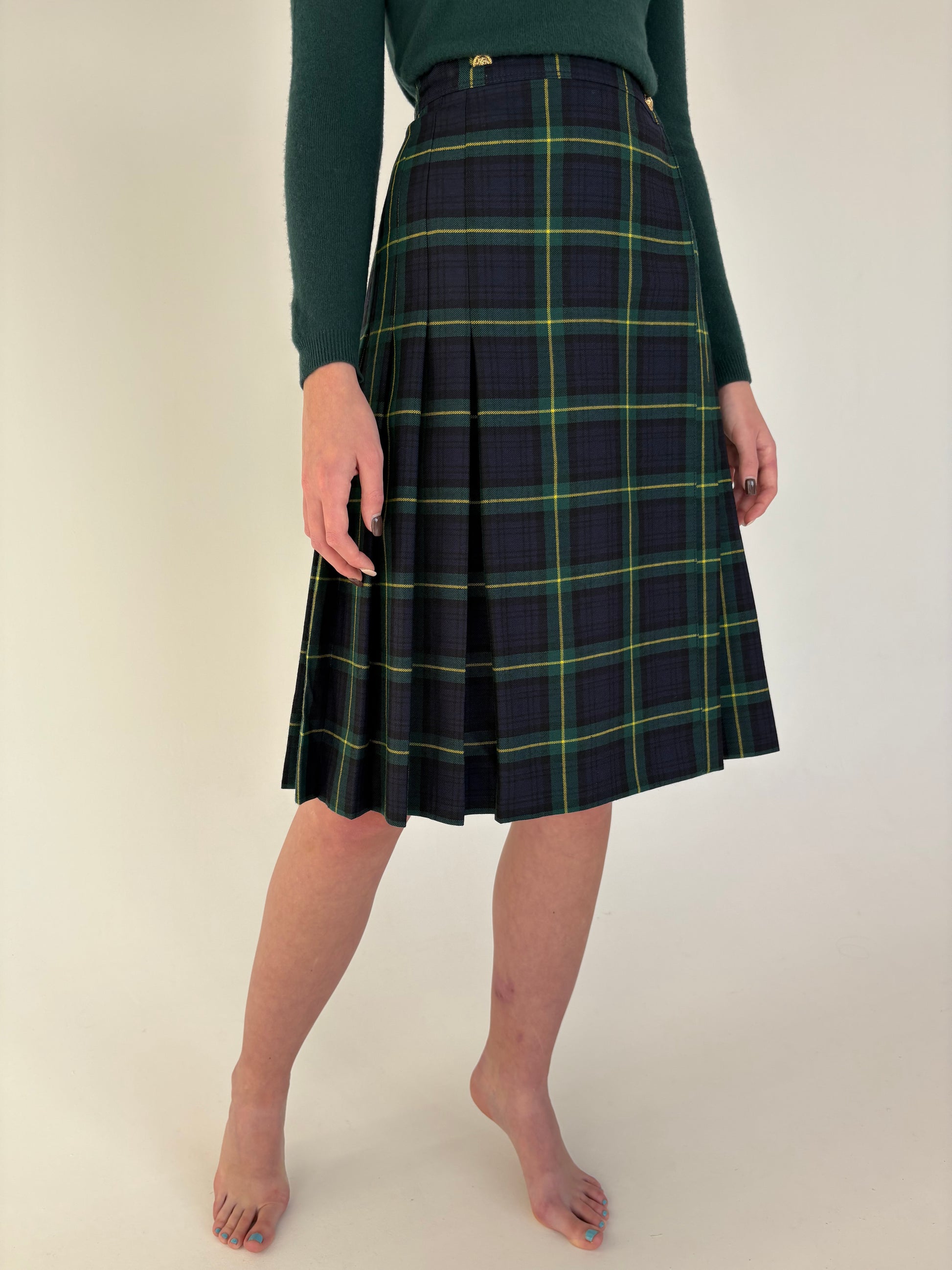 Fustă plisată din Tartan de lana pura certificată în croi parte peste parte