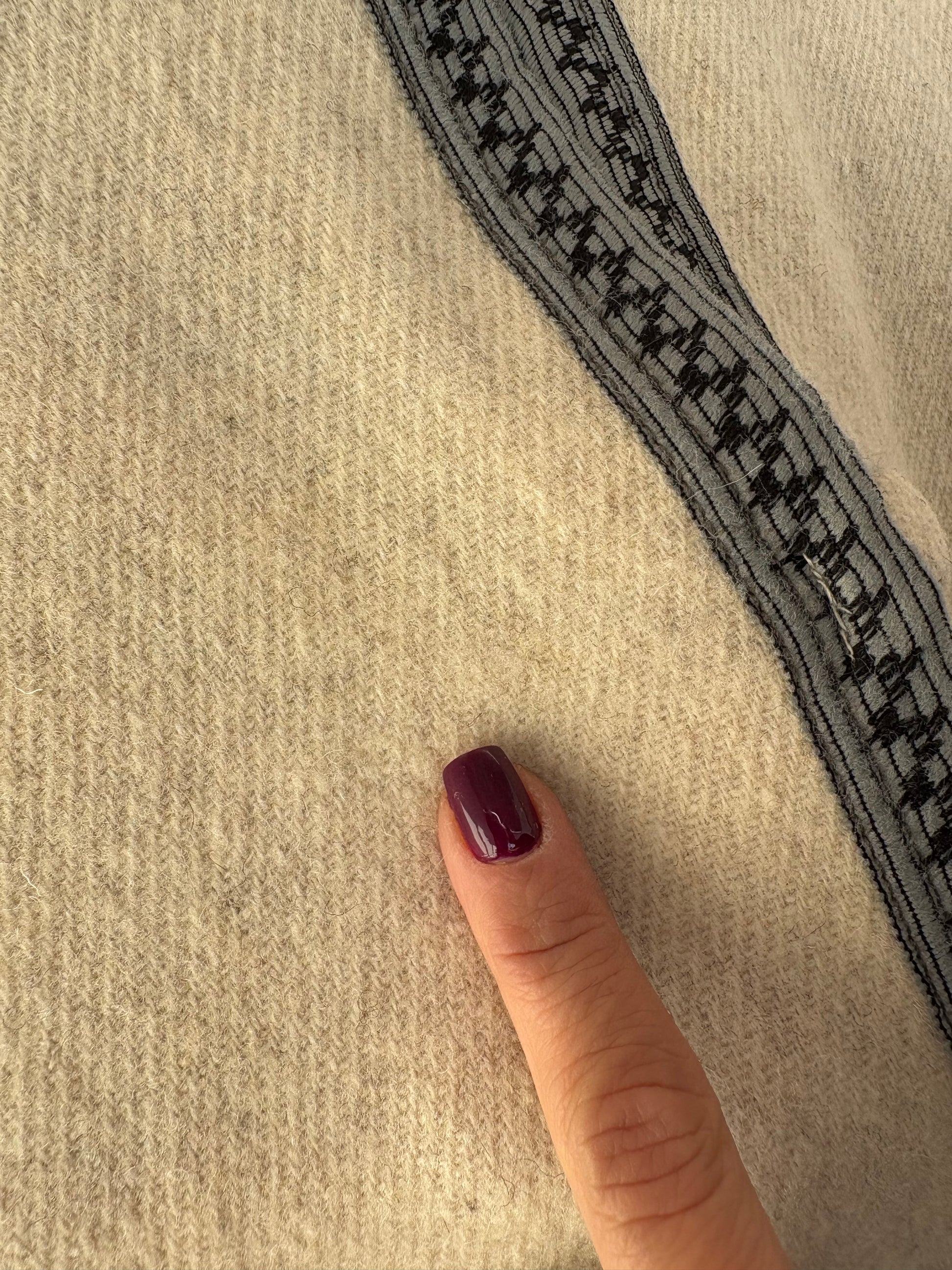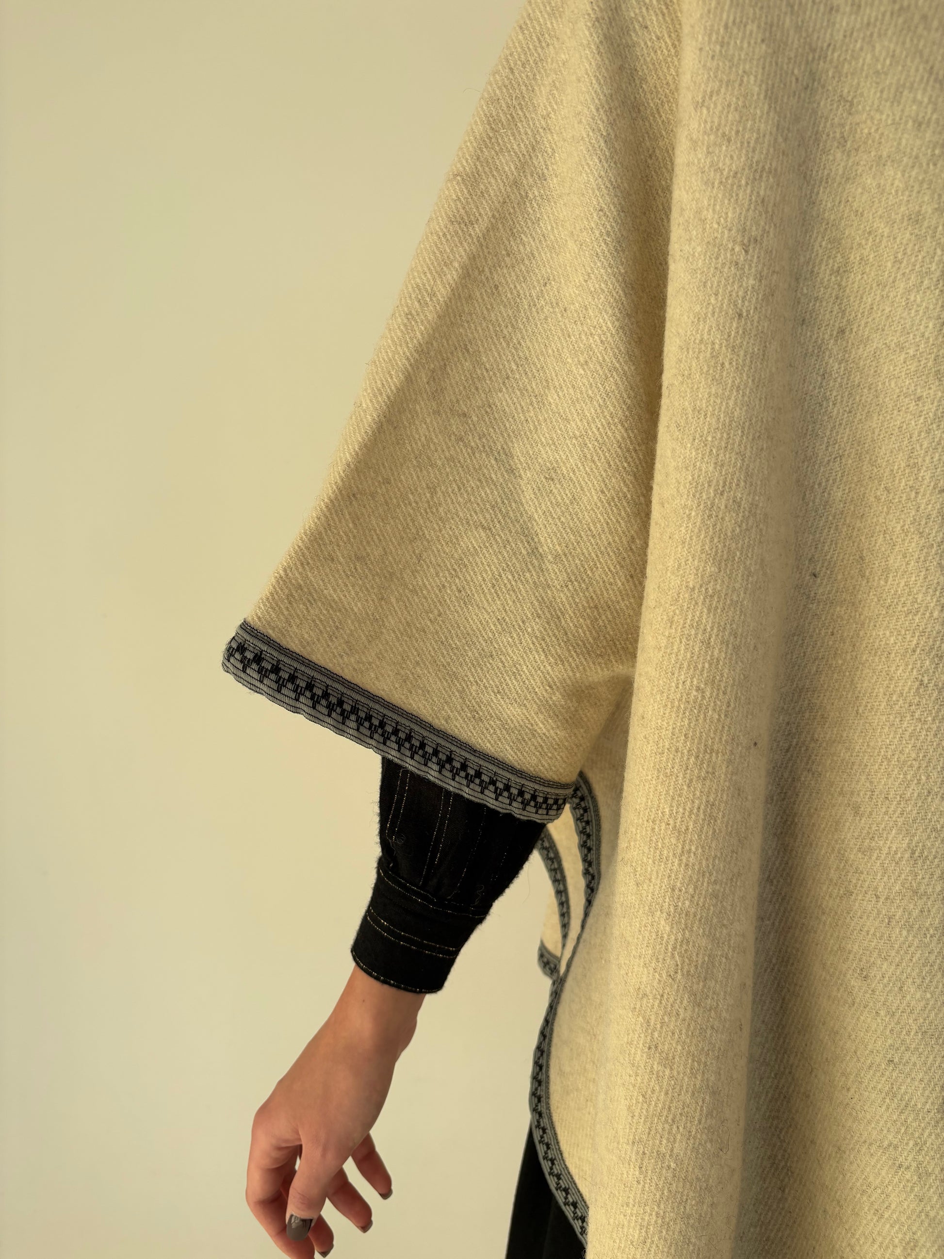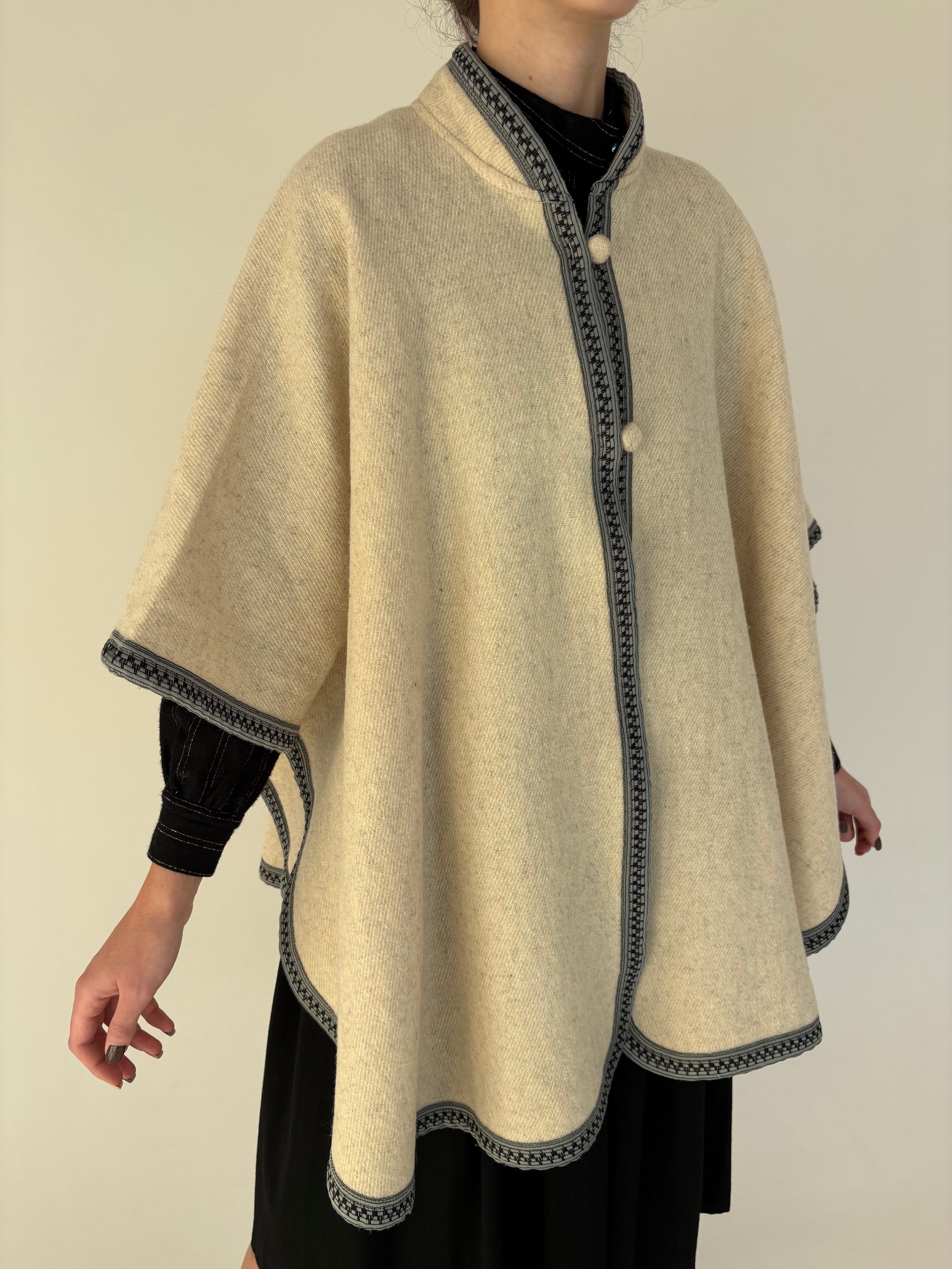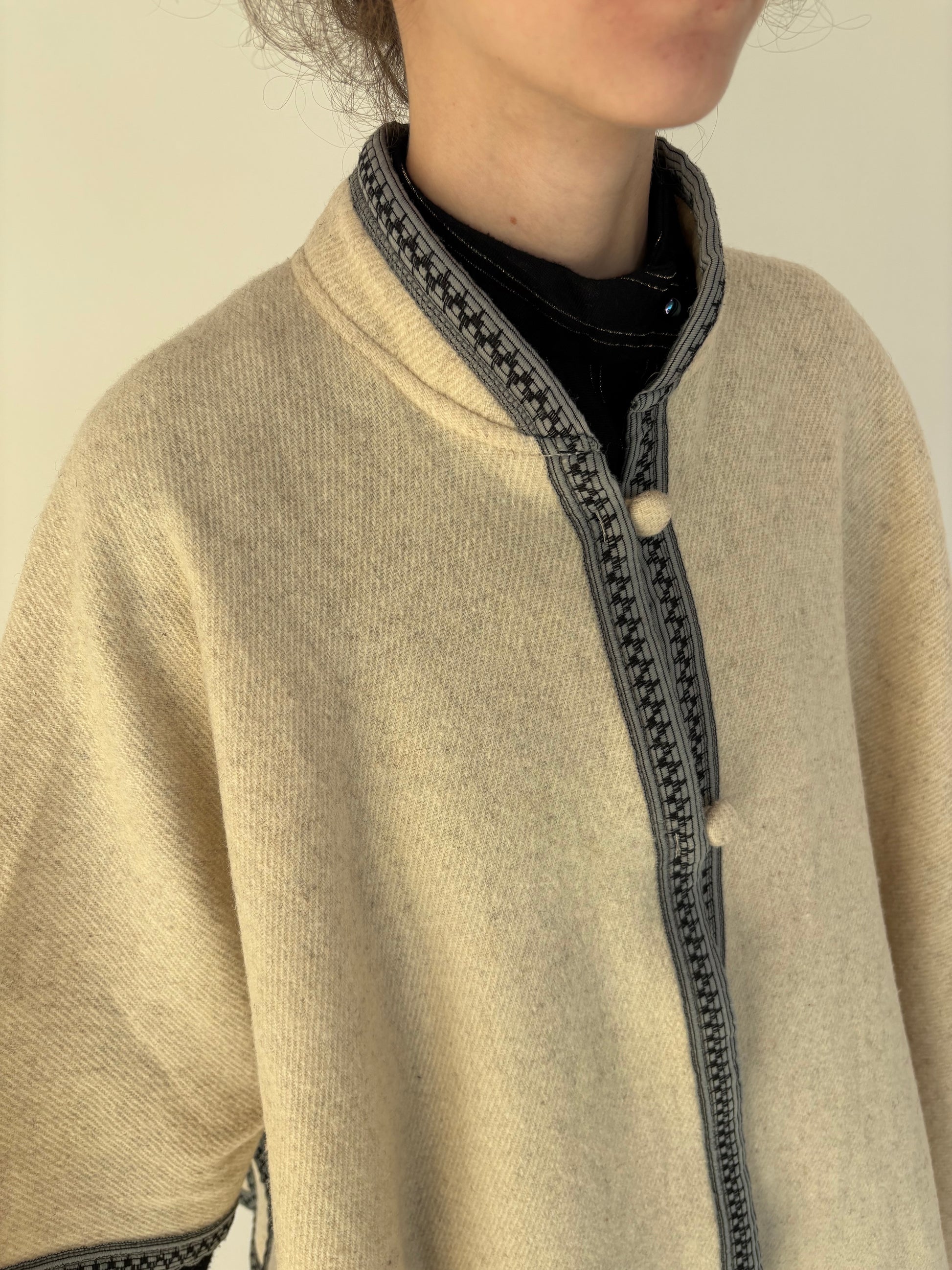 Capa vintage butter white din lana plină cu paspoal contrastant