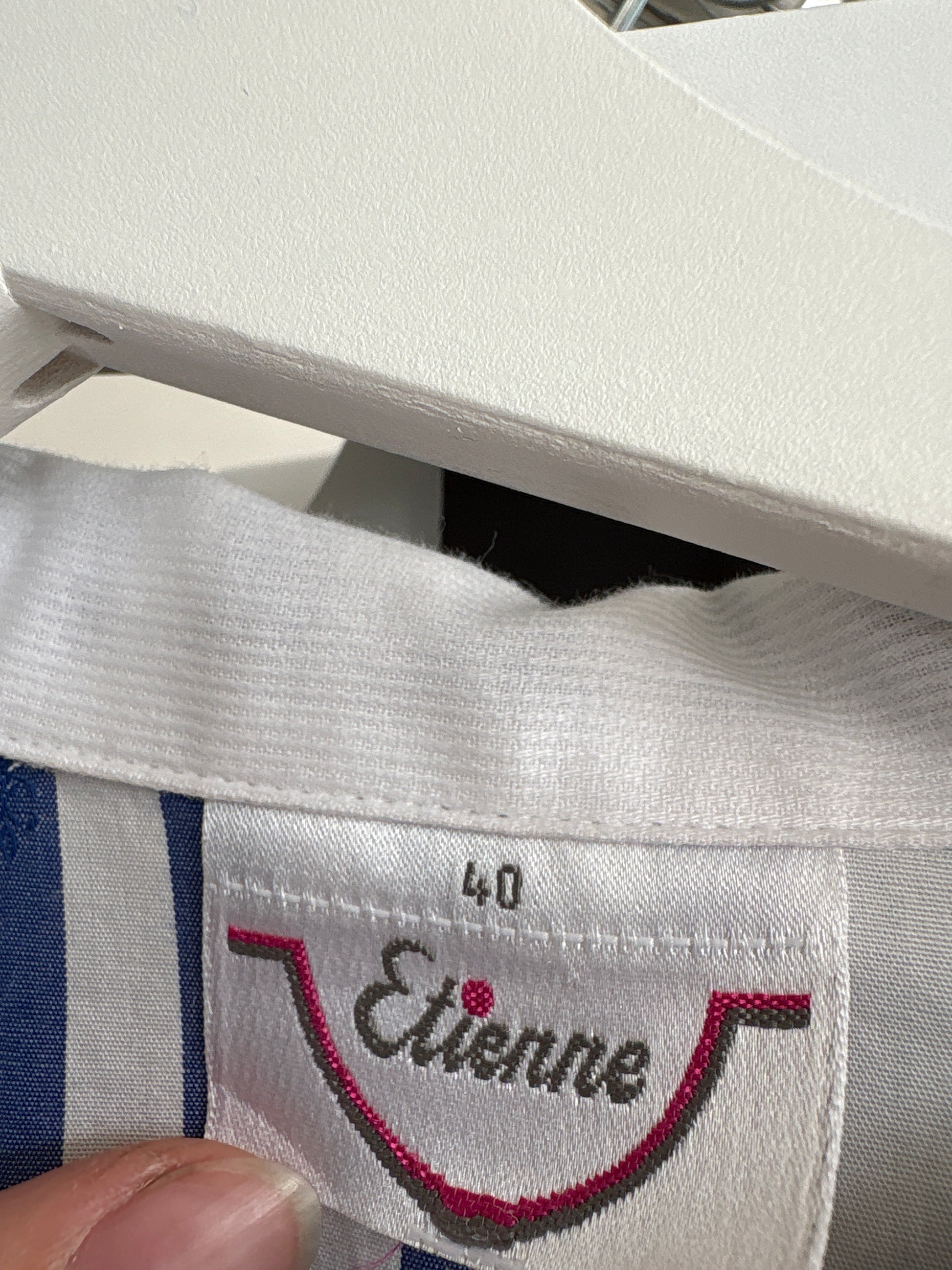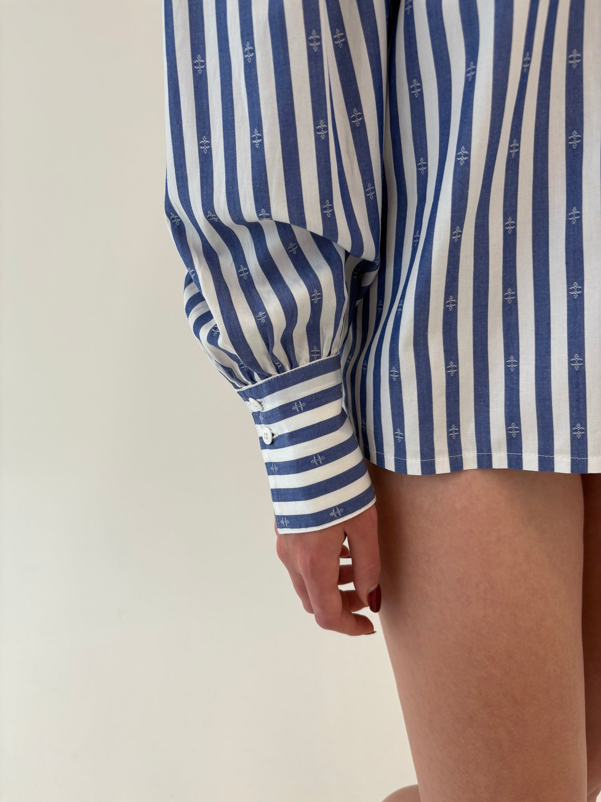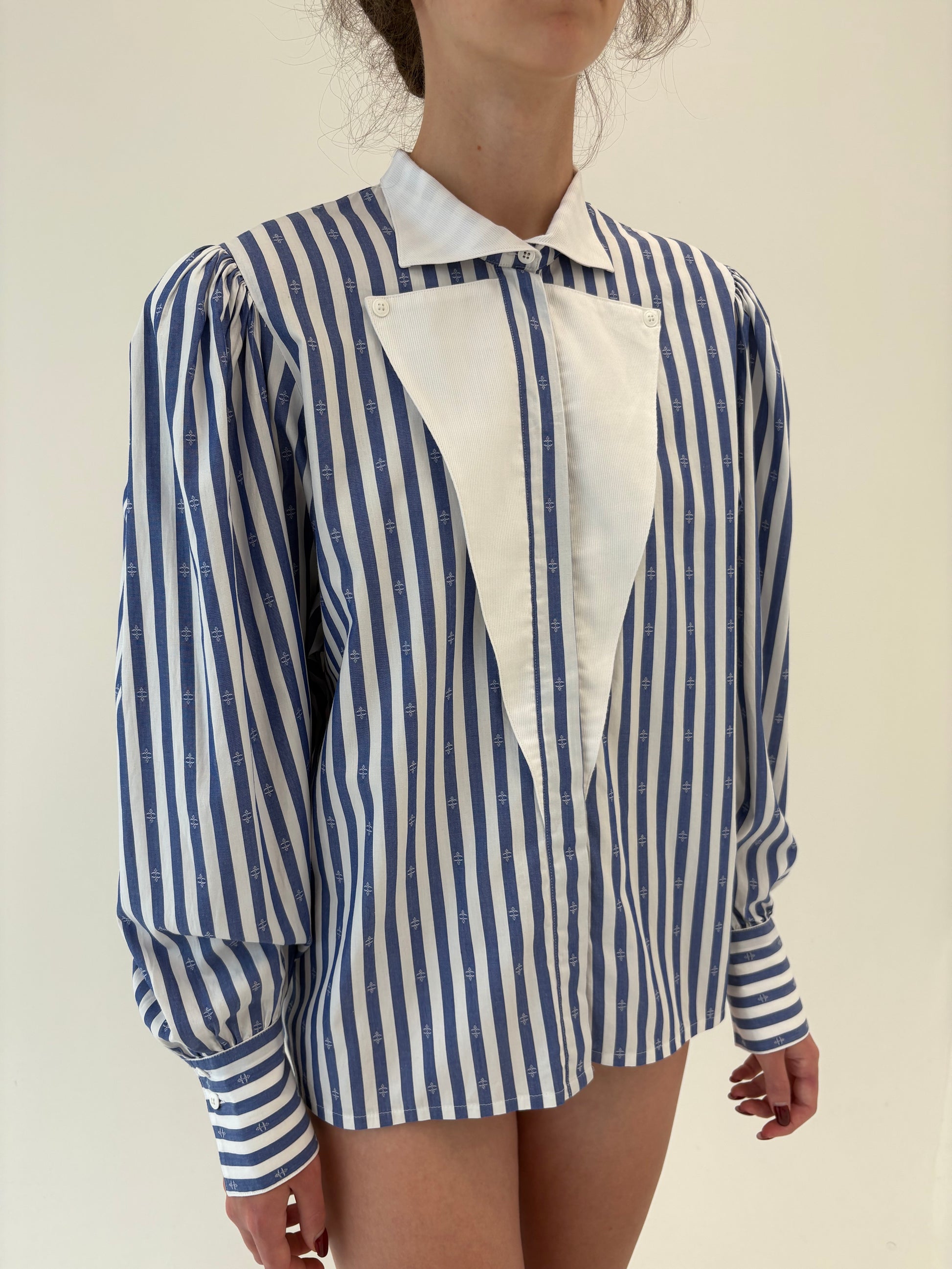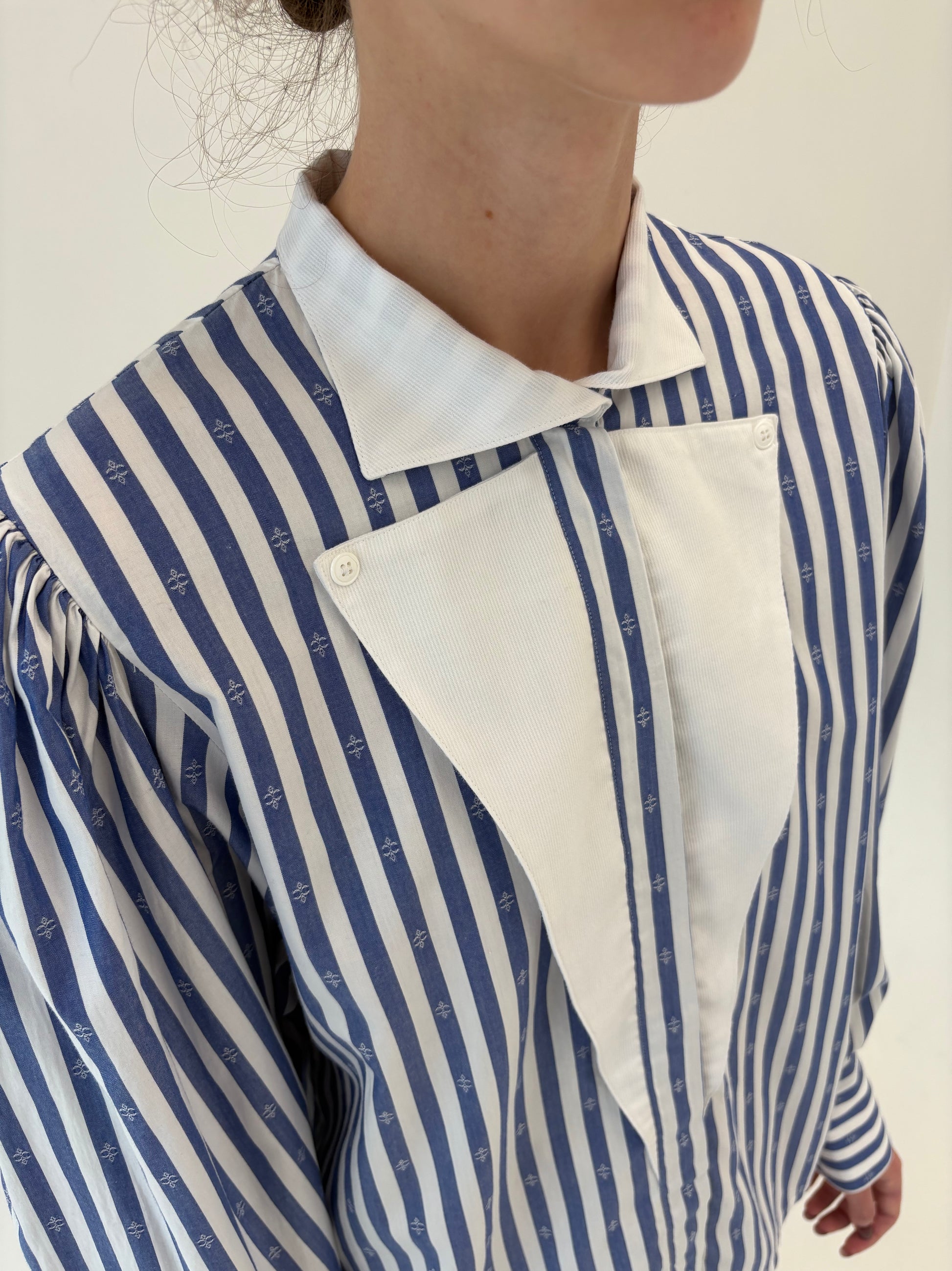 Cămașa vintage cu dungi în croi elaborat și jabou geometric