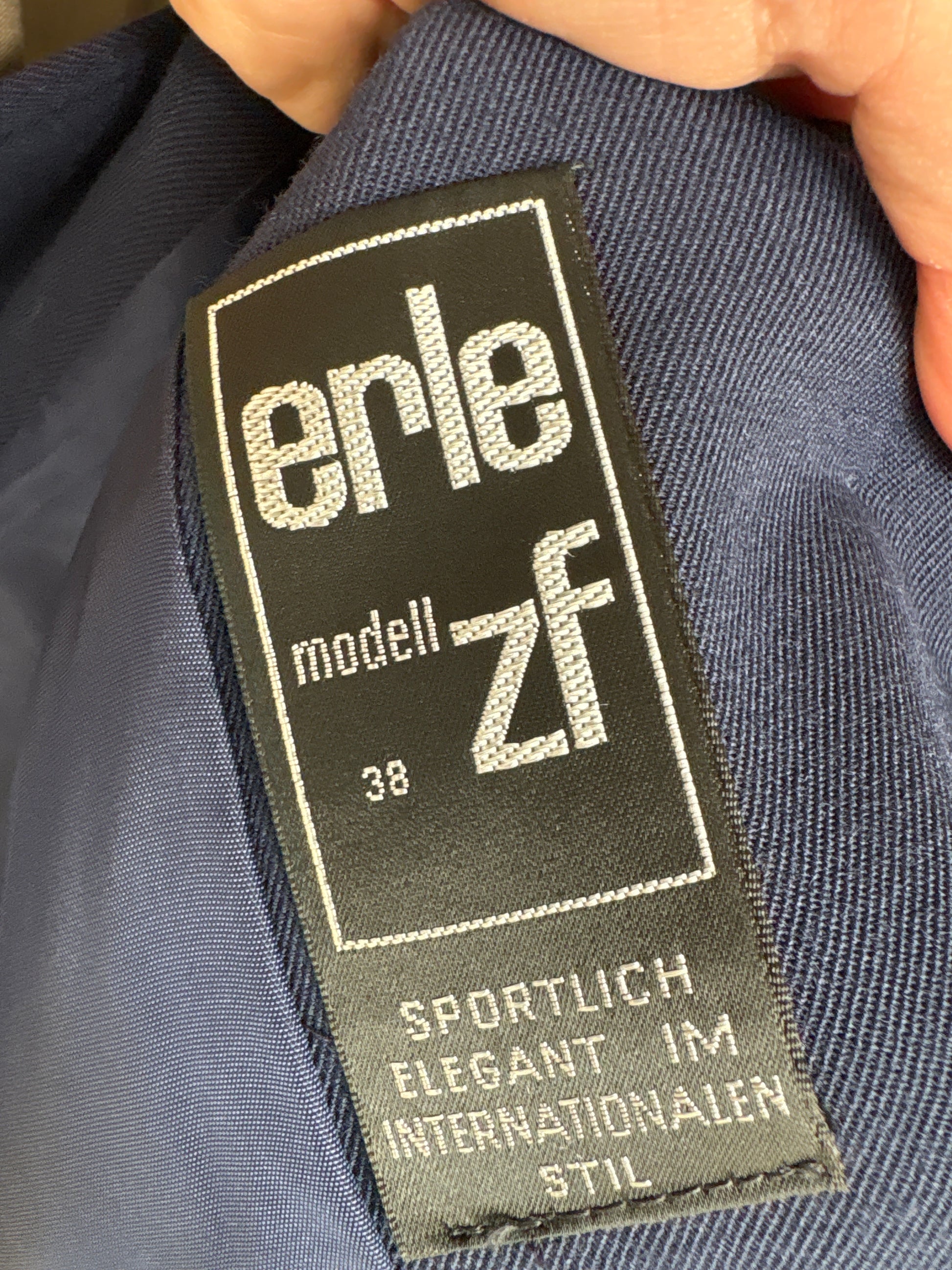 eticheta „erle modell zf” cu font mare și mențiunea „Sportlich Elegant im internationalen Stil” este tipică producțiilor vest-germane din perioada postbelică, când se punea accent pe eleganță modernă-arw în croi retro modern minimalist