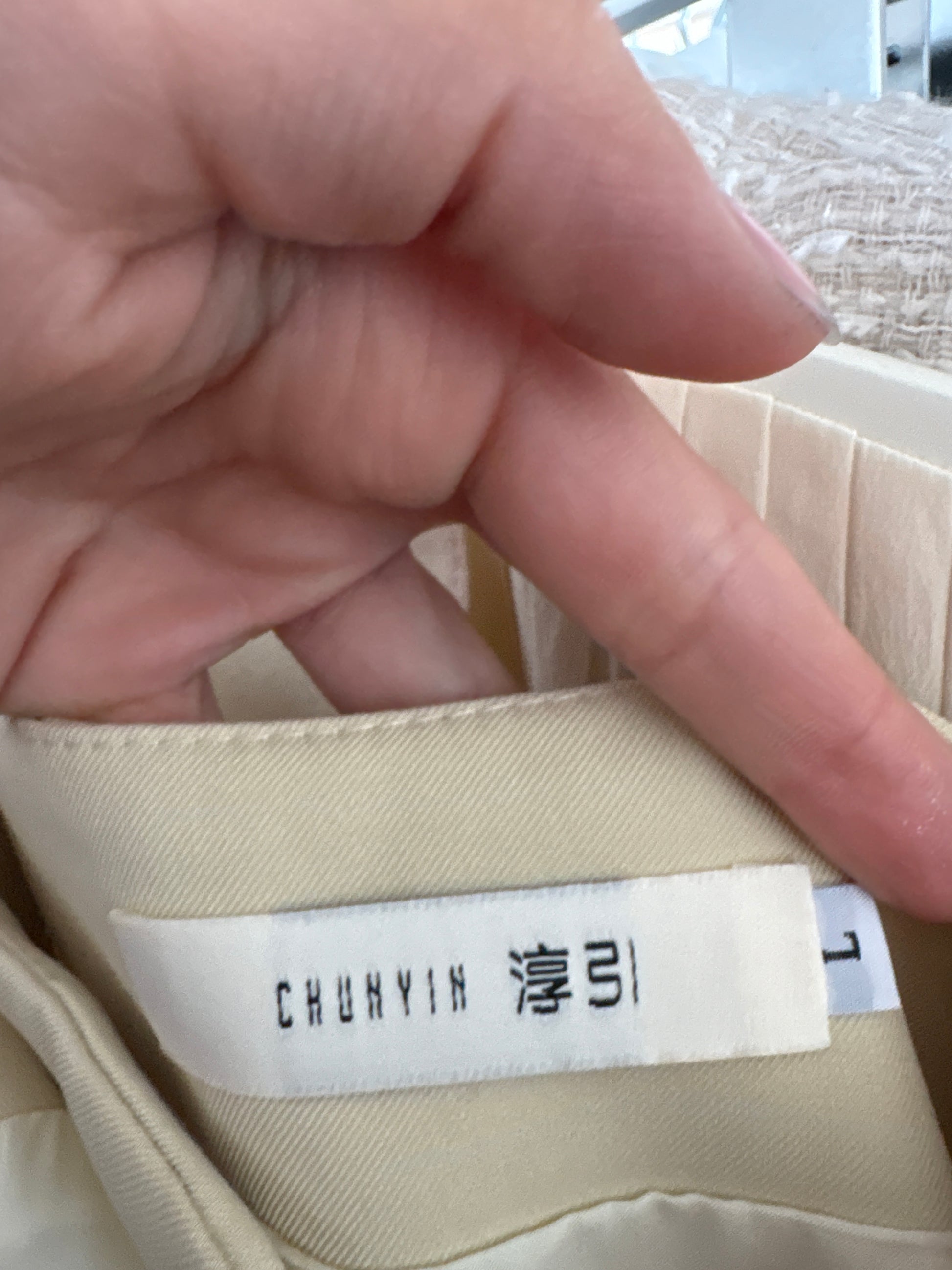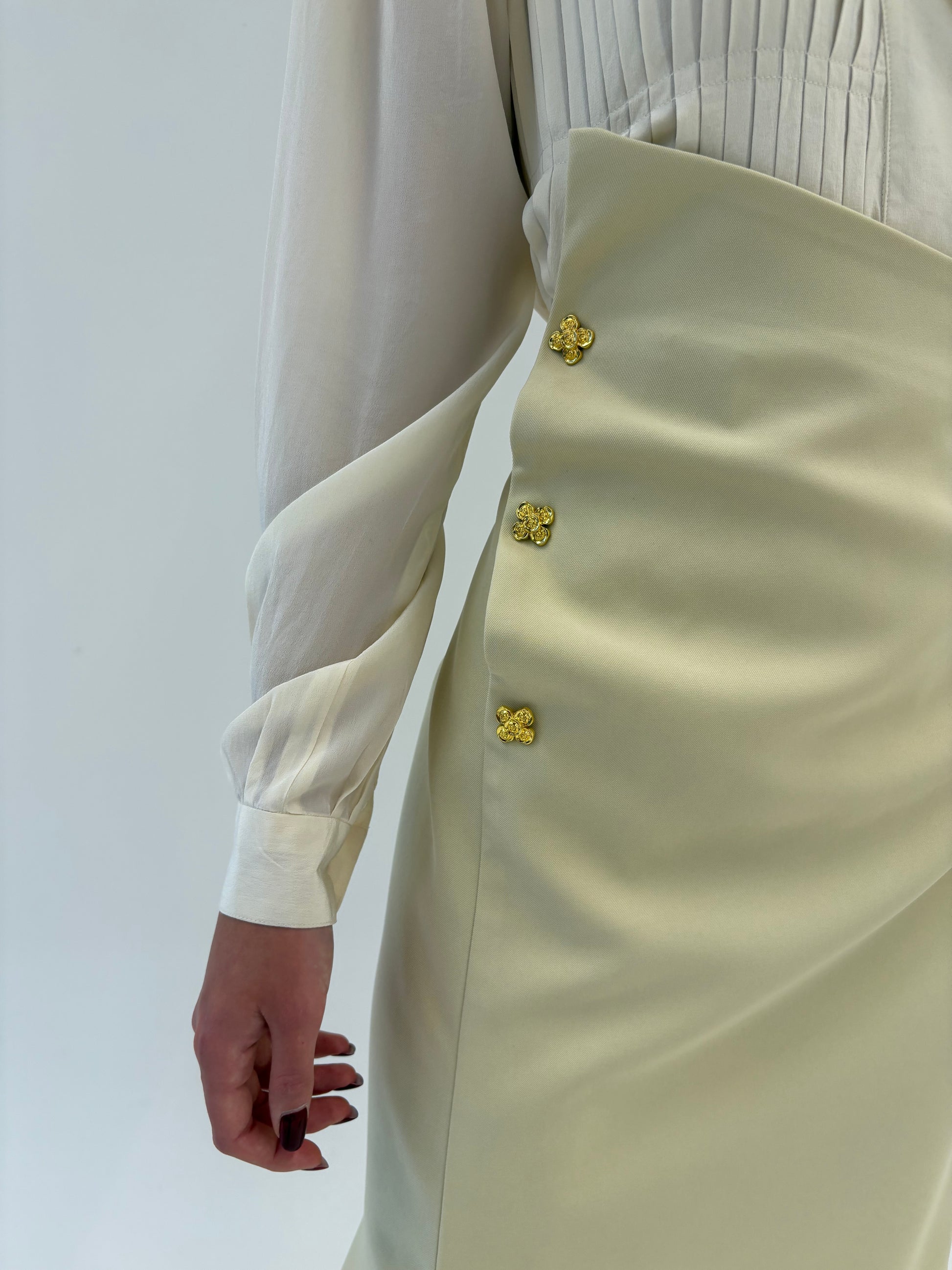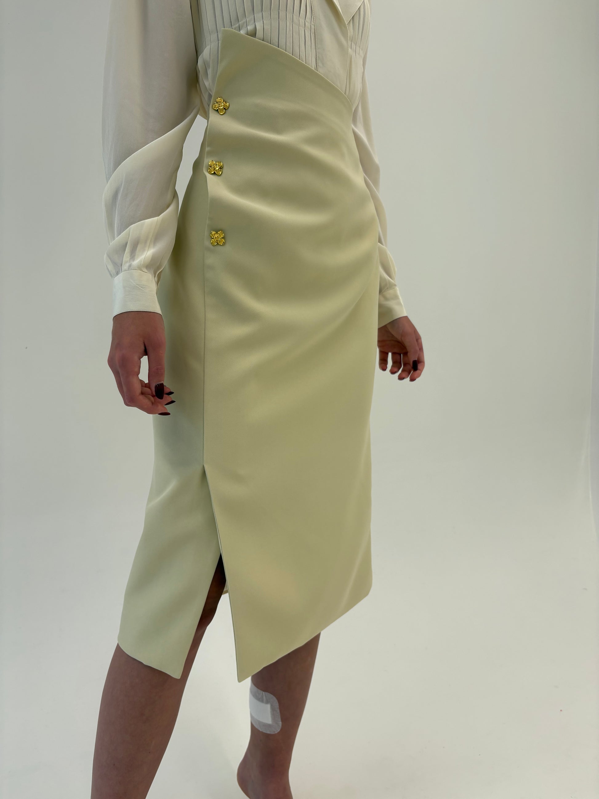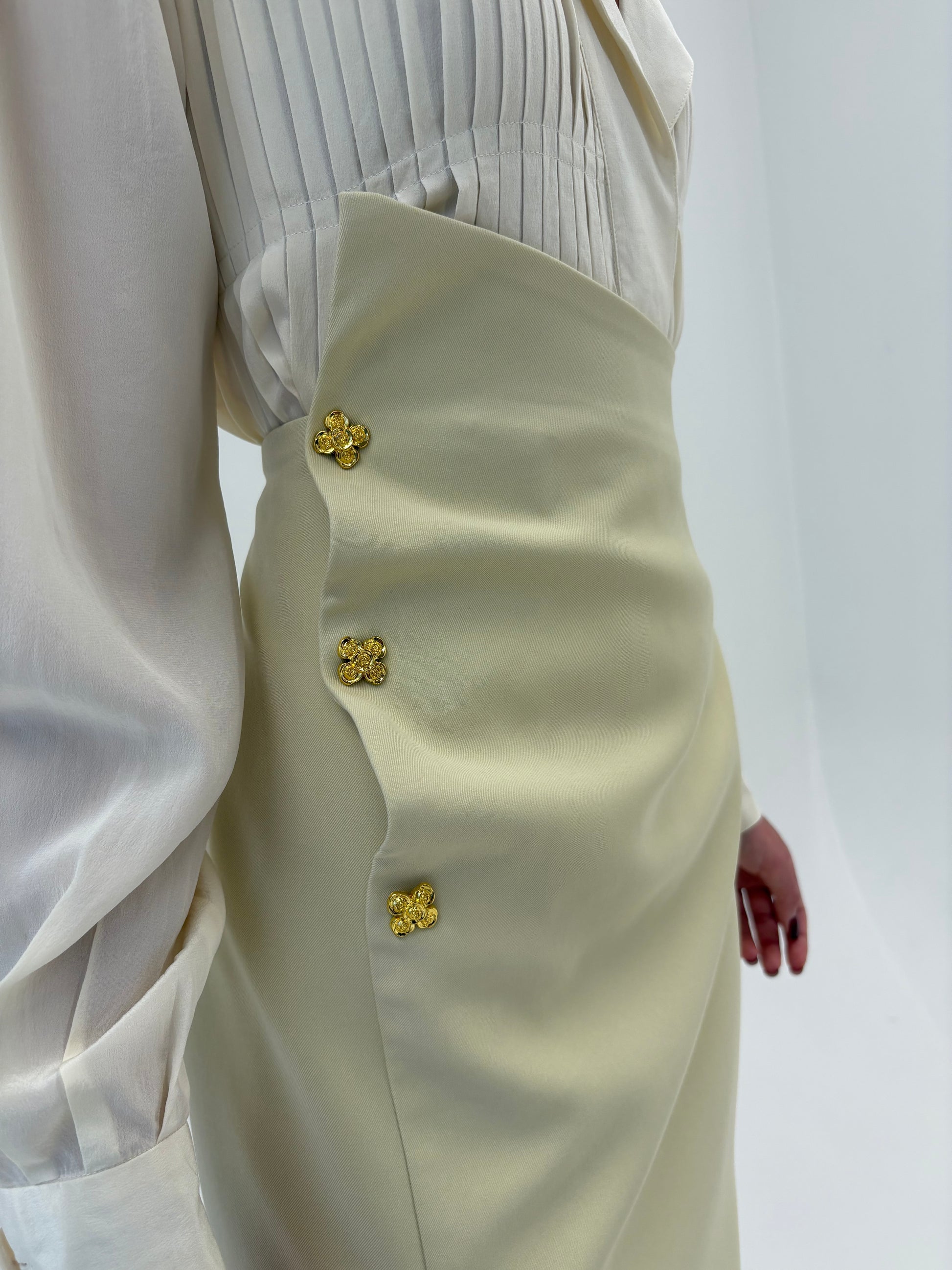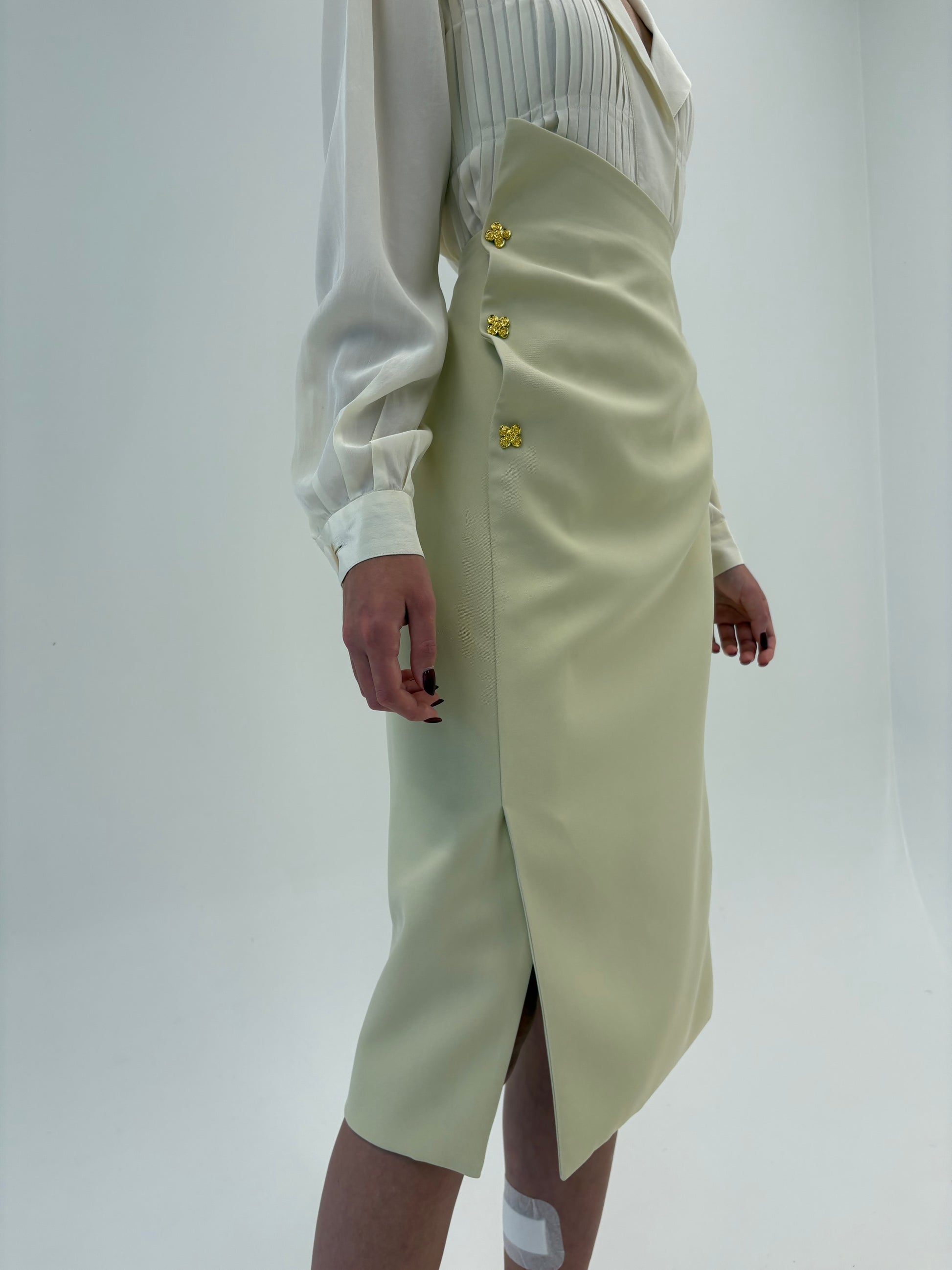 Fustă spectaculoasă light nude cu talie ultra înaltă și drapaje