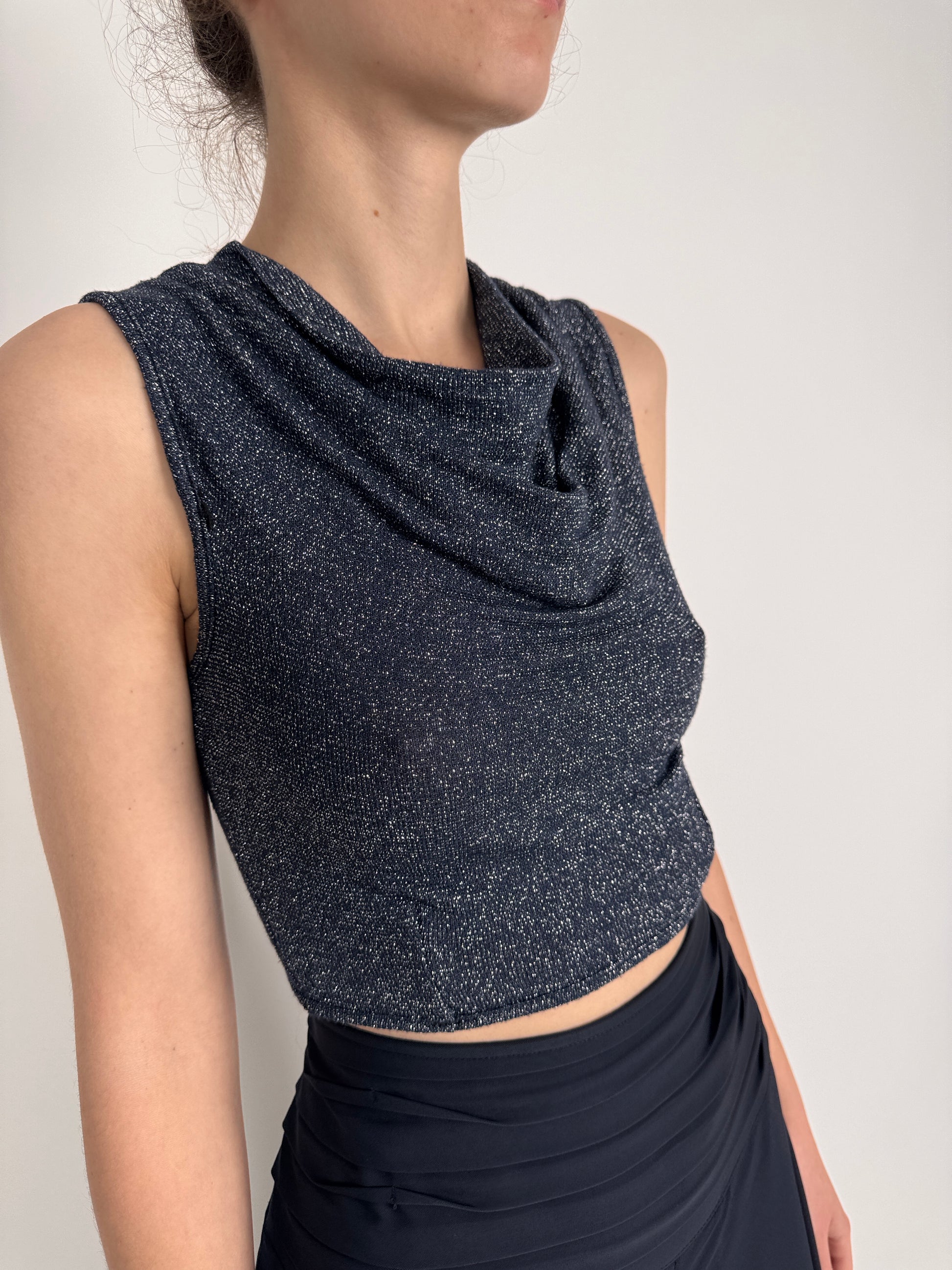 Navy blue cu inserție fină de lurex argintiu