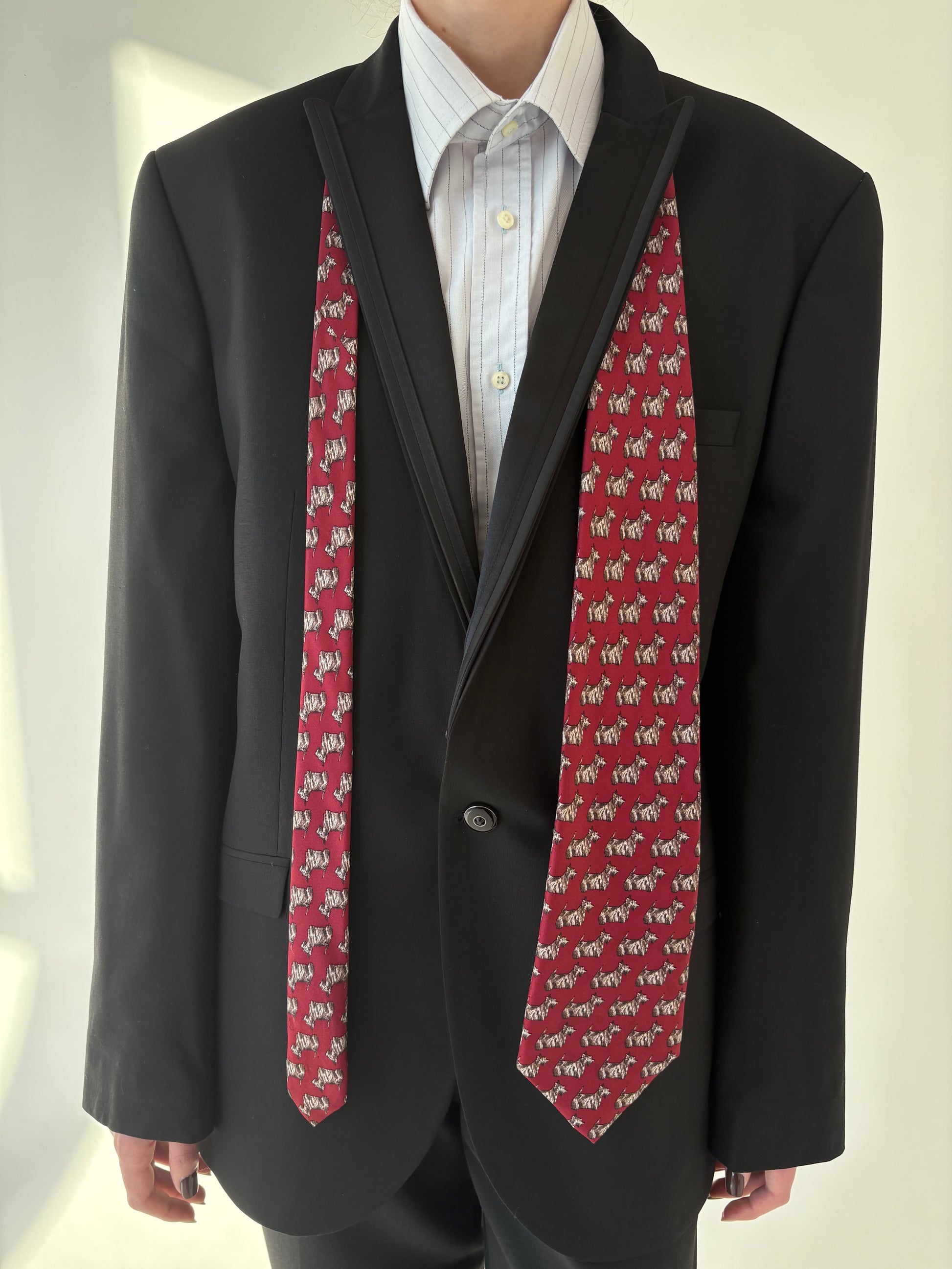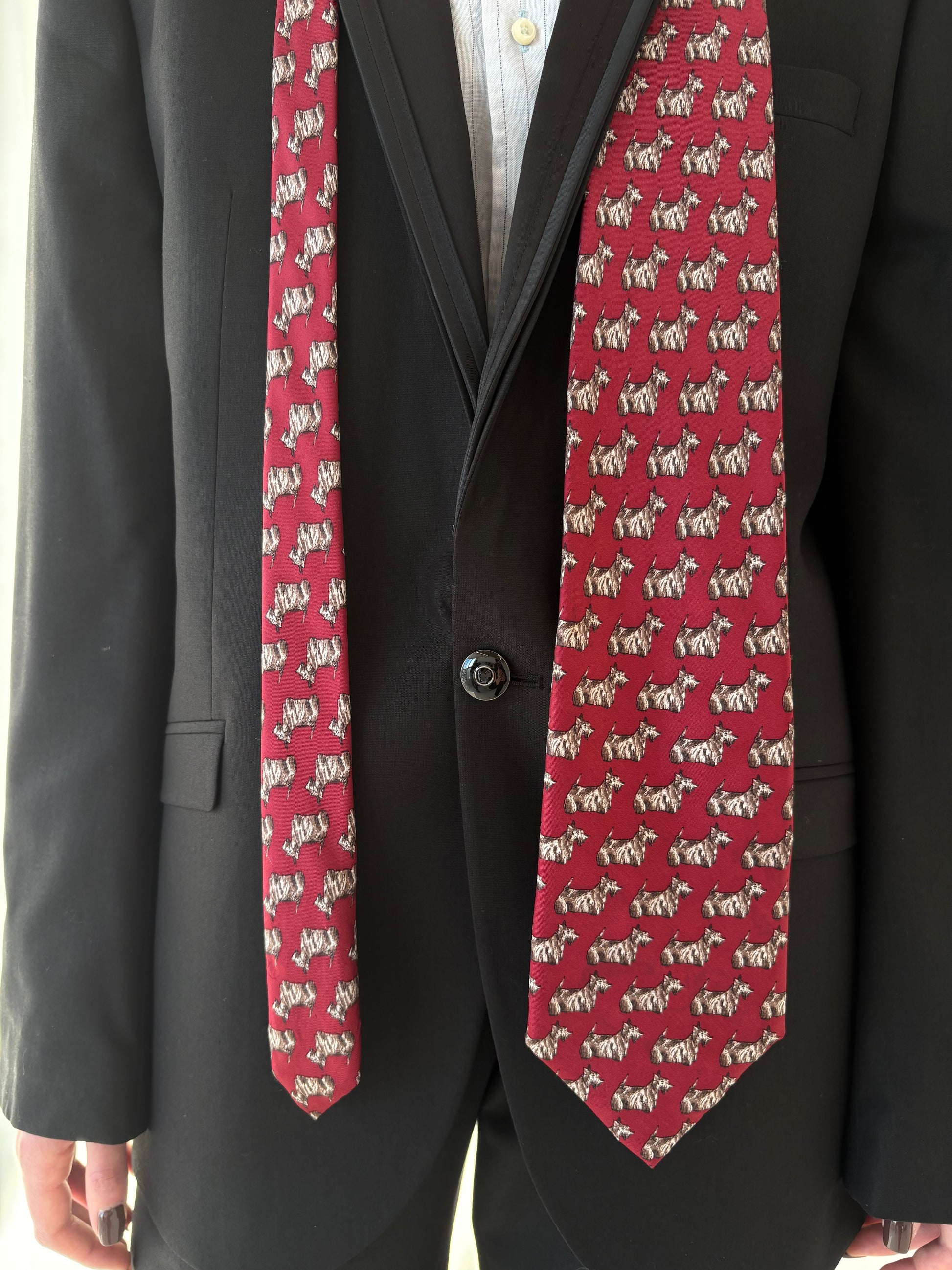 Cravata burgundy cu print cu cățeluși din mătase naturală