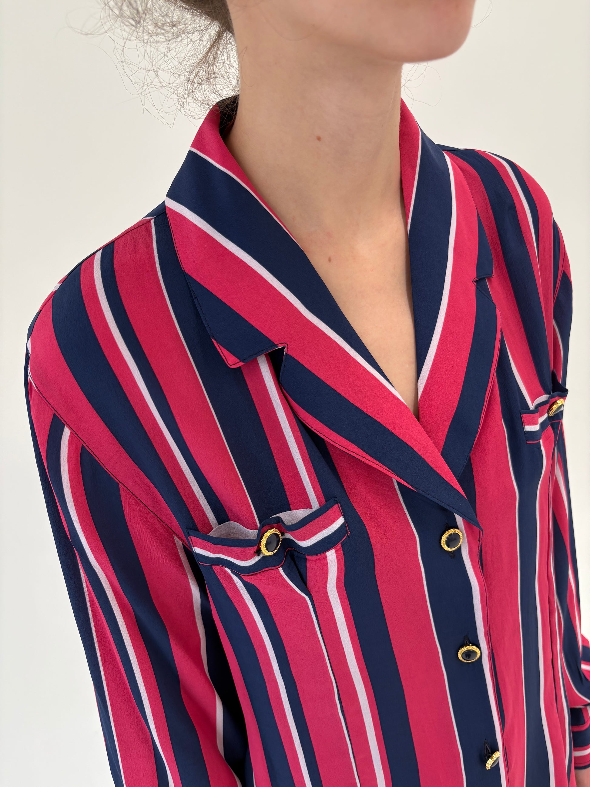 Cămașa italiană cu nasturi bijuterie din mix de mătase naturală