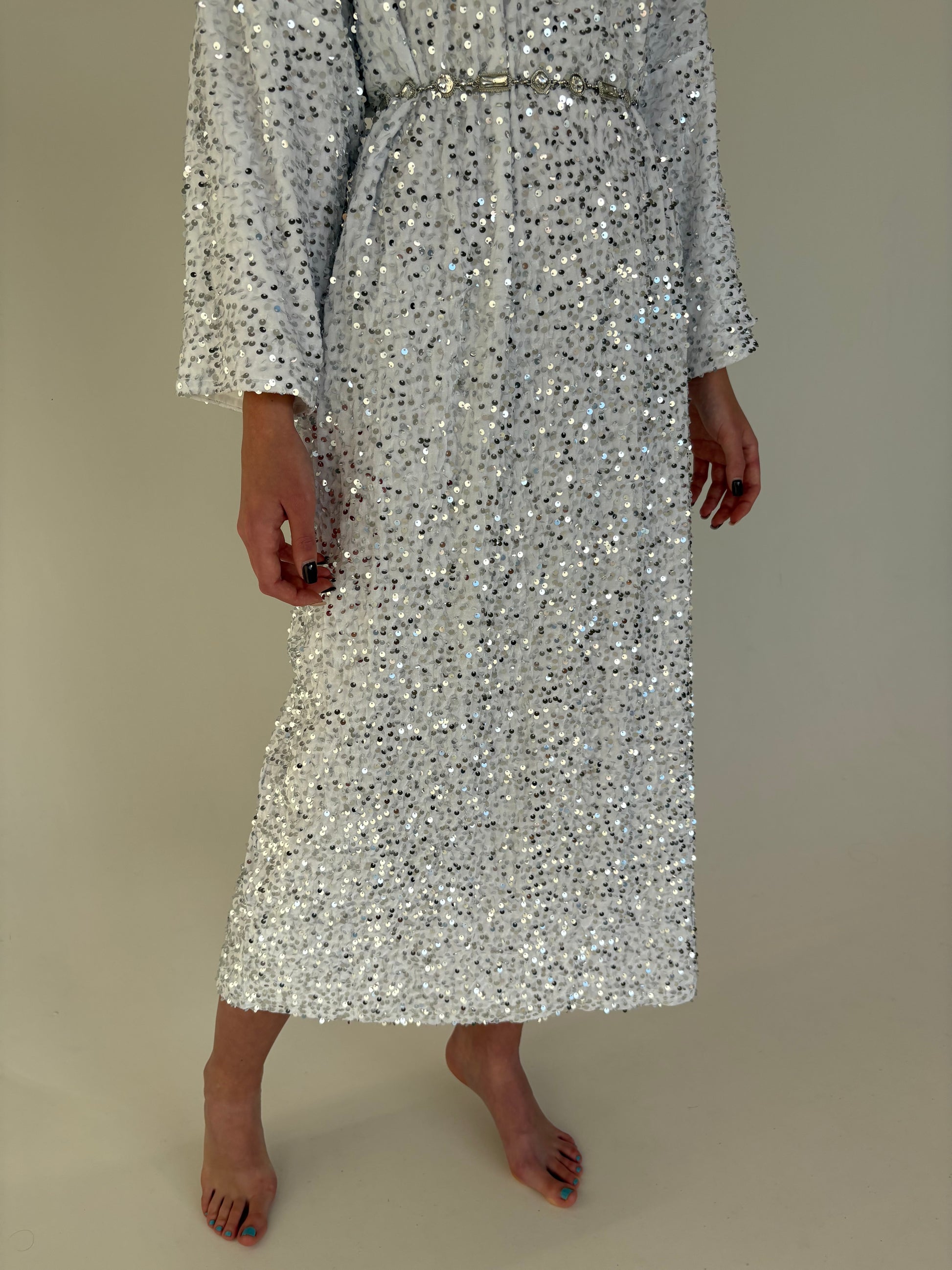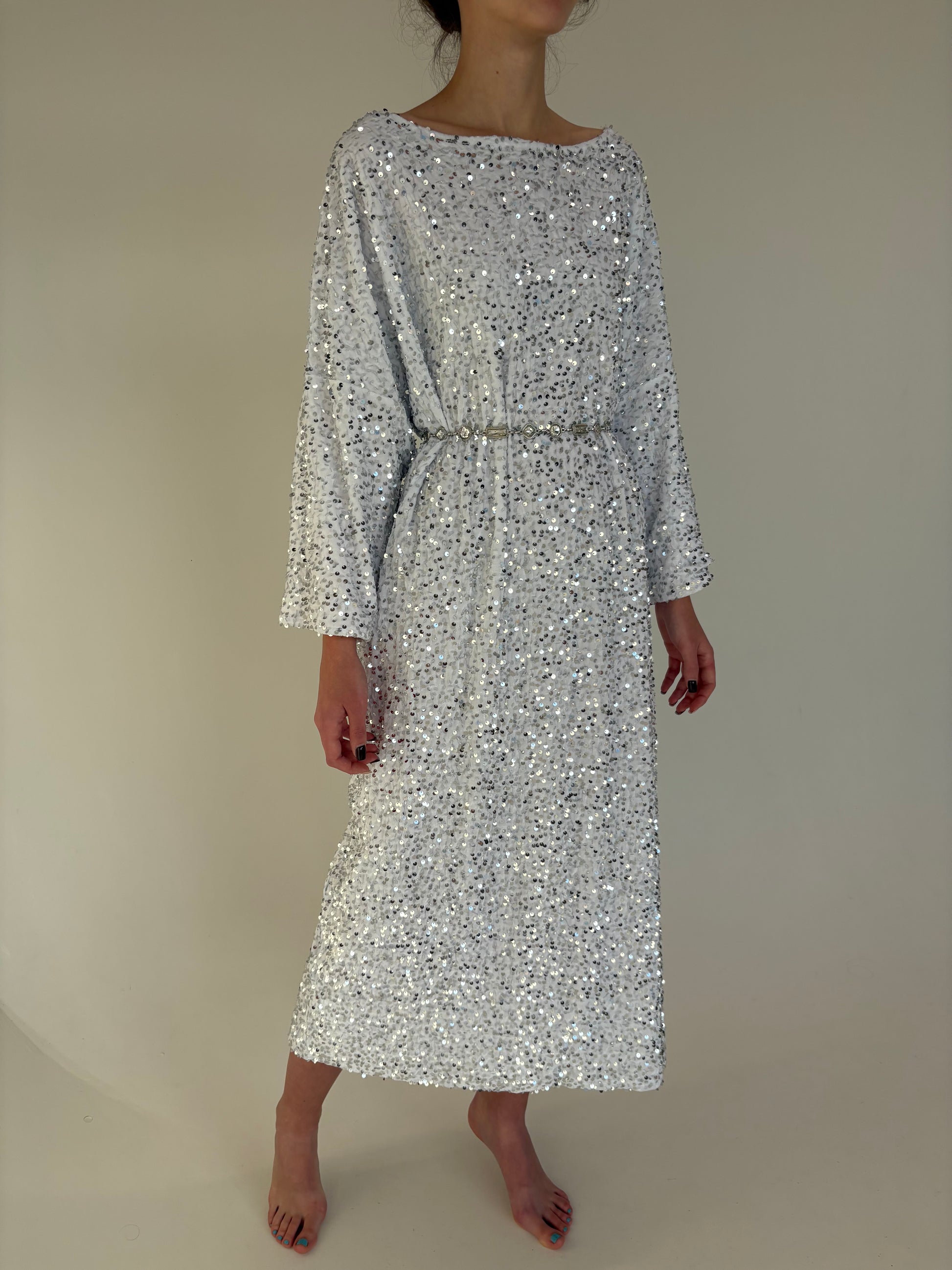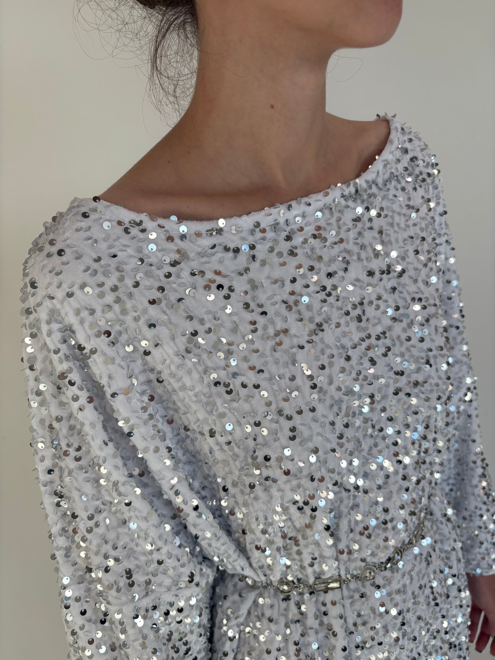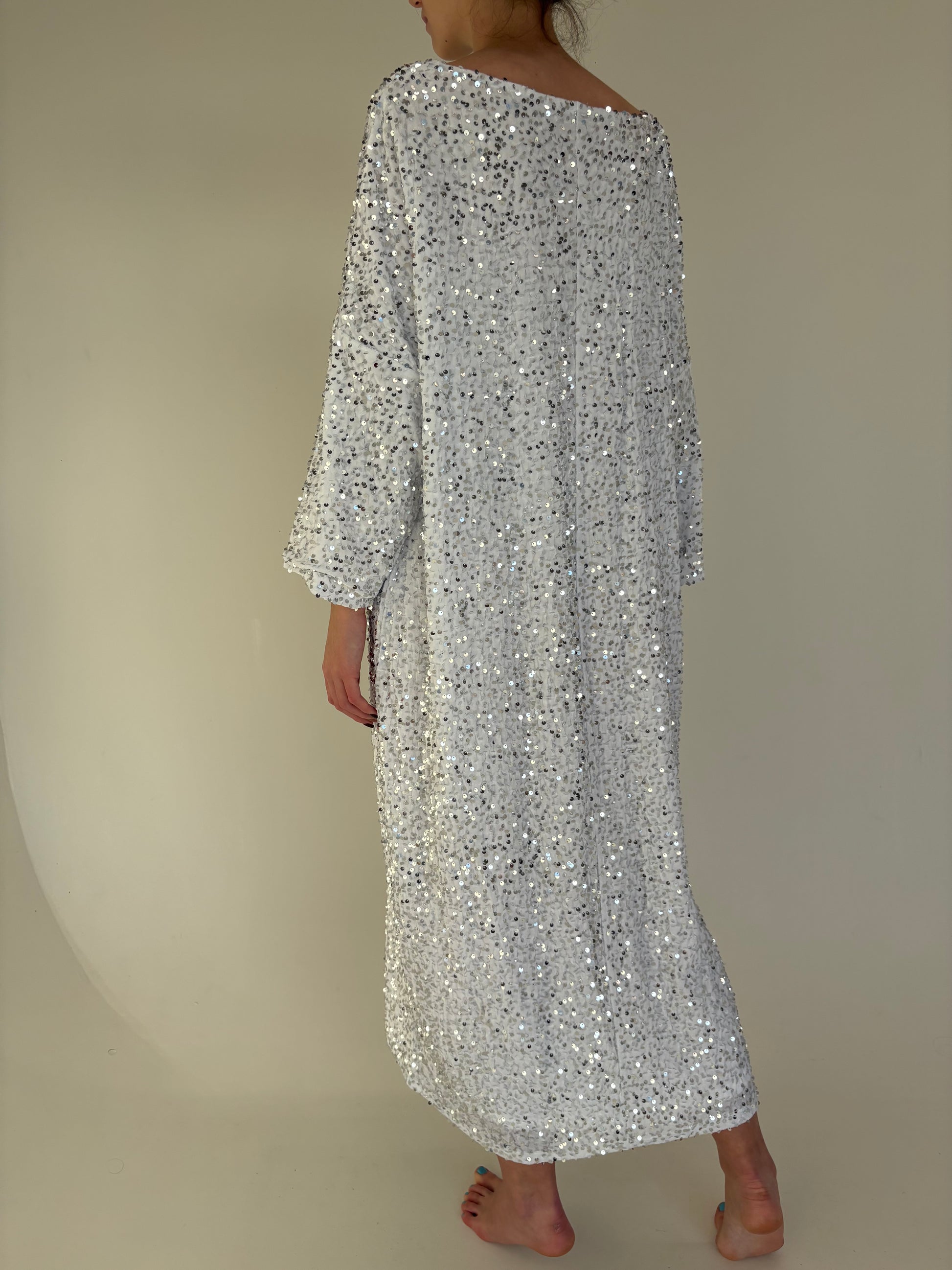 Rochie maxi din catifea extrem de moale cu aplicații din paiete argintii