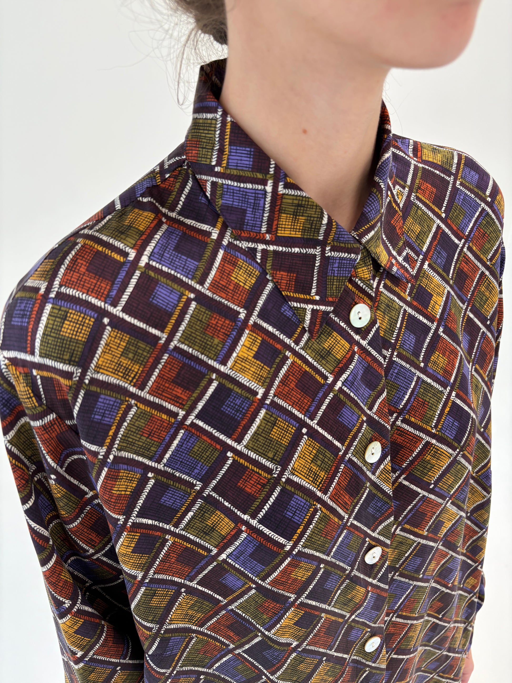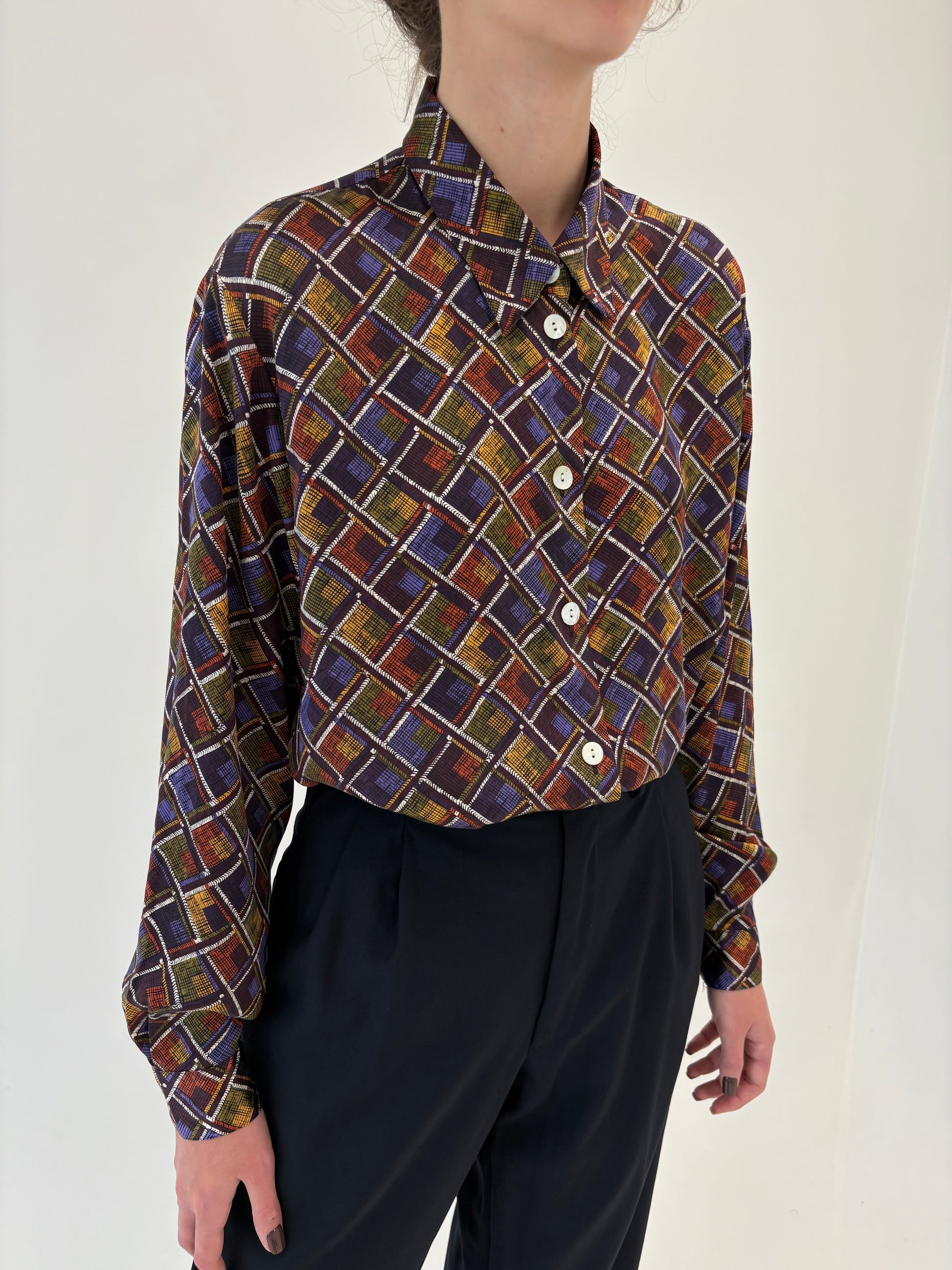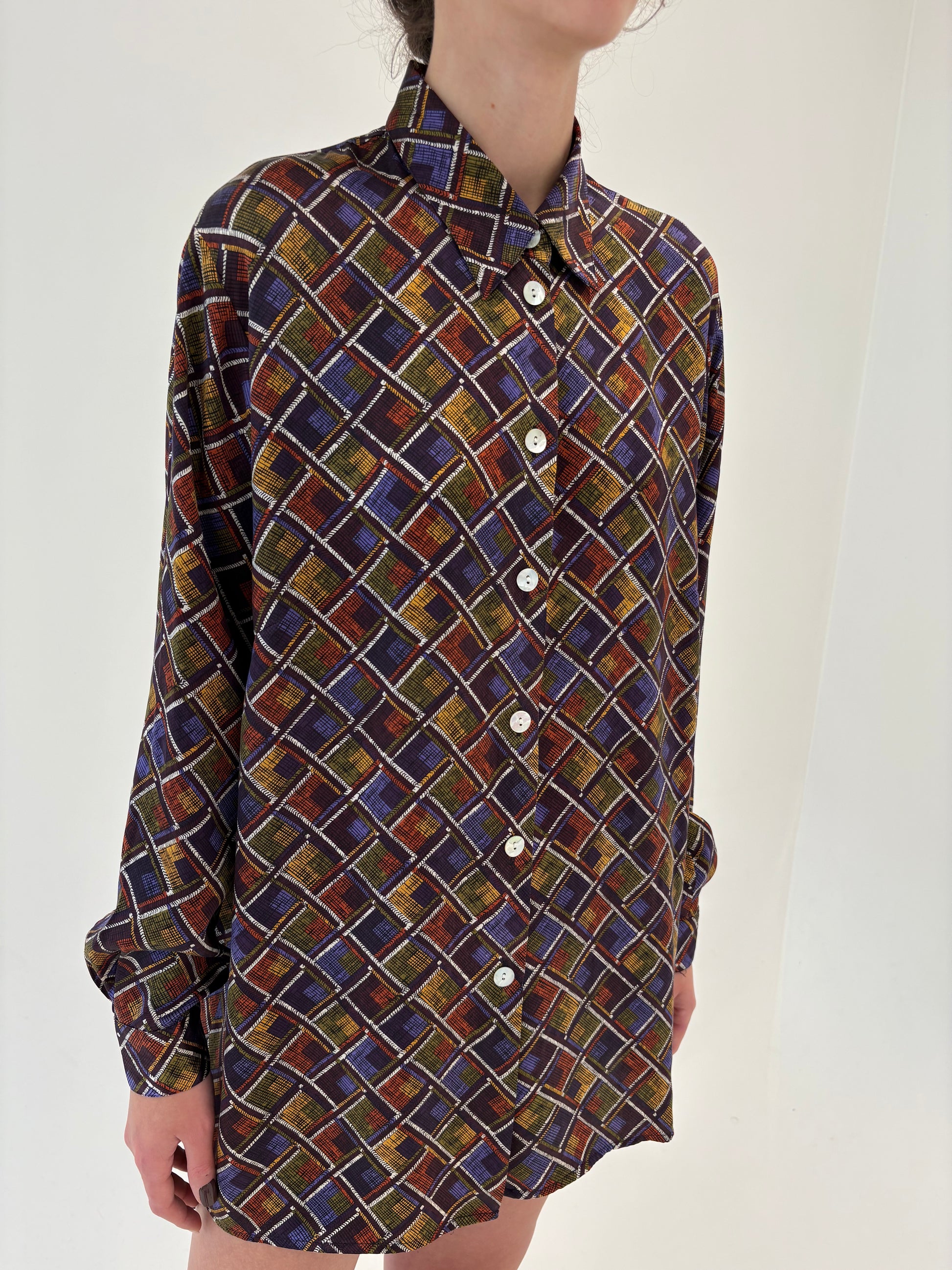 Cămașa cu print din mătase naturală în combinație superbă de culori