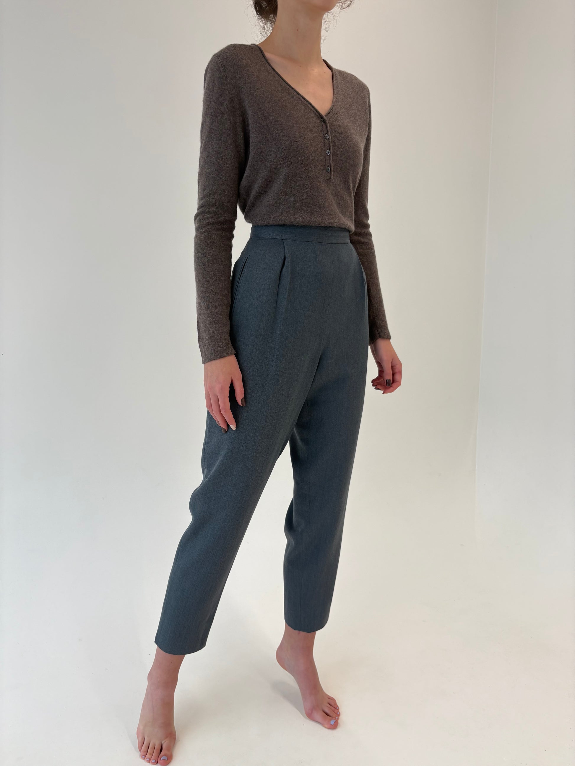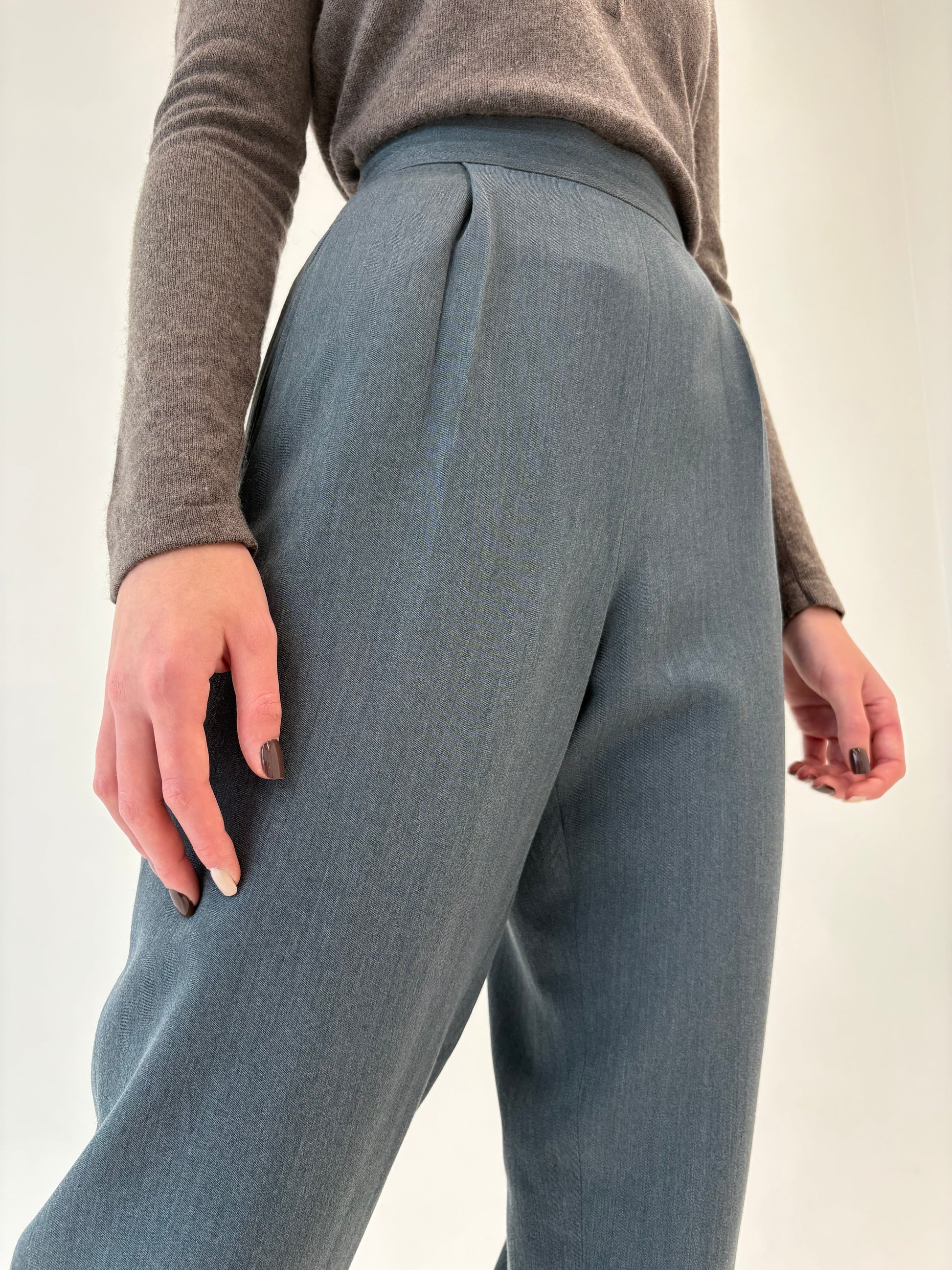 Pantaloni țigaretă cu talie ultra înaltă din lana extrafina cu mătase naturală