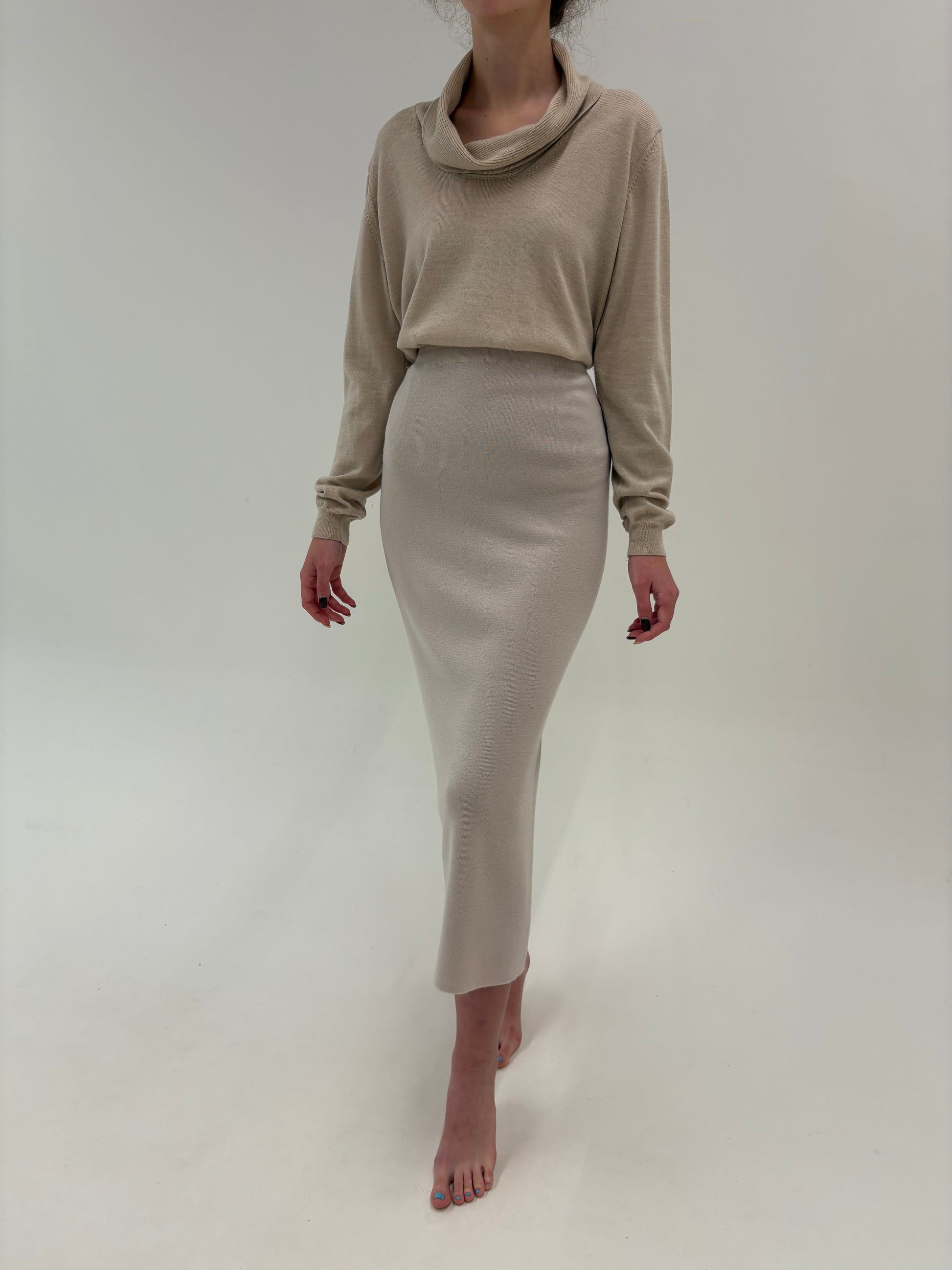 Fustă off white maxi din tricot de lână merino extrafina de gramaj mare