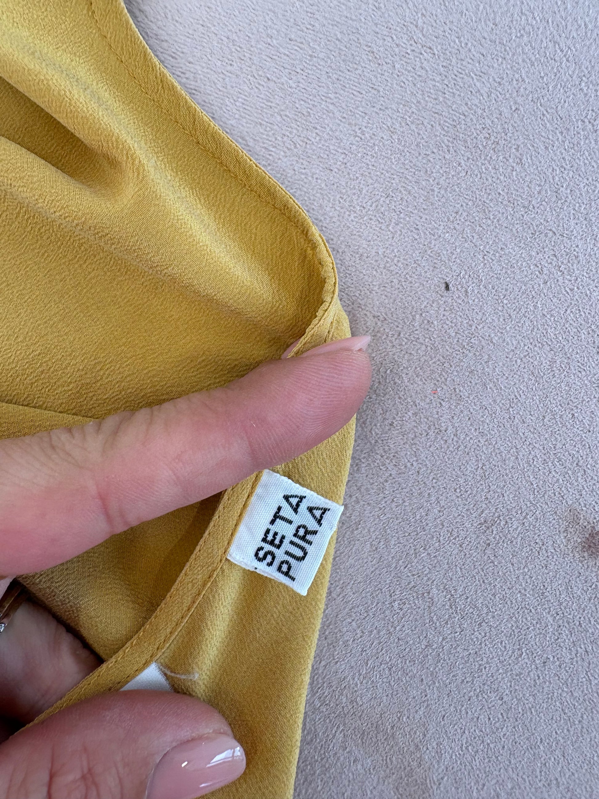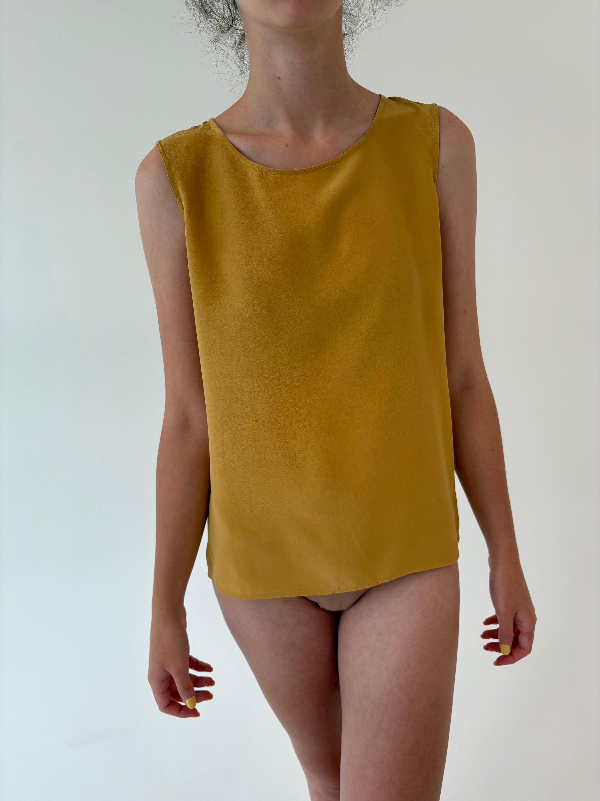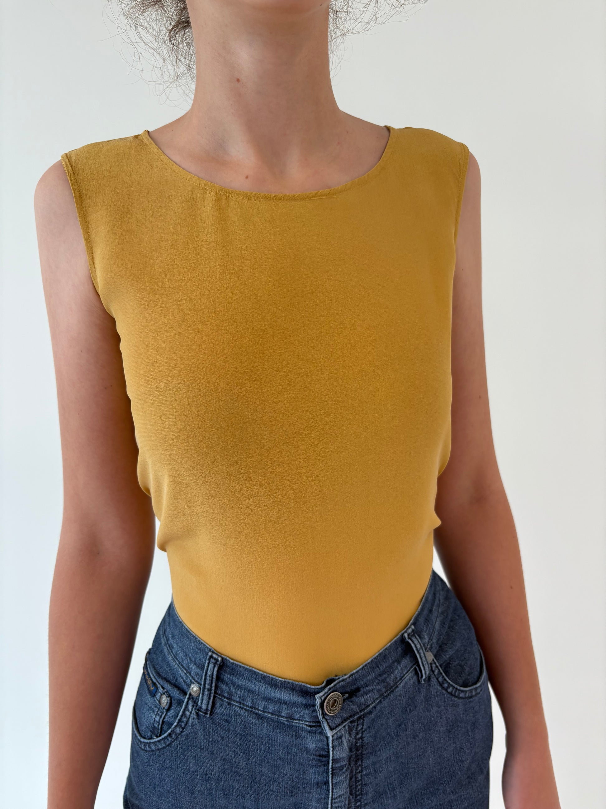 Top mustard yellow din mătase naturală mată