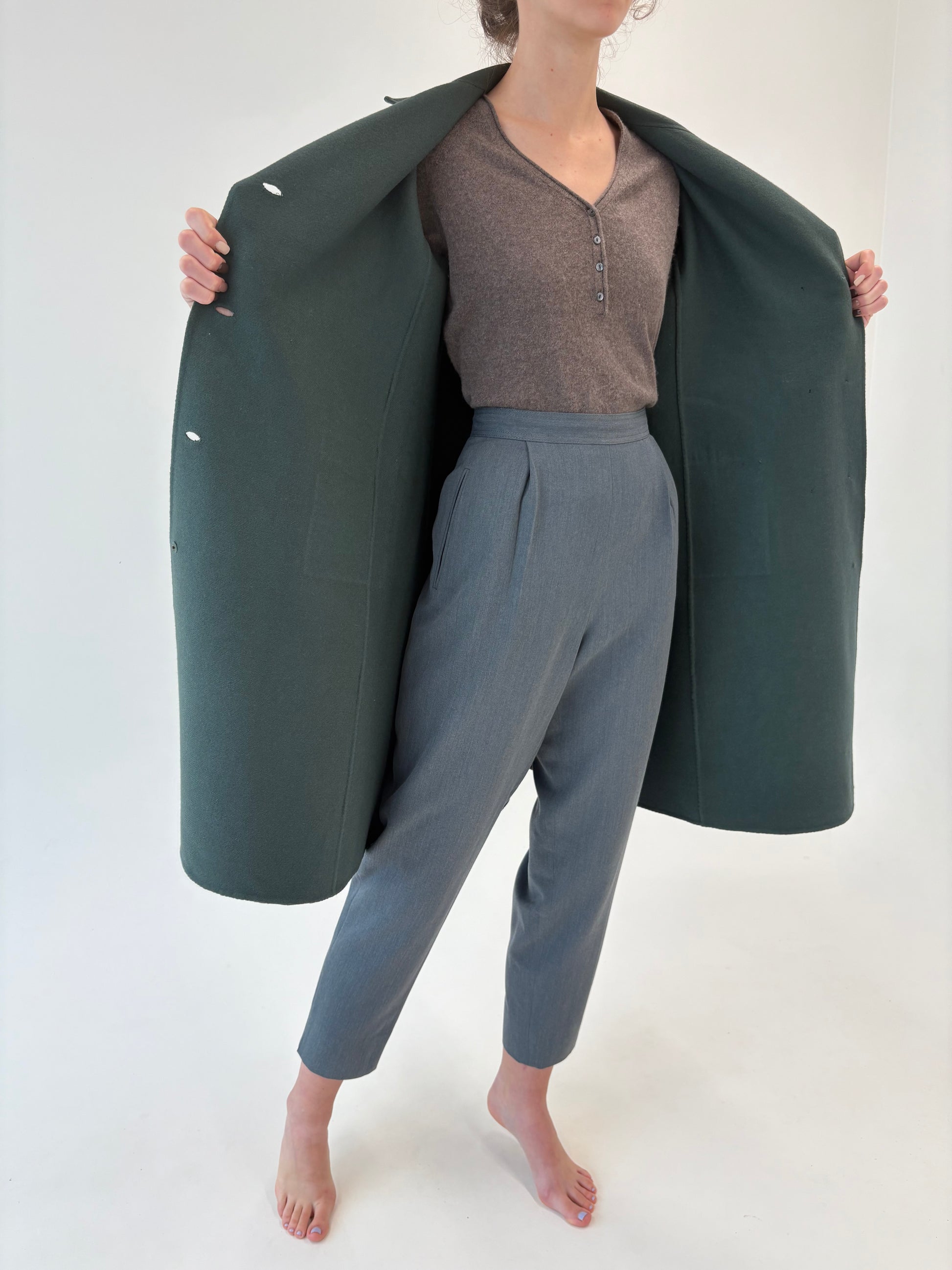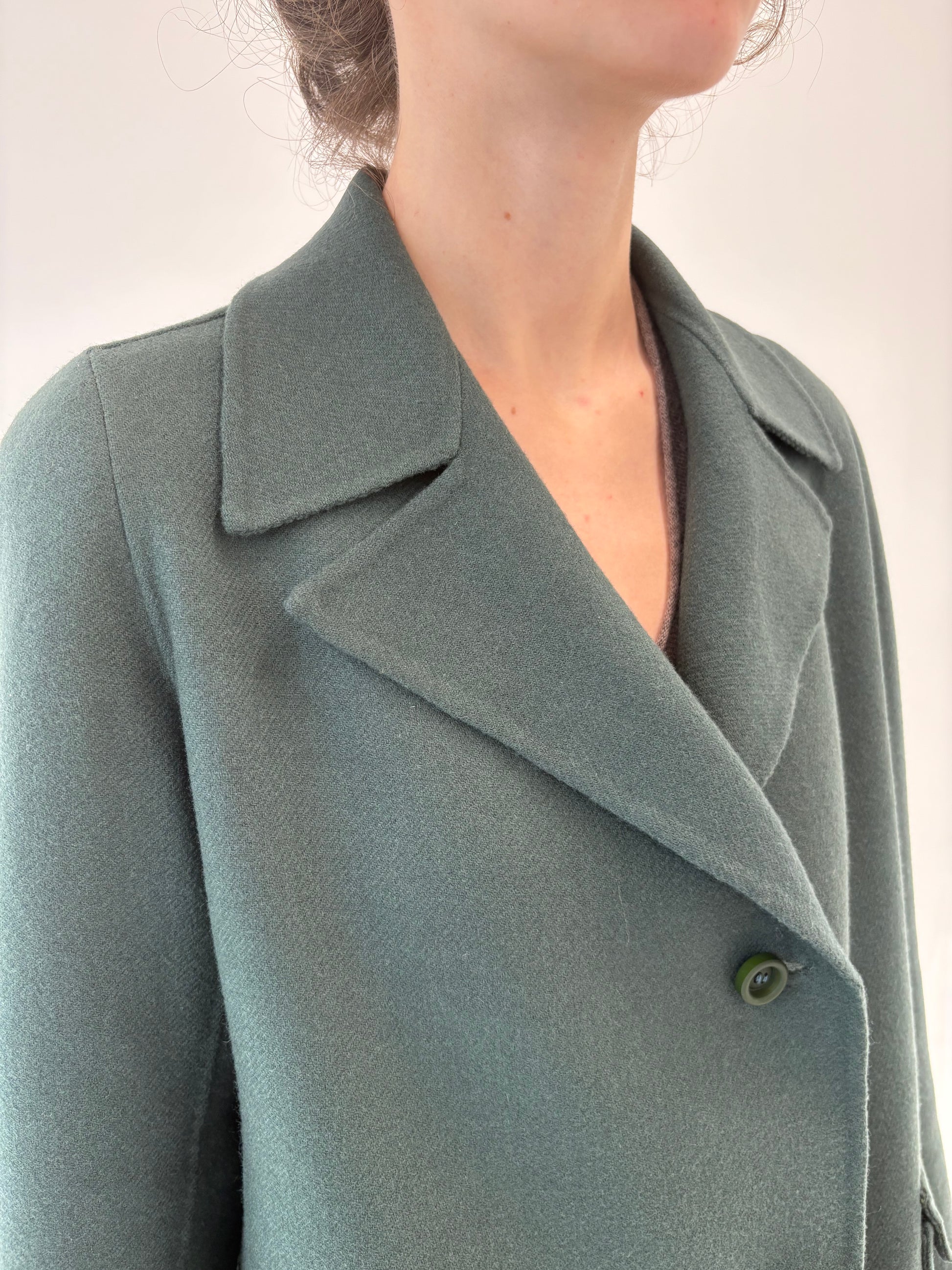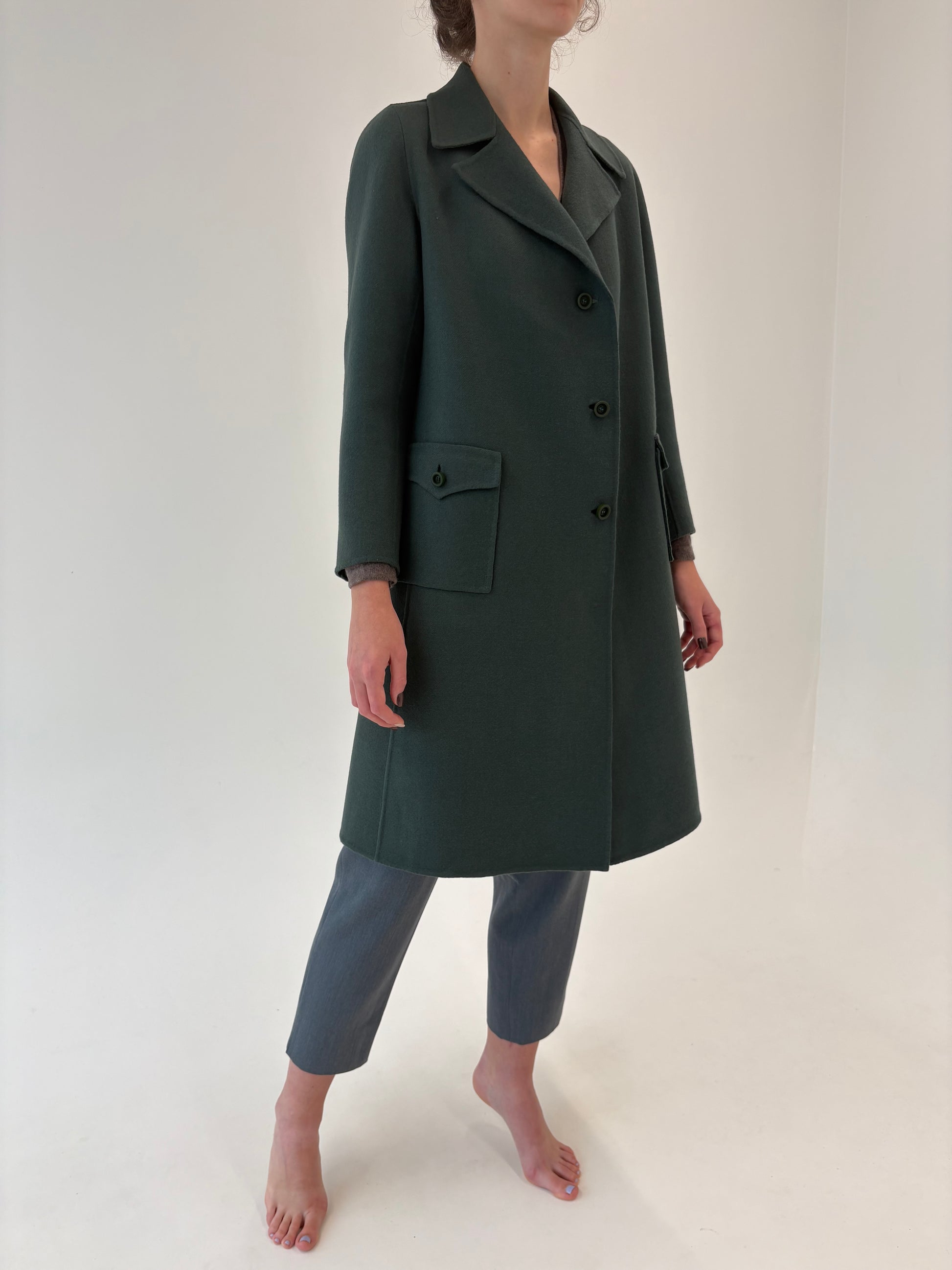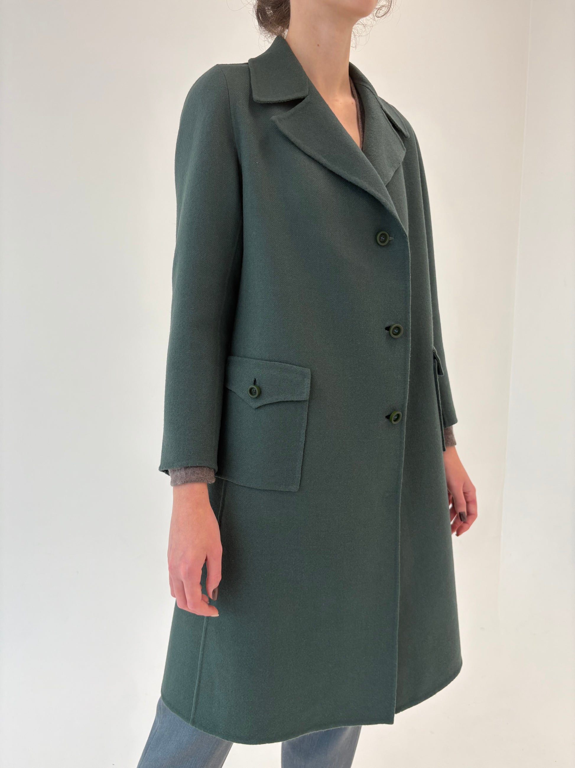 Pardesiu petite dark castelton green din stofă de lana excepțională cu 2 fete