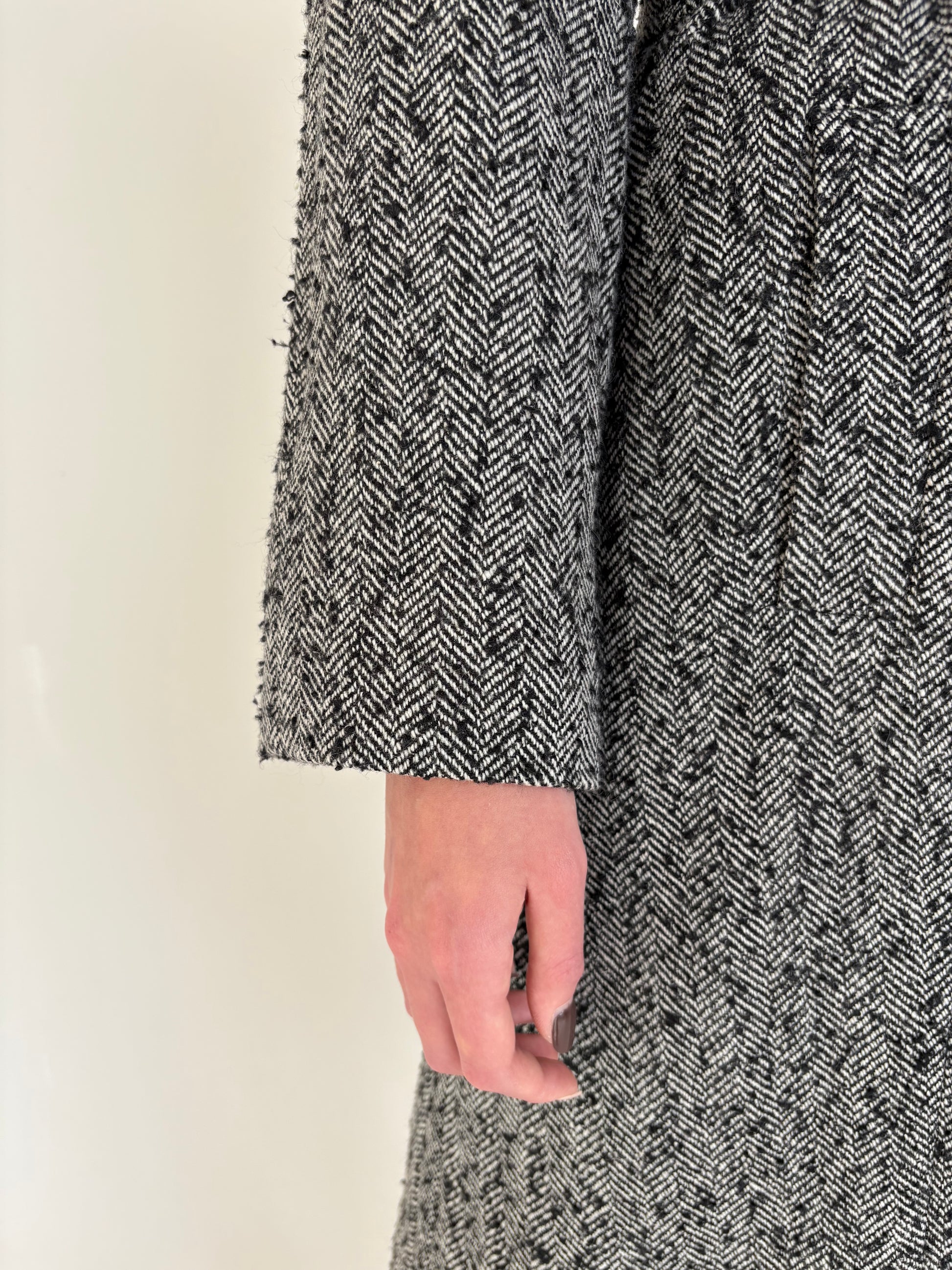 Palton din tweed herringbone rustic moale de lana cu cordon