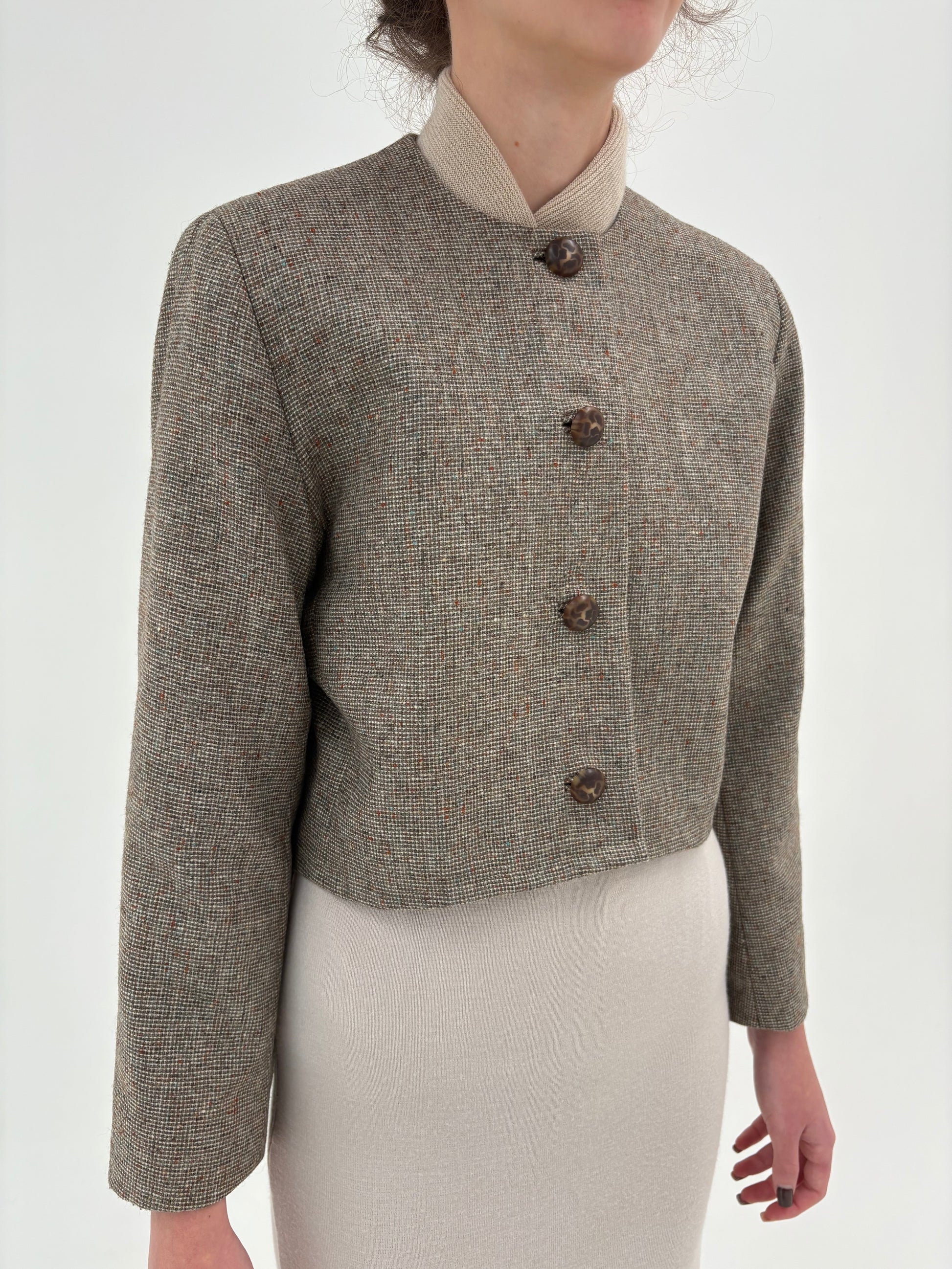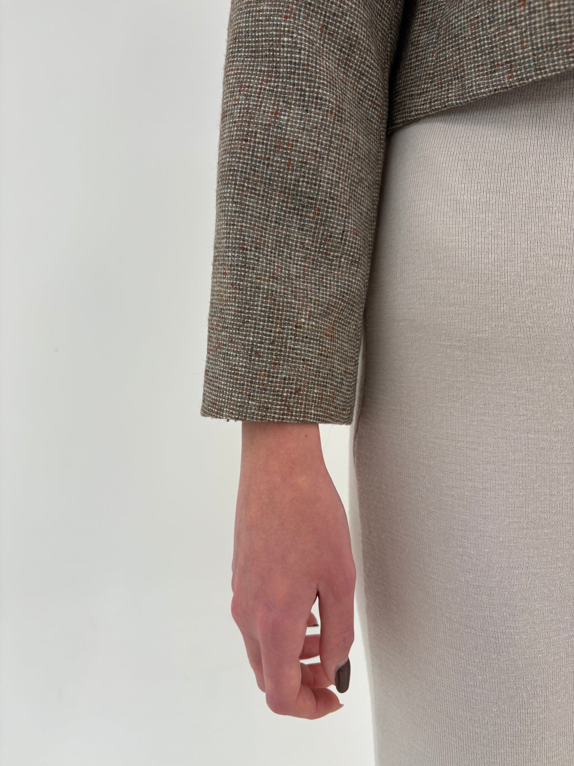Jacheta din tweed Donegal în stil Chanel și nuanțe neutre superbe