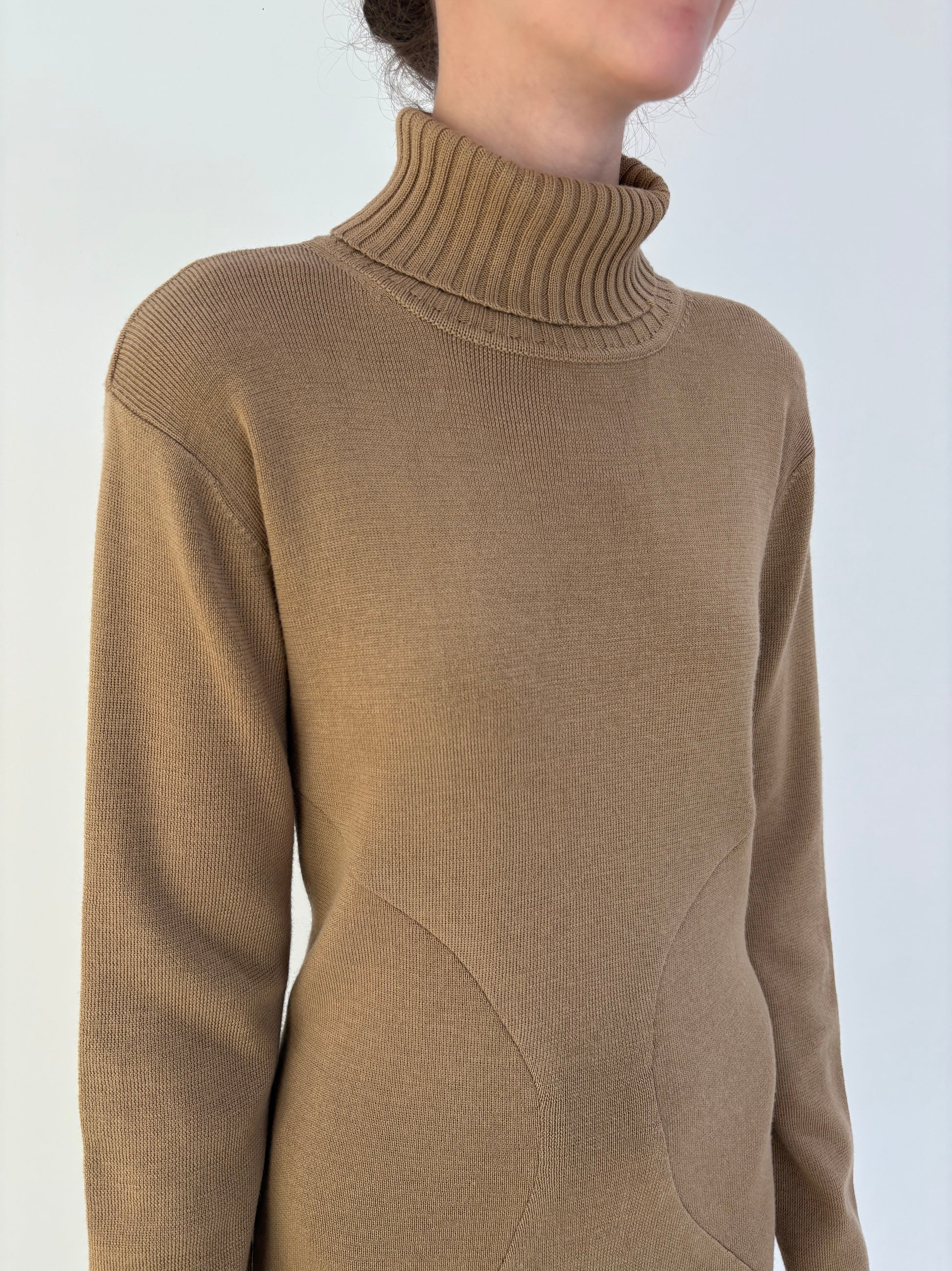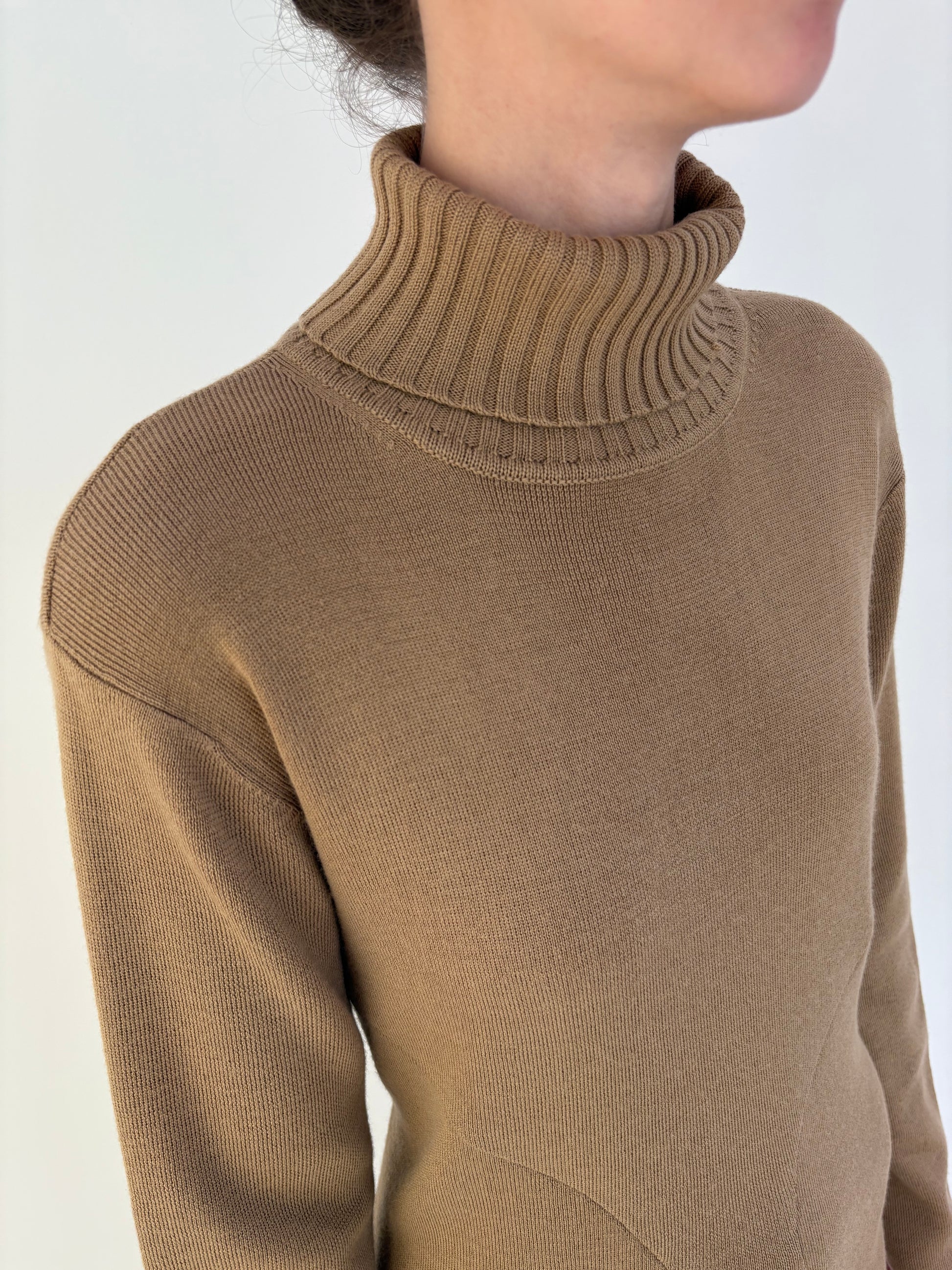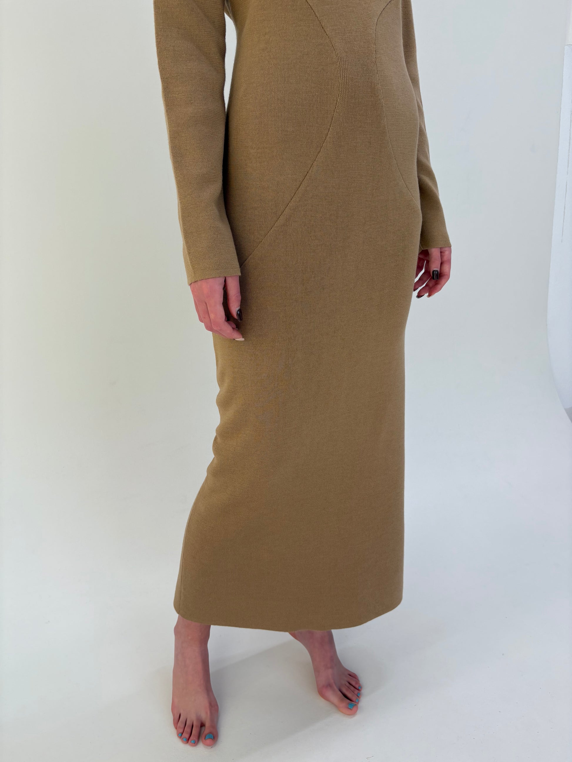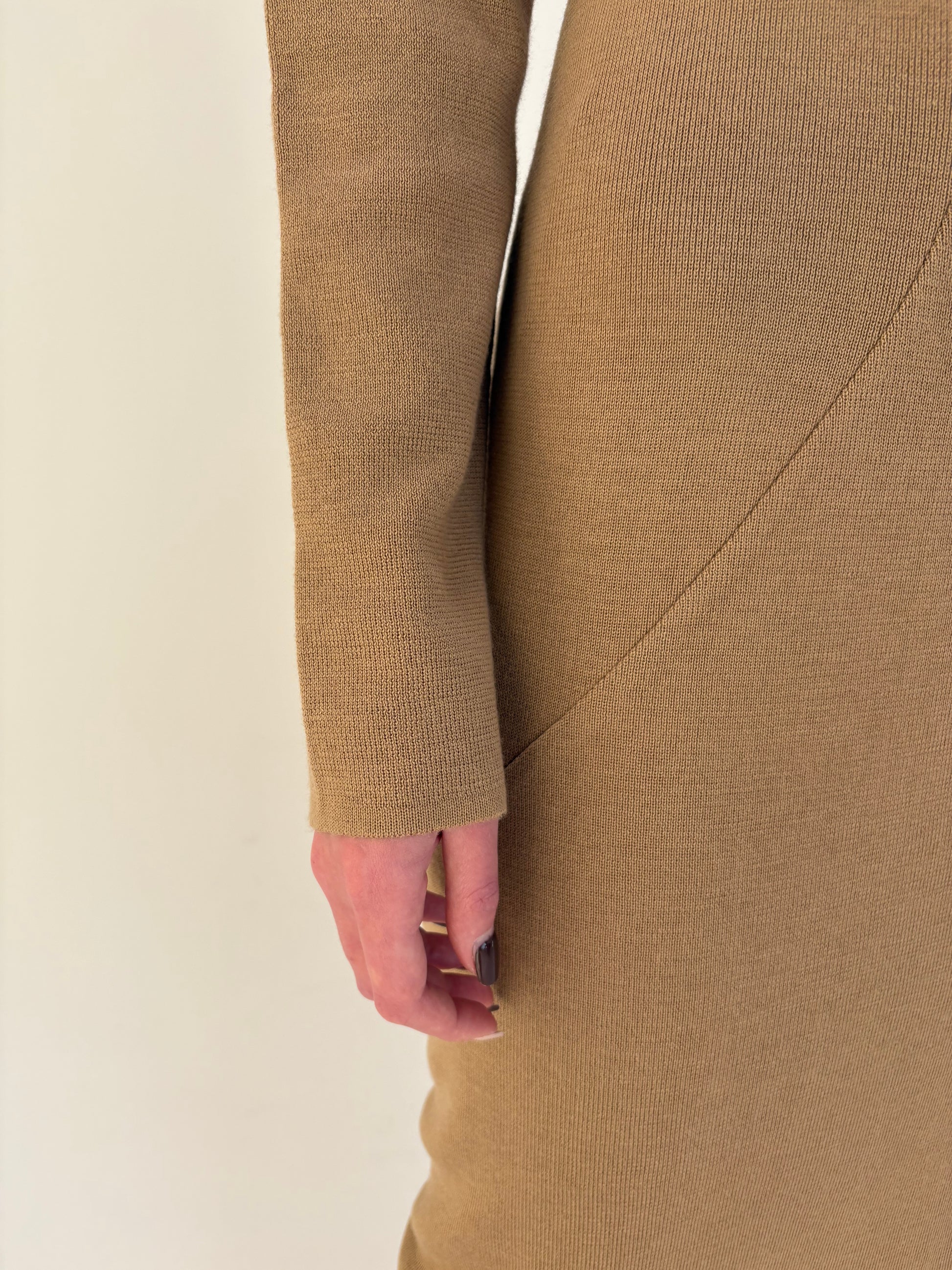 Rochie maxi camel tip Maleta din lana merino extrafina de gramaj mare