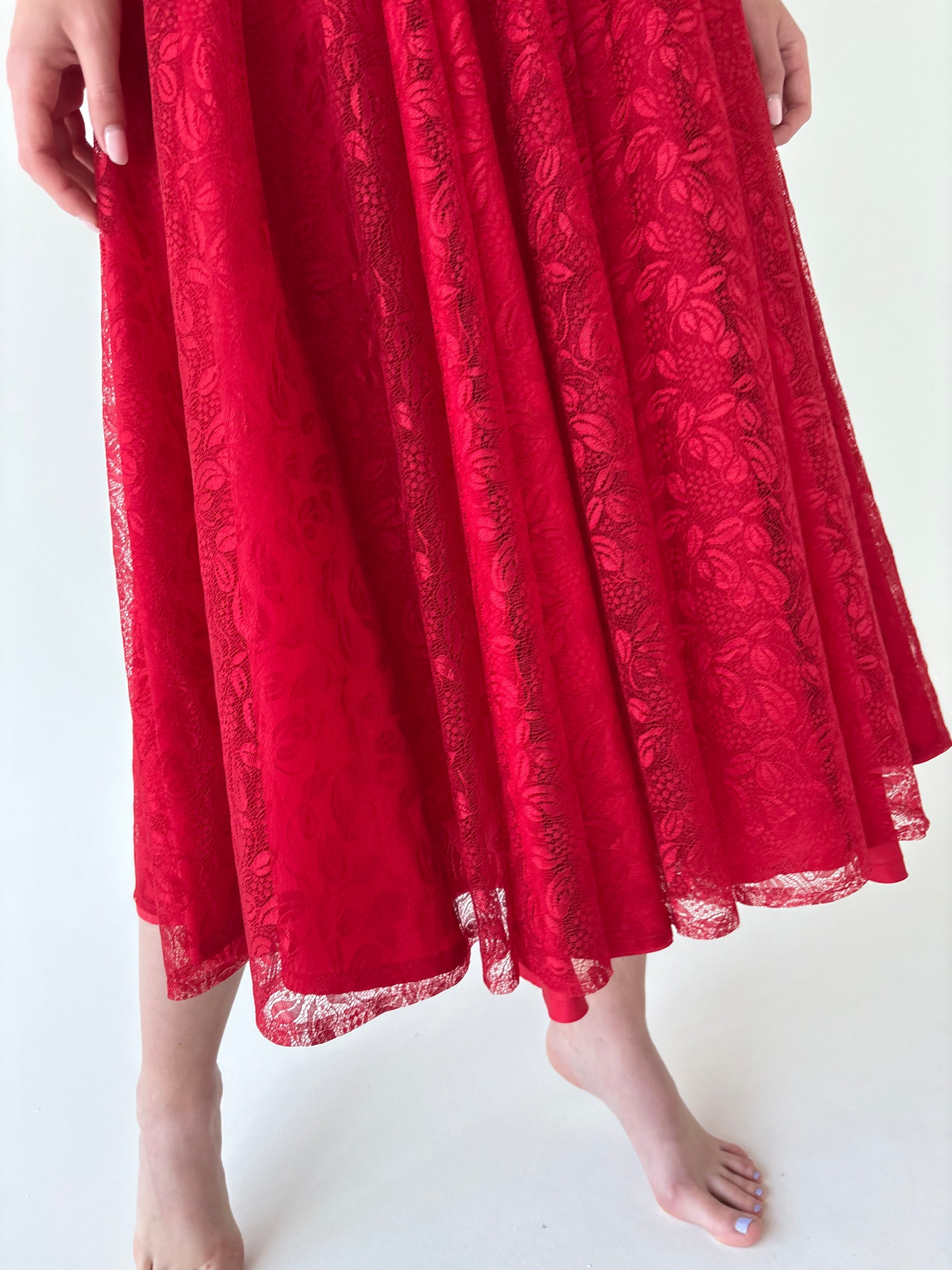 Rochie old vintage anii 80 cherry red cu corsaj și fusta extra amplă