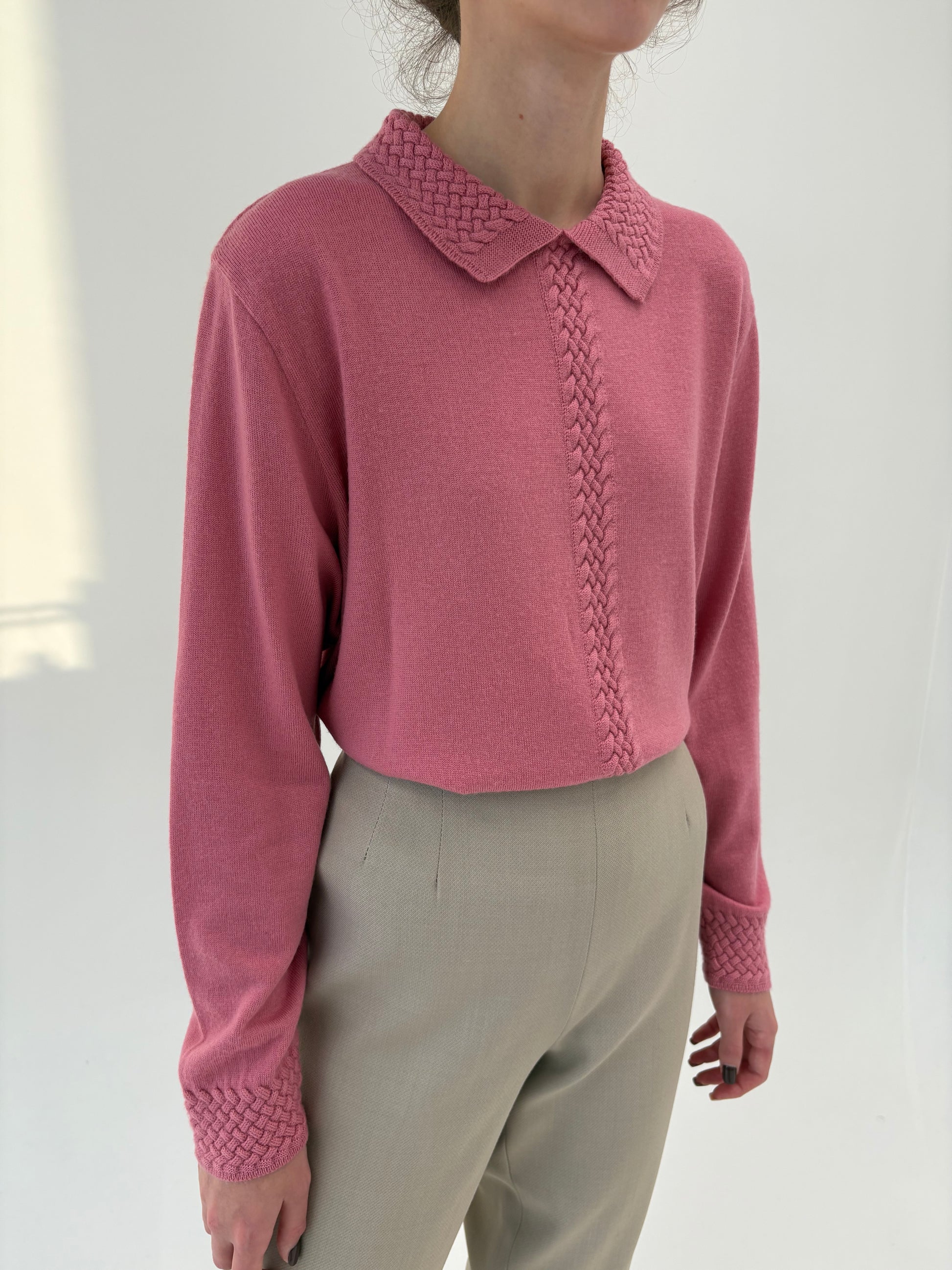 Pulover polo powder Pink din lana merino extrafina certificată de gramaj mare