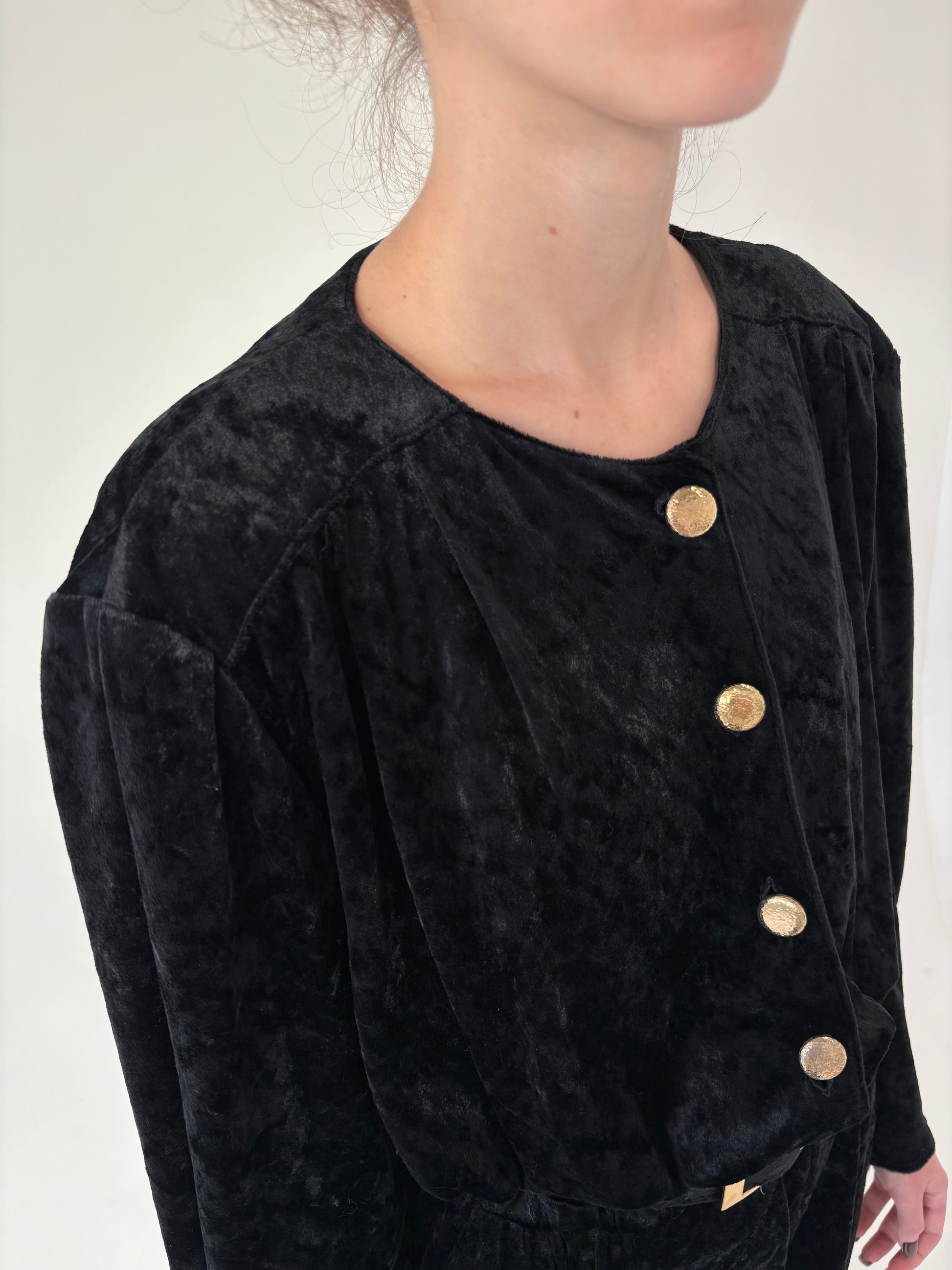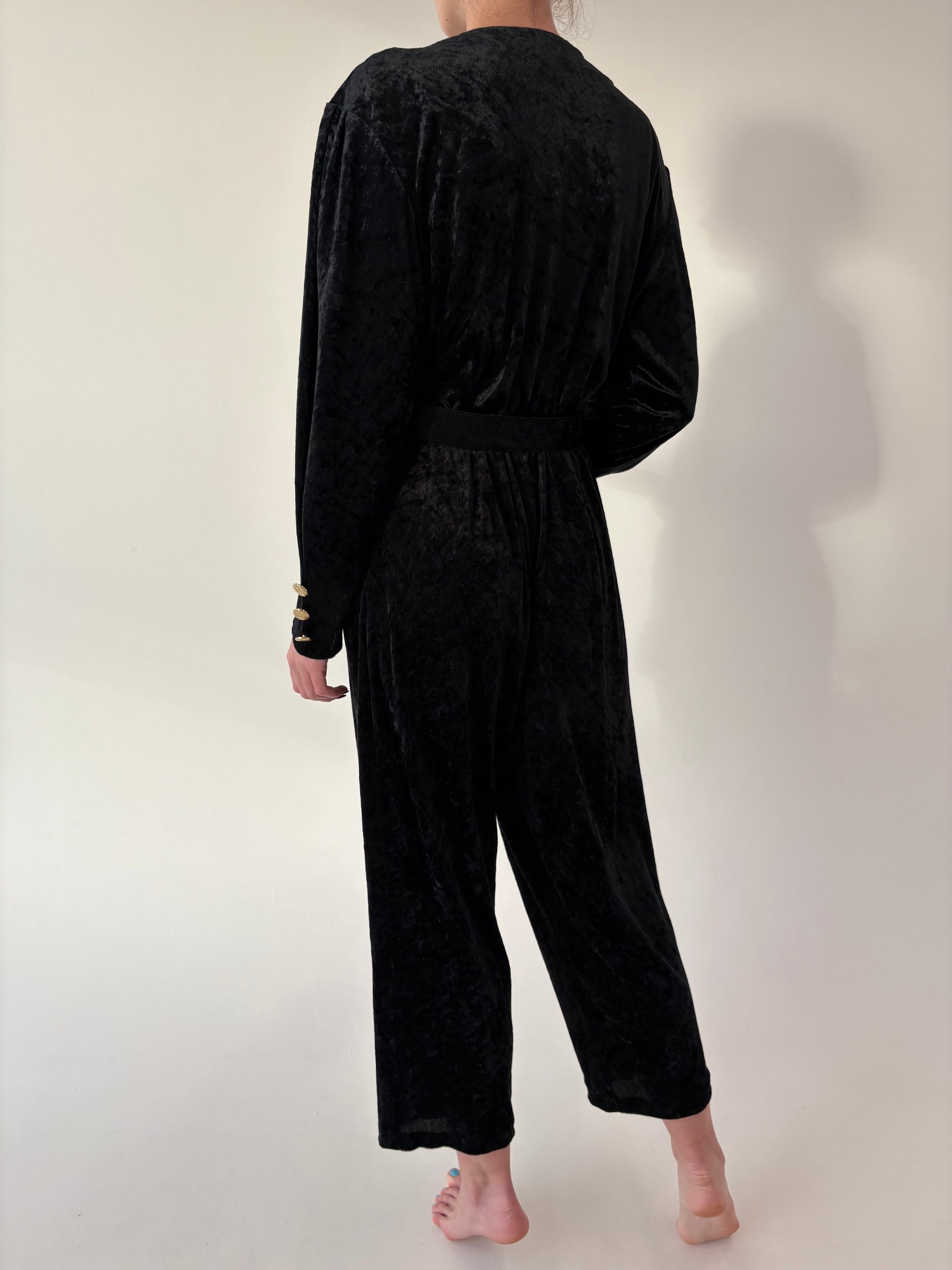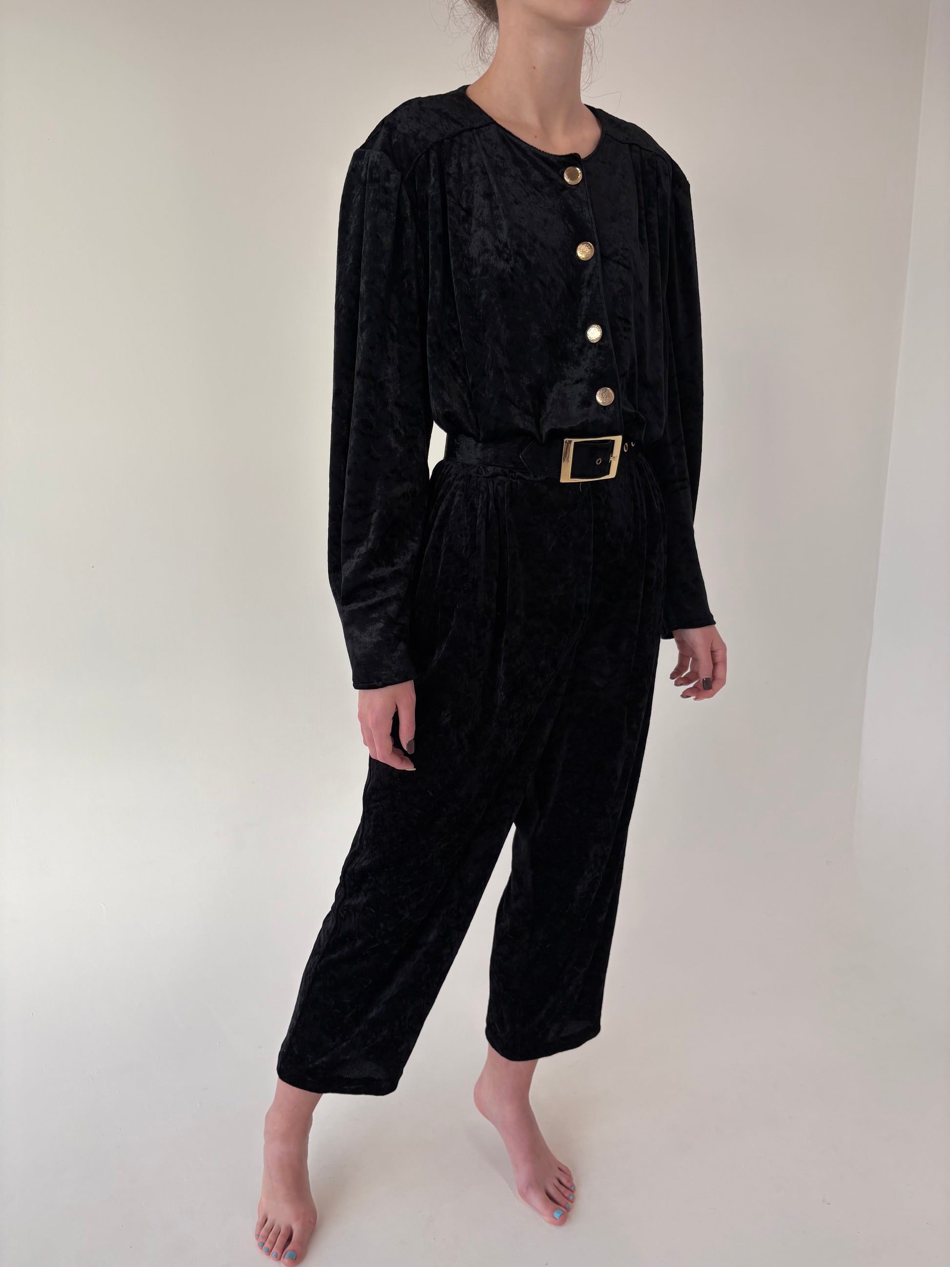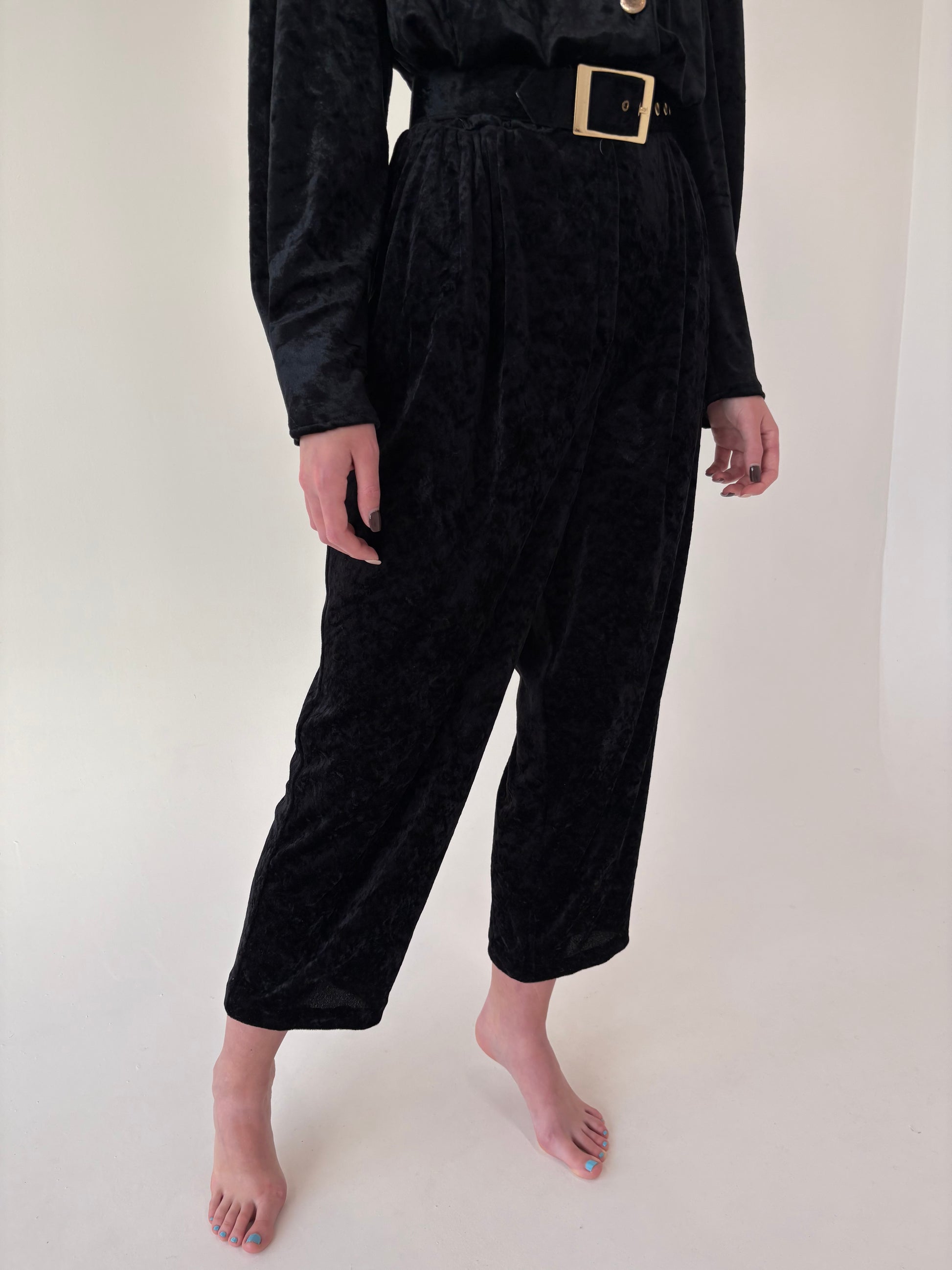 Salopetă vintage de seară din catifea cu talie ultra înaltă reglabilă