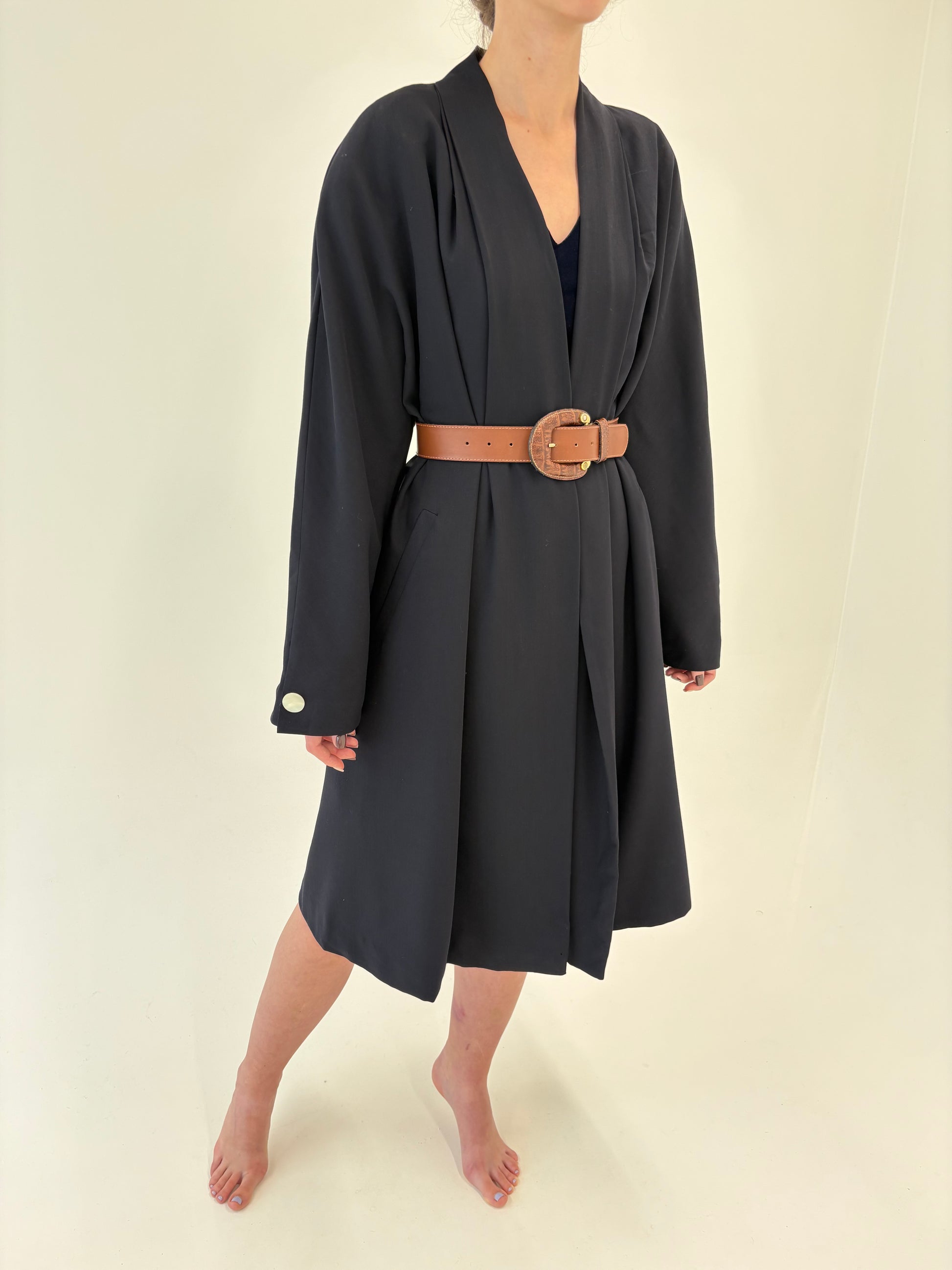 Pardesiu vintage în stil Balenciaga din lana extrafina Navy blue