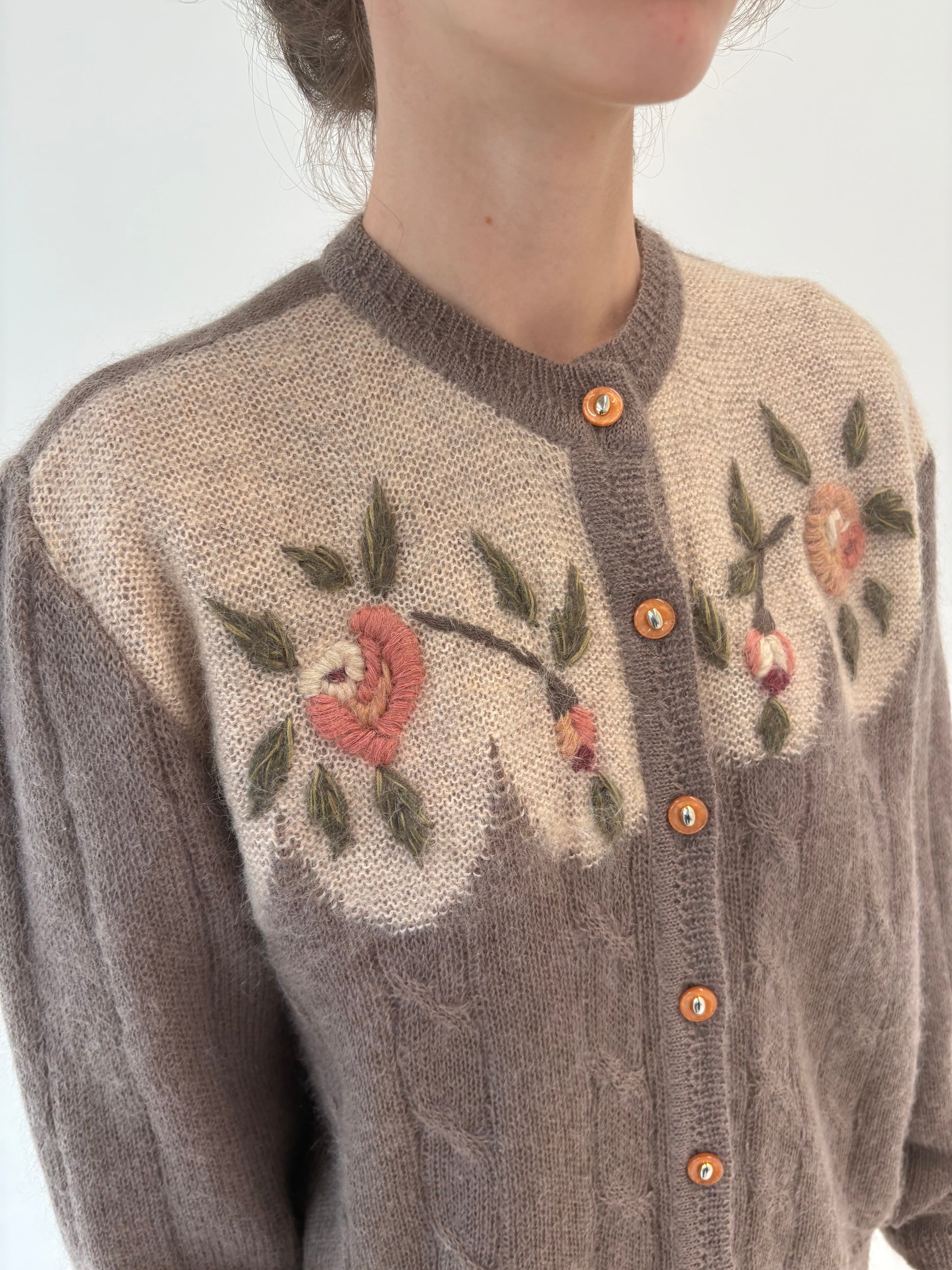 Jacheta căptușită din tricot de baby mohair brodată manual