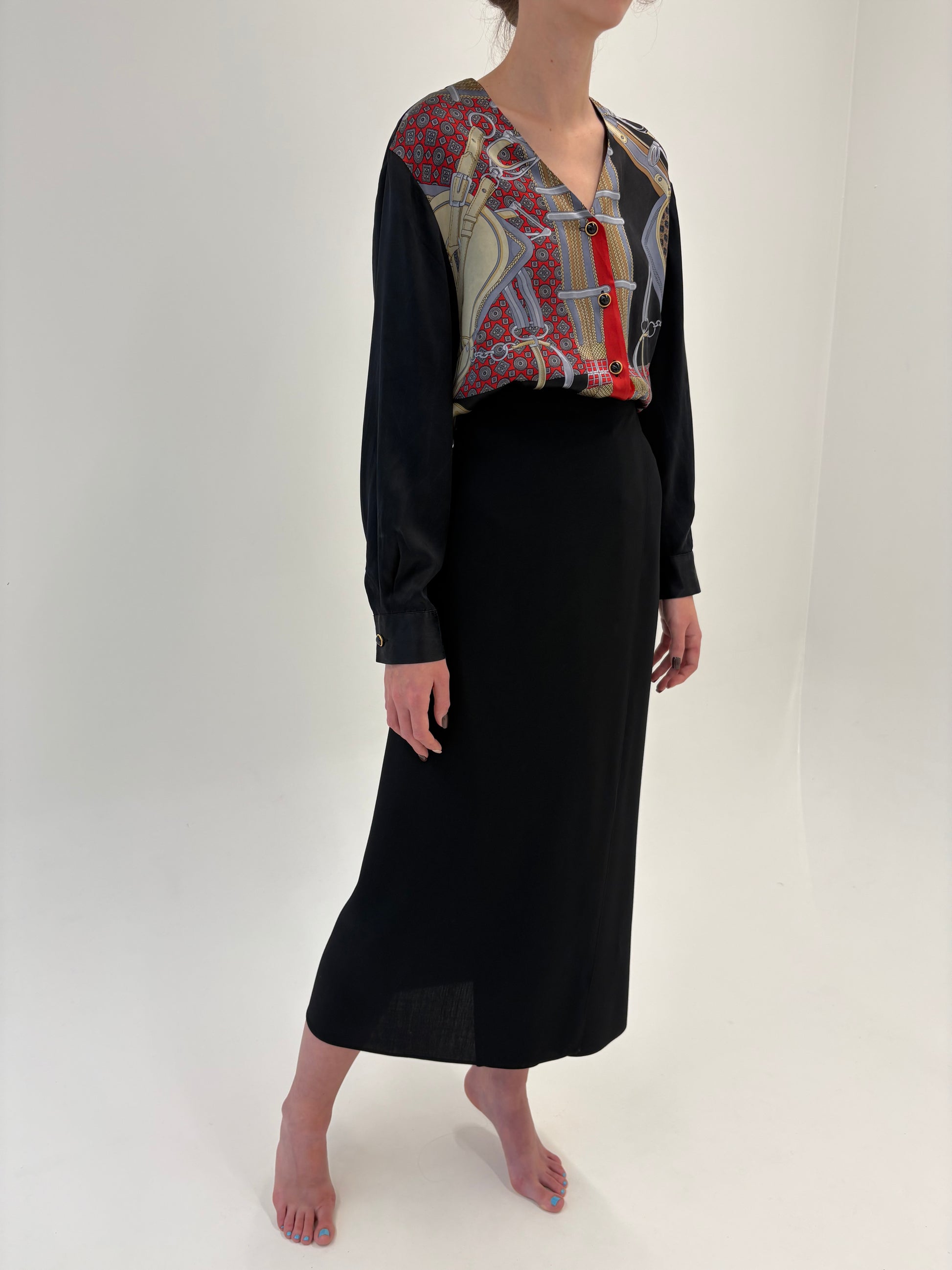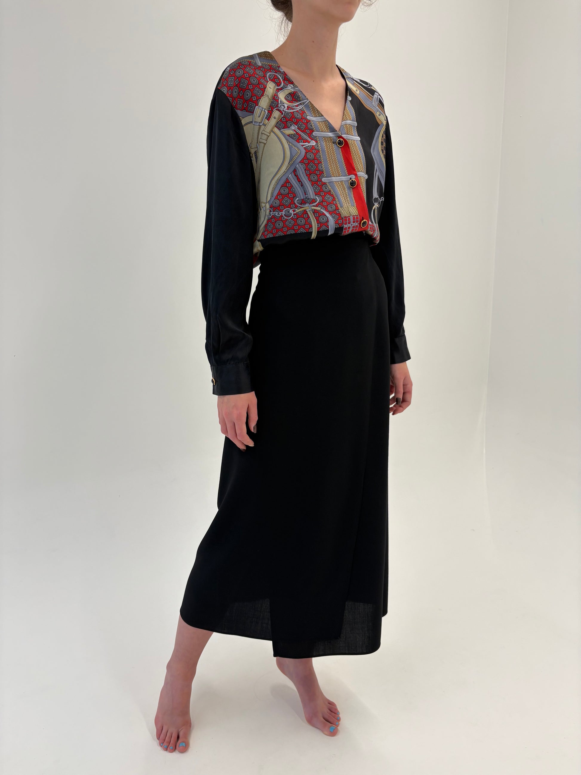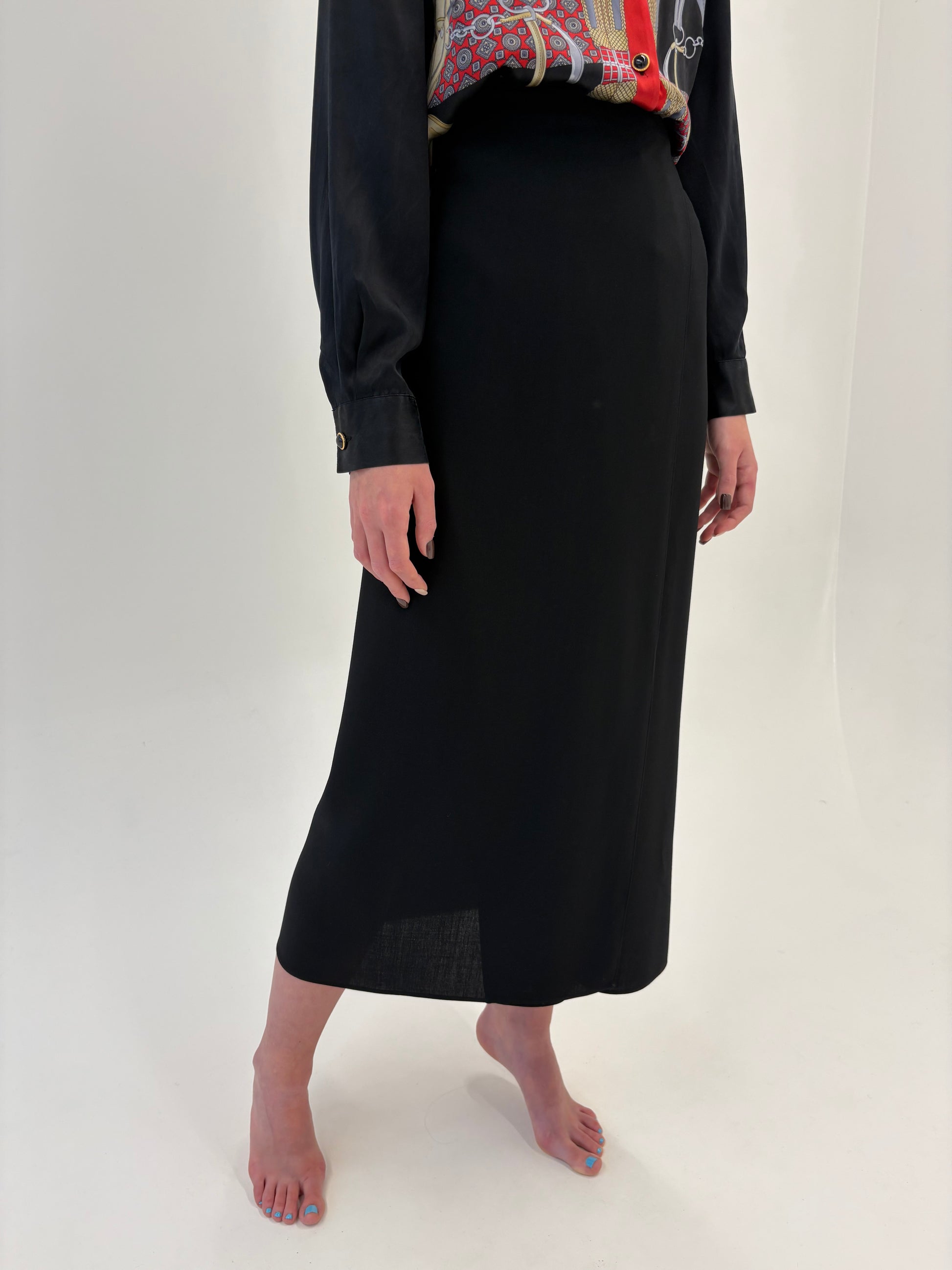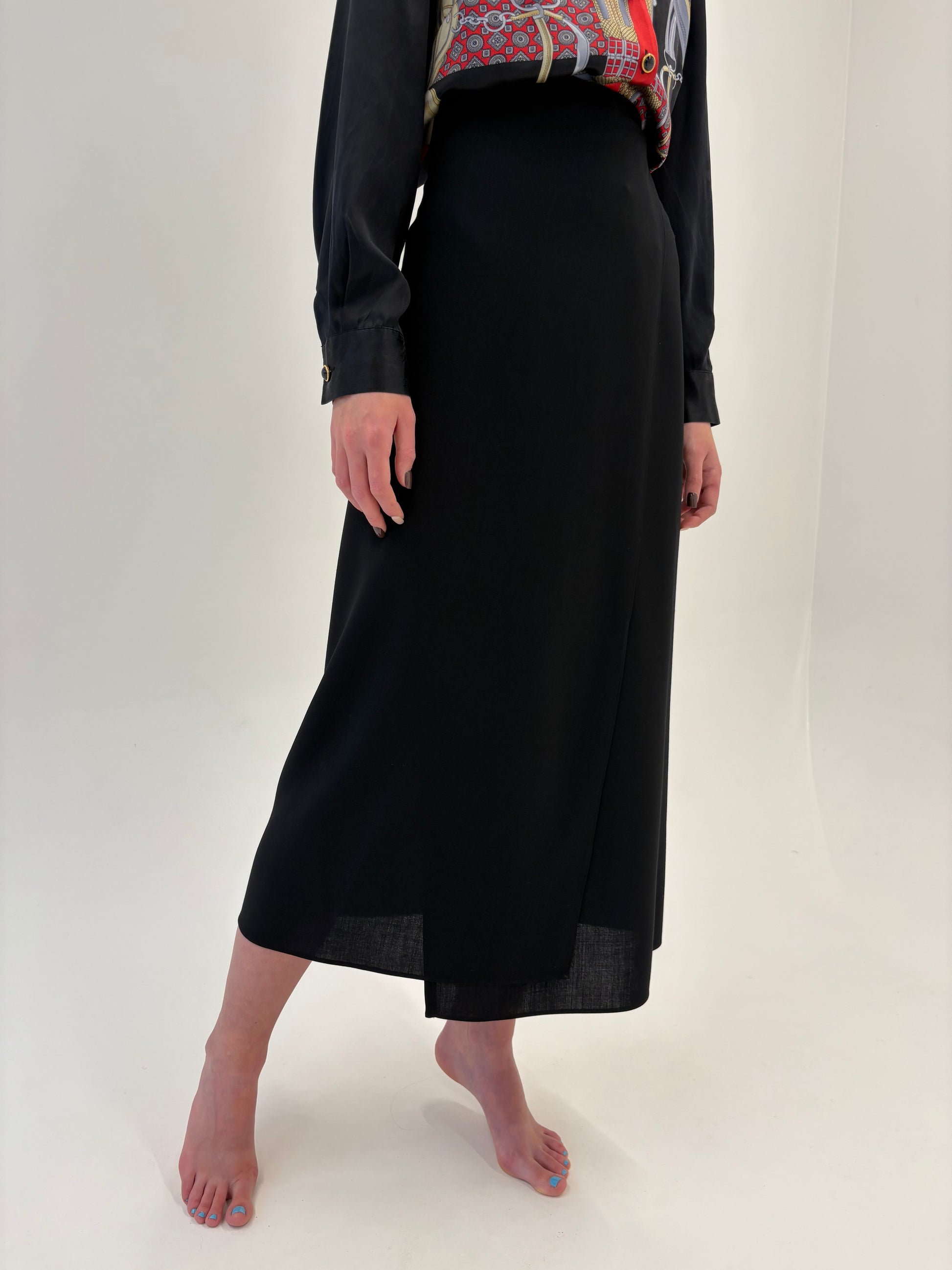 Fustă maxi neagră din lana extrafina de la zi la seară în croi petrecut