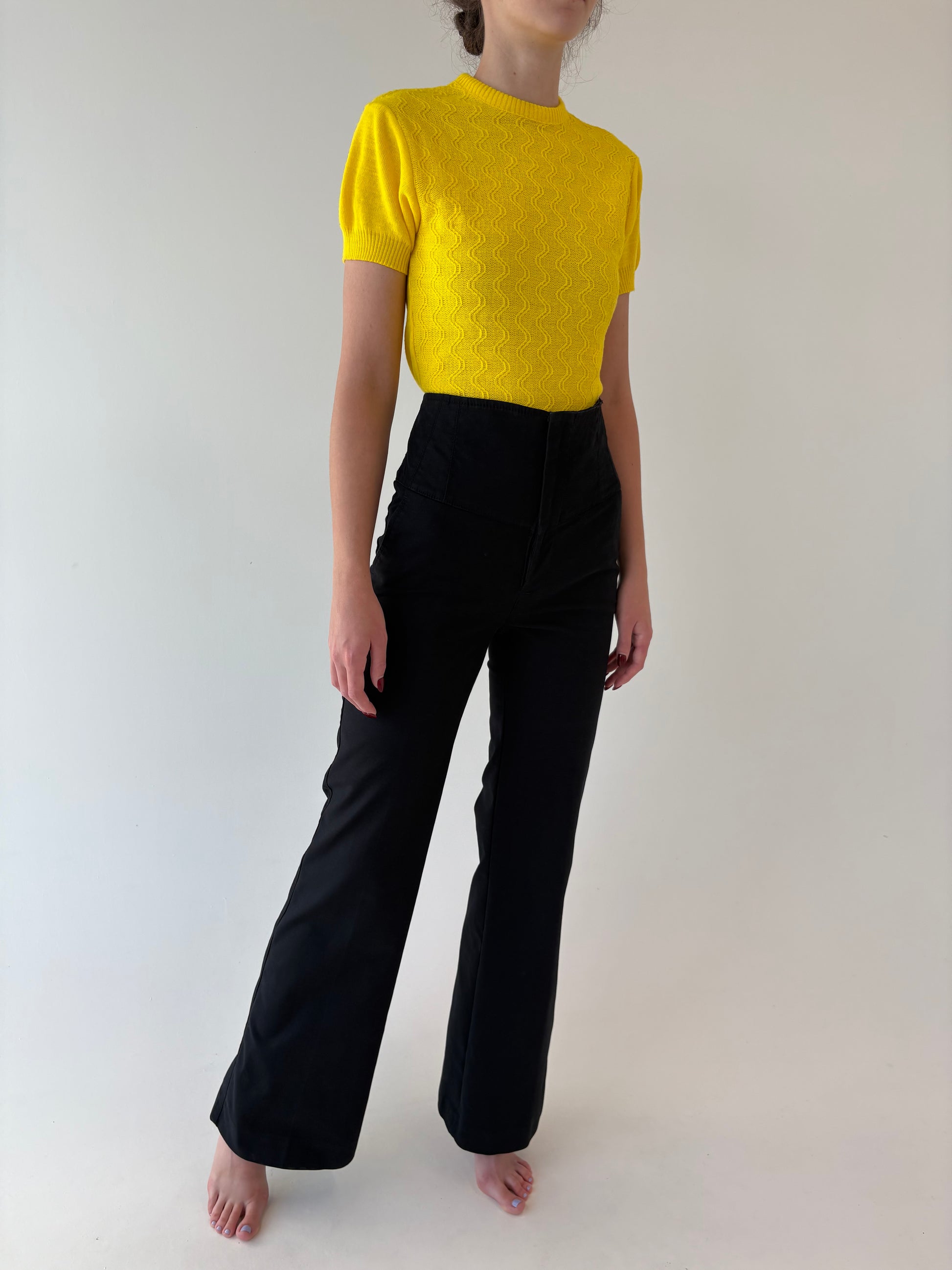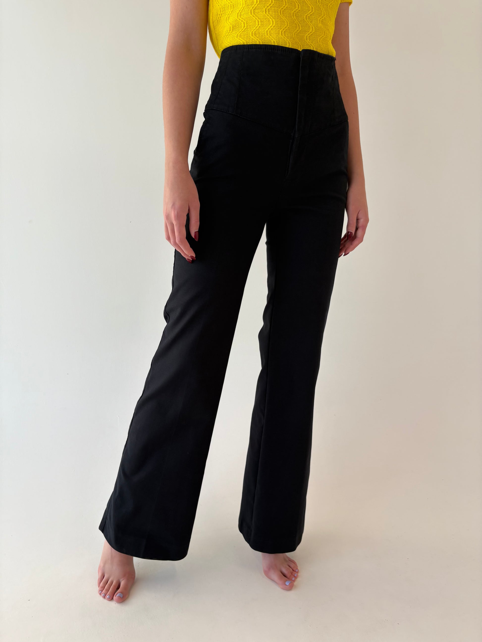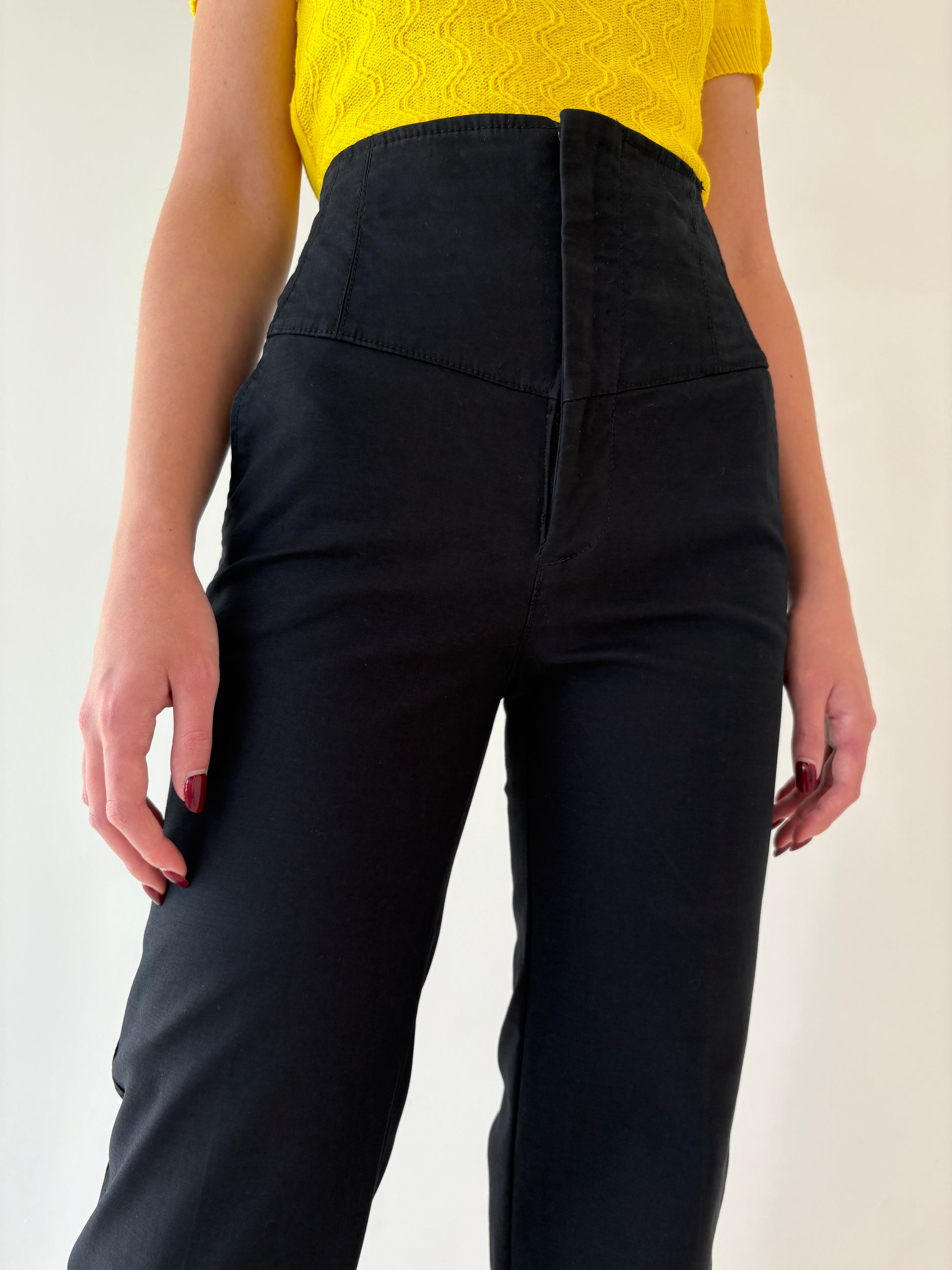 Pantaloni negri cu talie ultra ultra înaltă din moleskin gros evazați