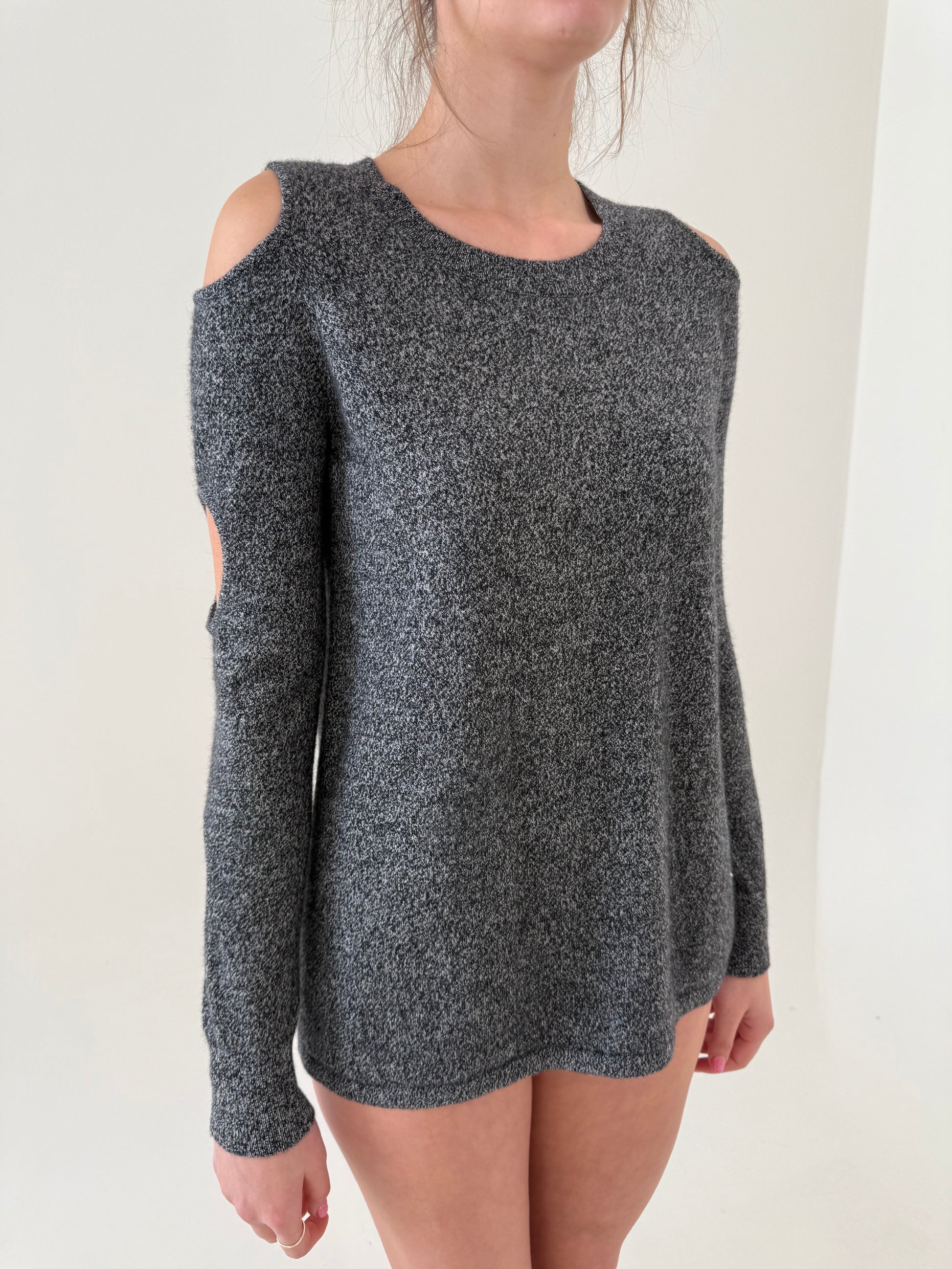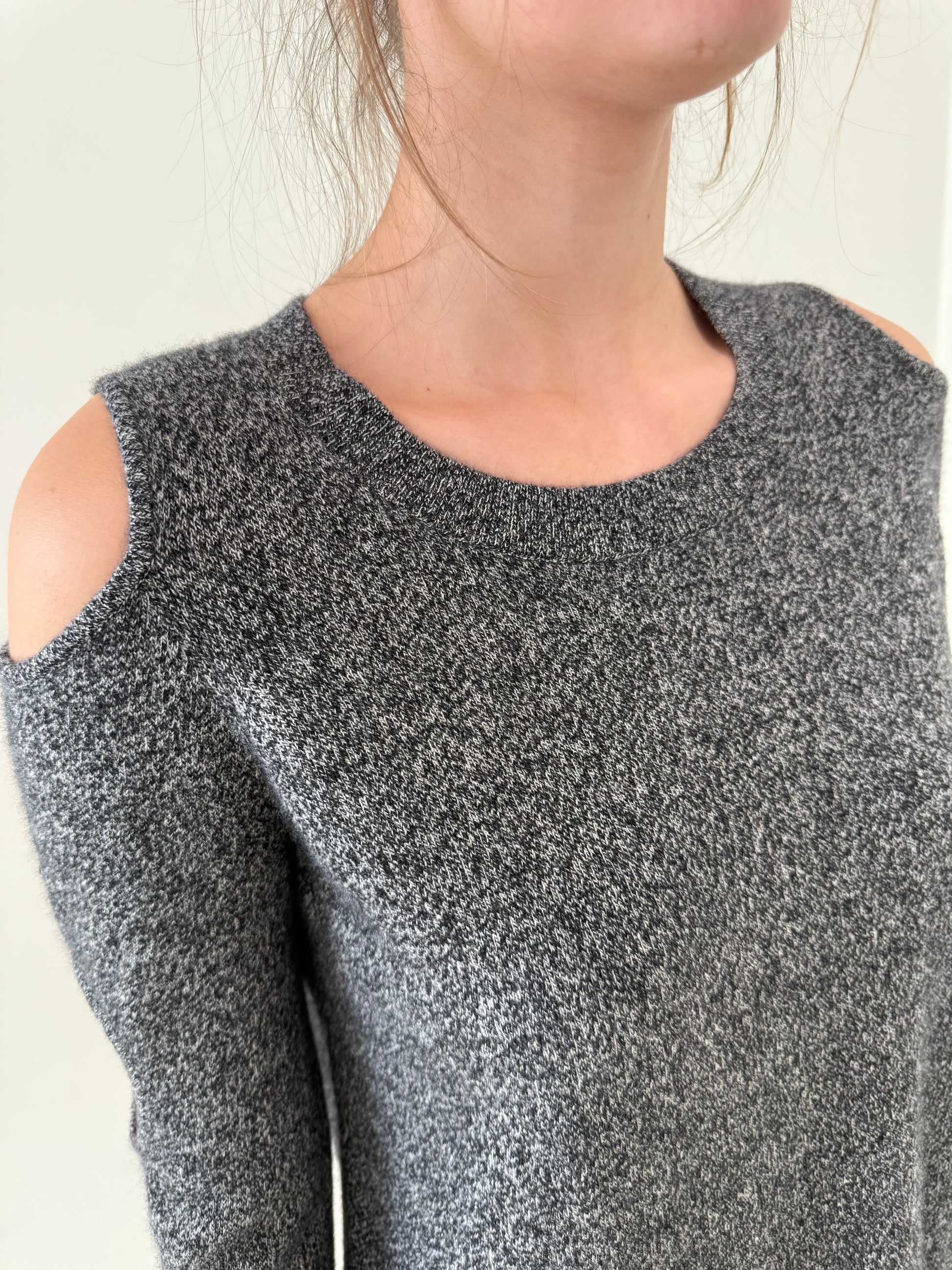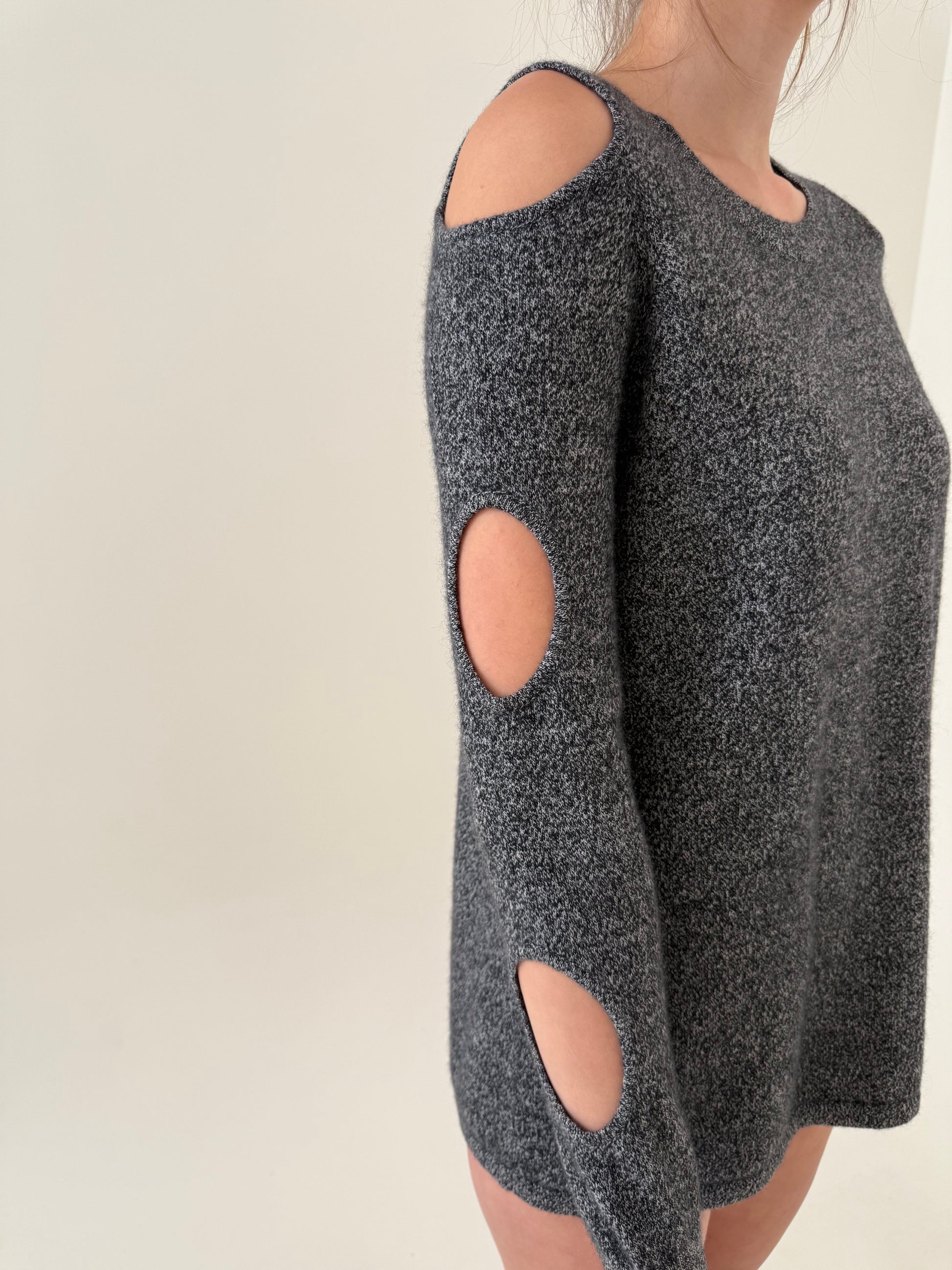 Pulover din cașmir cu decupaje melanj în nuanțe de gri
