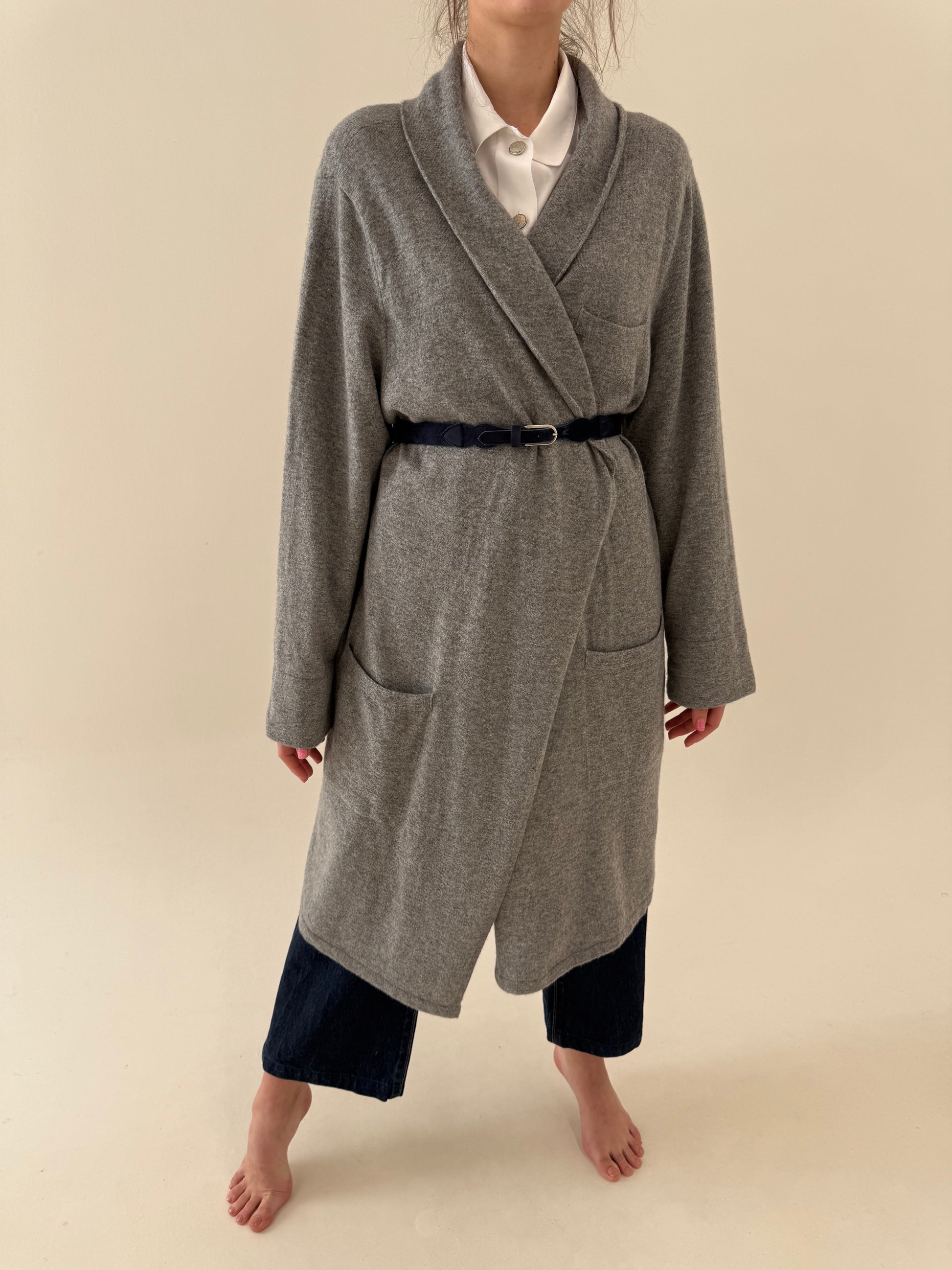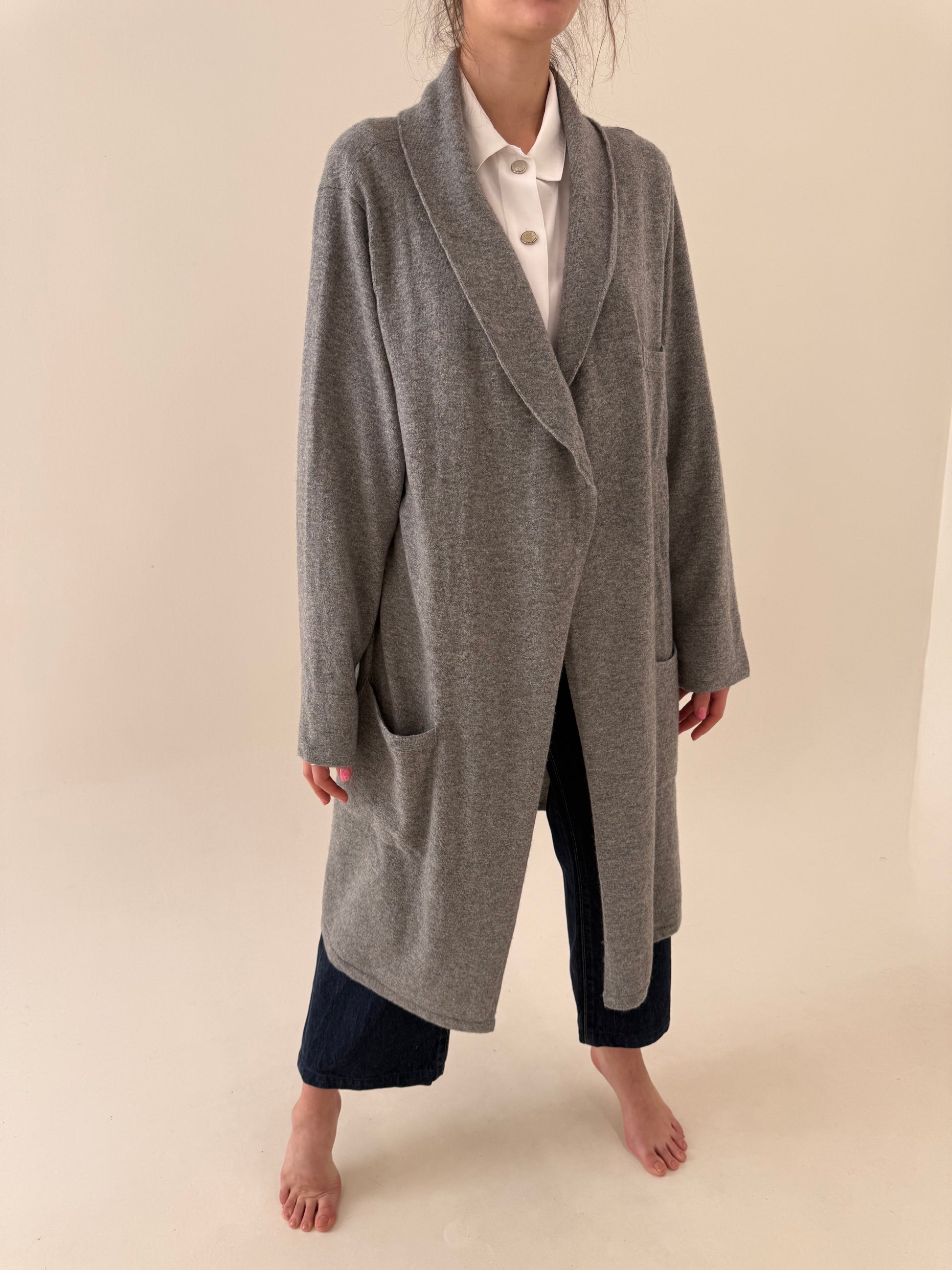 Pardesiu din cașmir silver gray cu revere rotunjite și buzunare