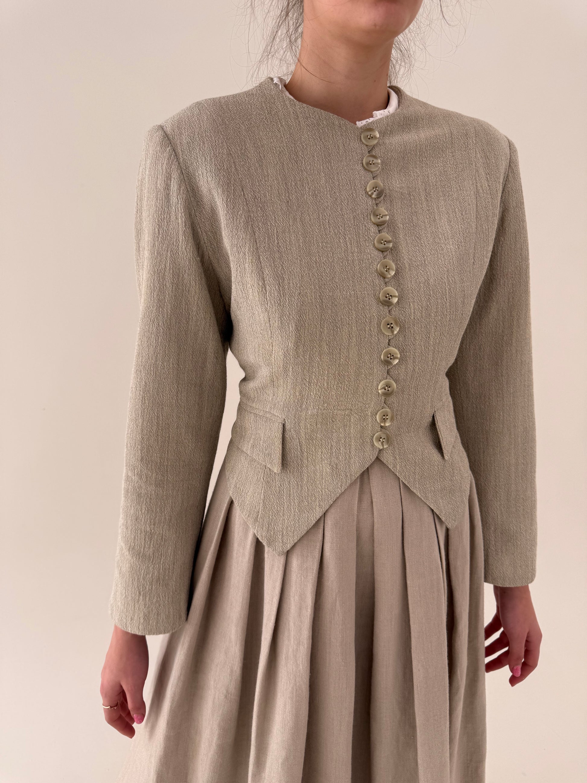 Sacou nude cambrat în croi minimalist din stofita structurată