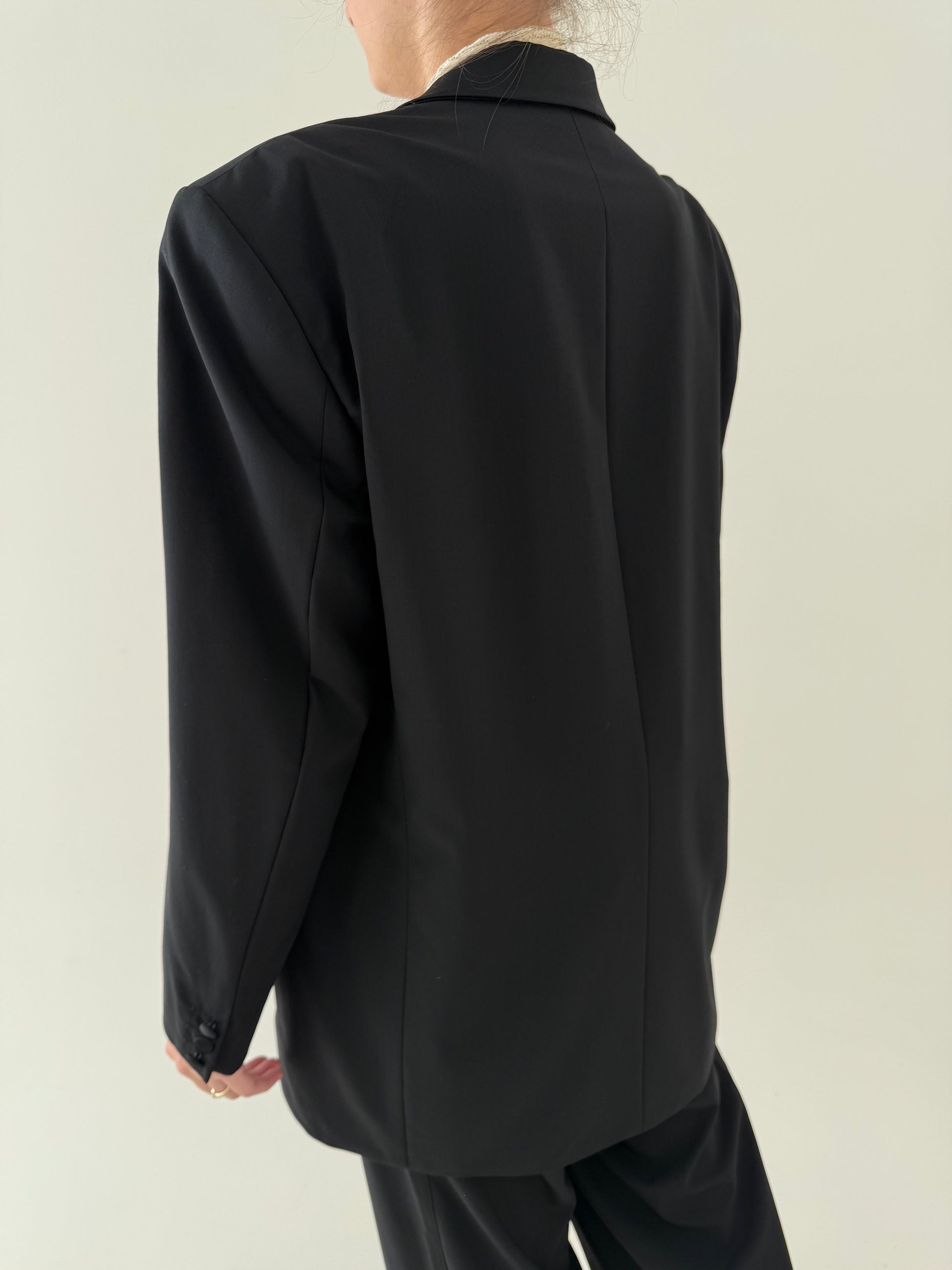 Costum luxury vintage Pierre Cardin cu revere satinate din lanita subțire