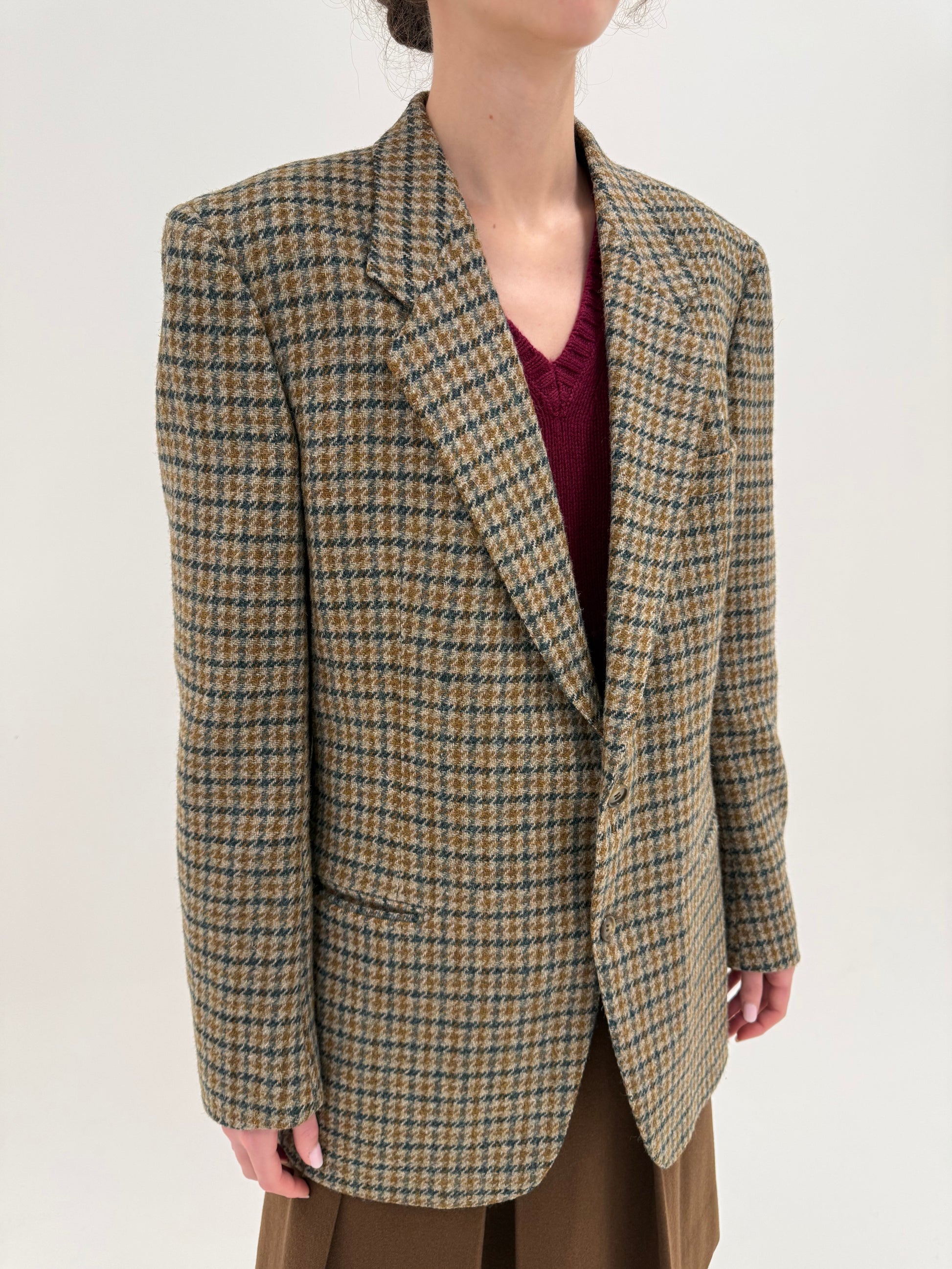 Sacou din tweed de lana pura extrafina în combinație clasică de culori